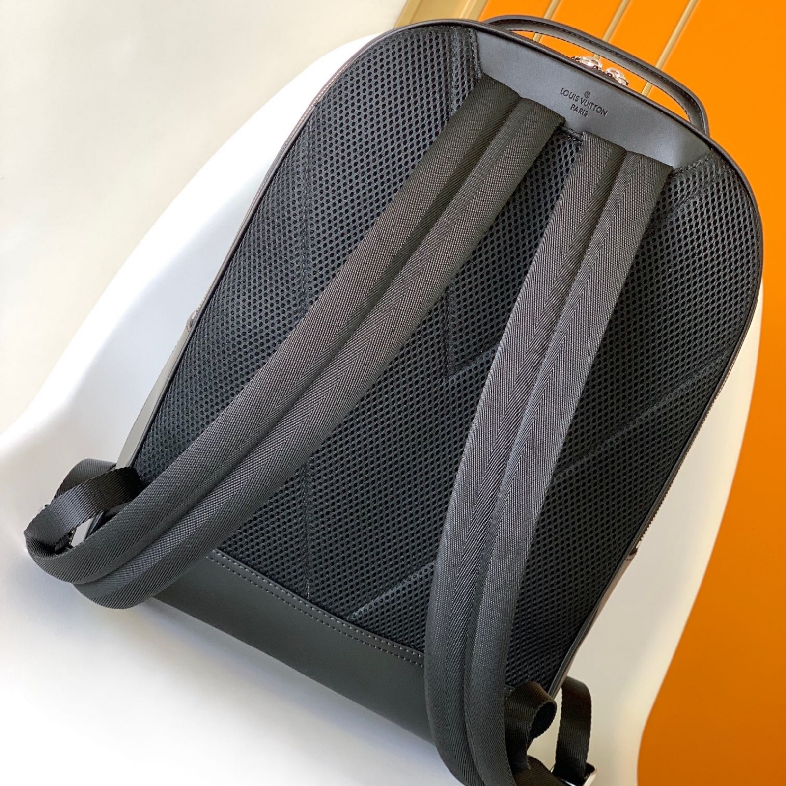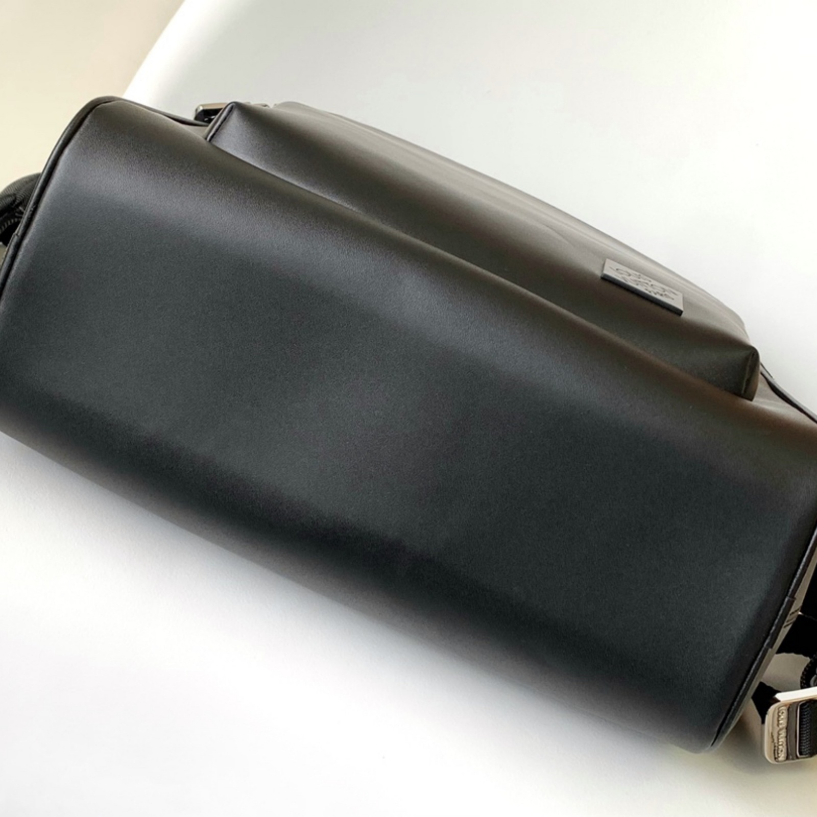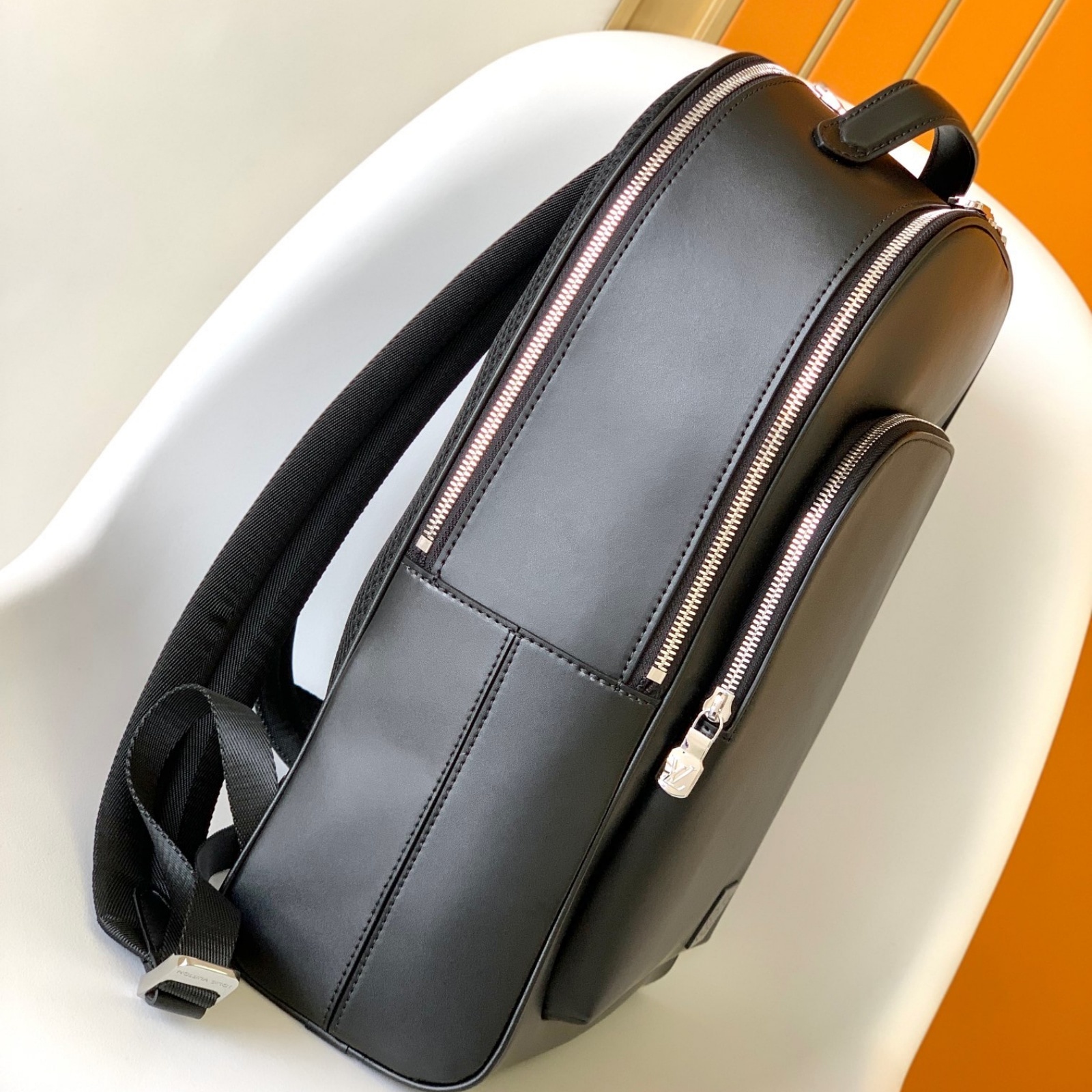 ブラックのタイガ・レザーに同系色のカウハイドレザーのトリミングを施し、シルバーカラーのメタルパーツをあしらって、機能的かつエレガントに仕立てた「アヴェニュー・バックパック」。大容量のフロントポケットに加え、パッド入りのバックコンパートメントとメインコンパートメントを備えています。中身を整理しやすいよう、内側には2つのポケットを配しました。