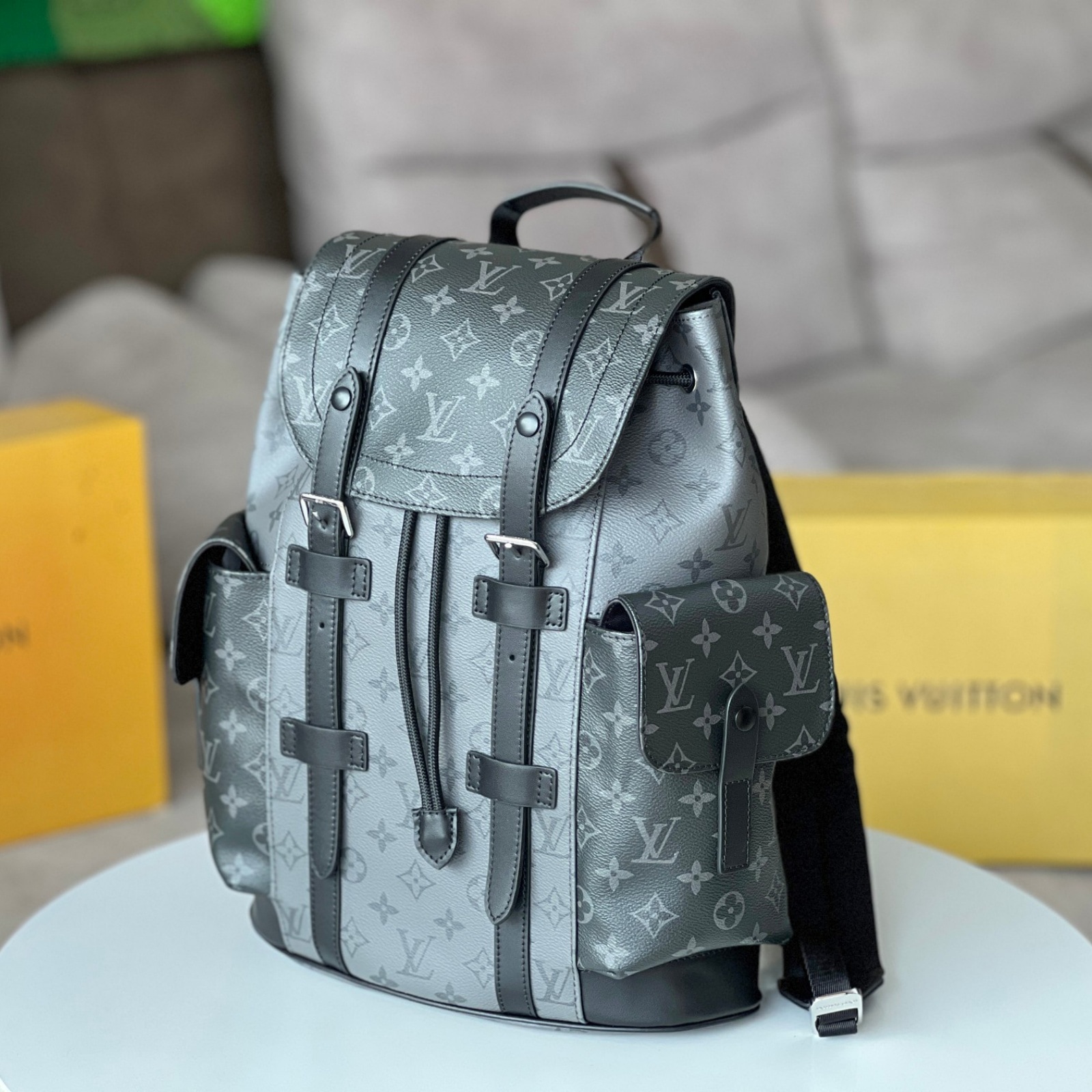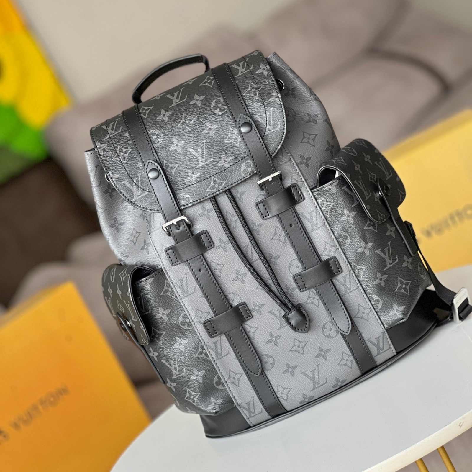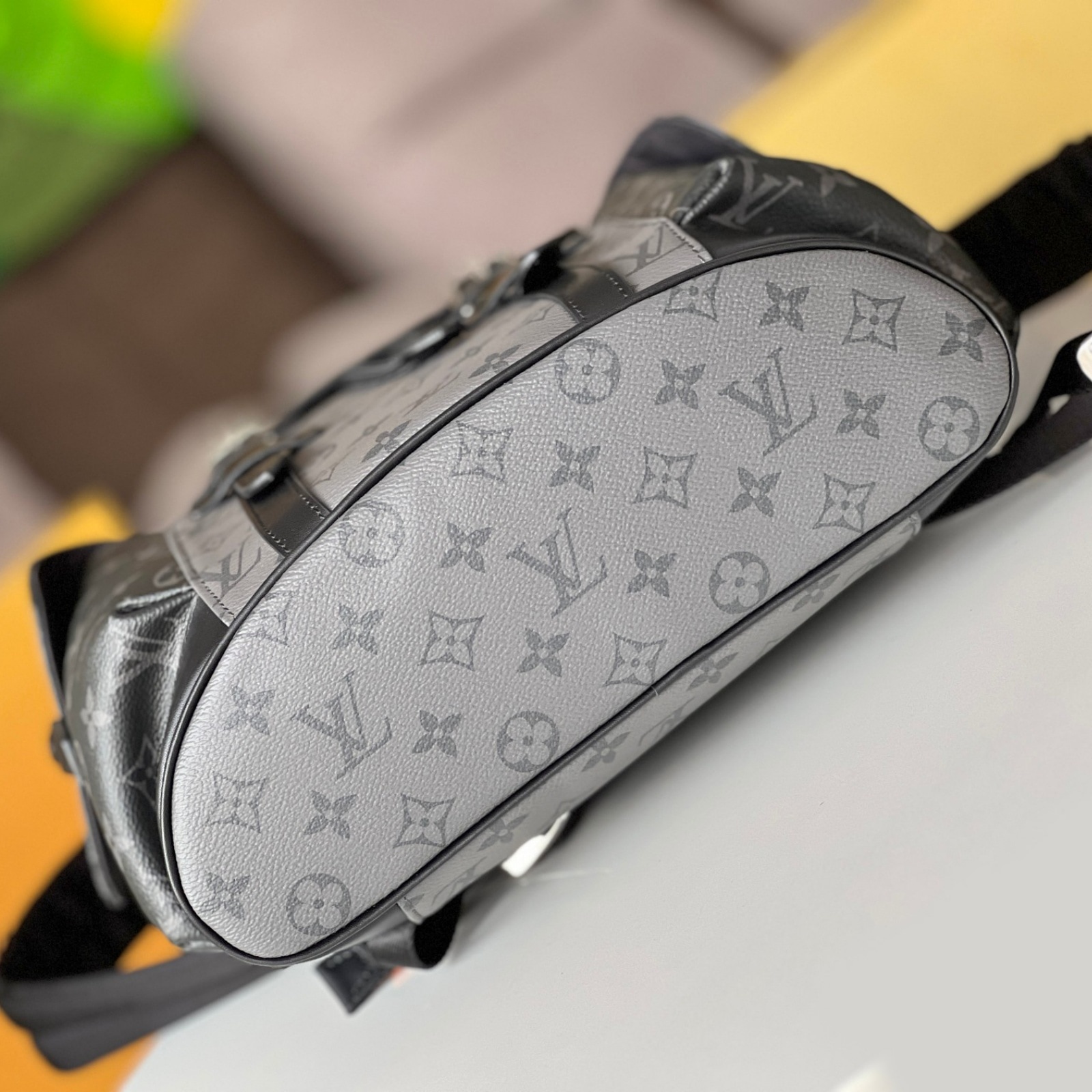 32 x 39 x 12 cm(幅 x 高さ x マチ)素材:モノグラム・エクリプス リバース キャンバストリミング:レザー(皮革の種類:牛革)ライニング:テキスタイル金具(色:シルバー)フラップ開閉式スナップボタン、ドローストリング開閉式サイドポケットx2iPad用内ポケットファスナー式内ポケット内フラットポケットx2ハンドル:シングル