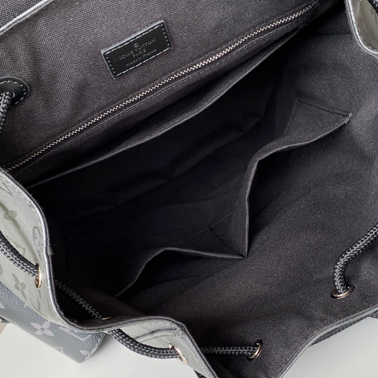 38 x 44 x 12.5 cm(幅 x 高さ x マチ)素材:モノグラム・エクリプス キャンバス、モノグラム・エクリプス リバース キャンバスライニング:テキスタイルトリミング:レザー(皮革の種類:牛革)金具(色:シルバー)長さ調節可能なショルダーストラップフラップ開閉式プレススタッズ&紐で開閉可能サイドポケットx2iPad用内ポケットファスナー式内ポケット内フラットポケットx2ハンドル:シングル