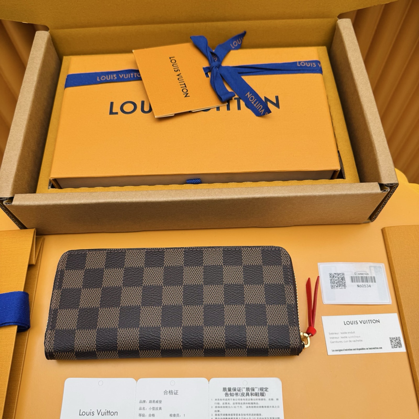 ルイ・ヴィトンの伝統的なダミエ・キャンバスに、カラフルなグレインレザーのライニングを施した長財布「ポルトフォイユ・クレマンス」。スリムなフォルムでありながら、ラウンドファスナー開閉式の内装には2つの充分な容量のコンパートメントとファスナー付きコインポケット、複数のカードスロットを備えた機能性が魅力です。ファスナー引き手にレザーを添えて仕上げた、クラッチバッグとしてもお使いいただけるアイテムです。