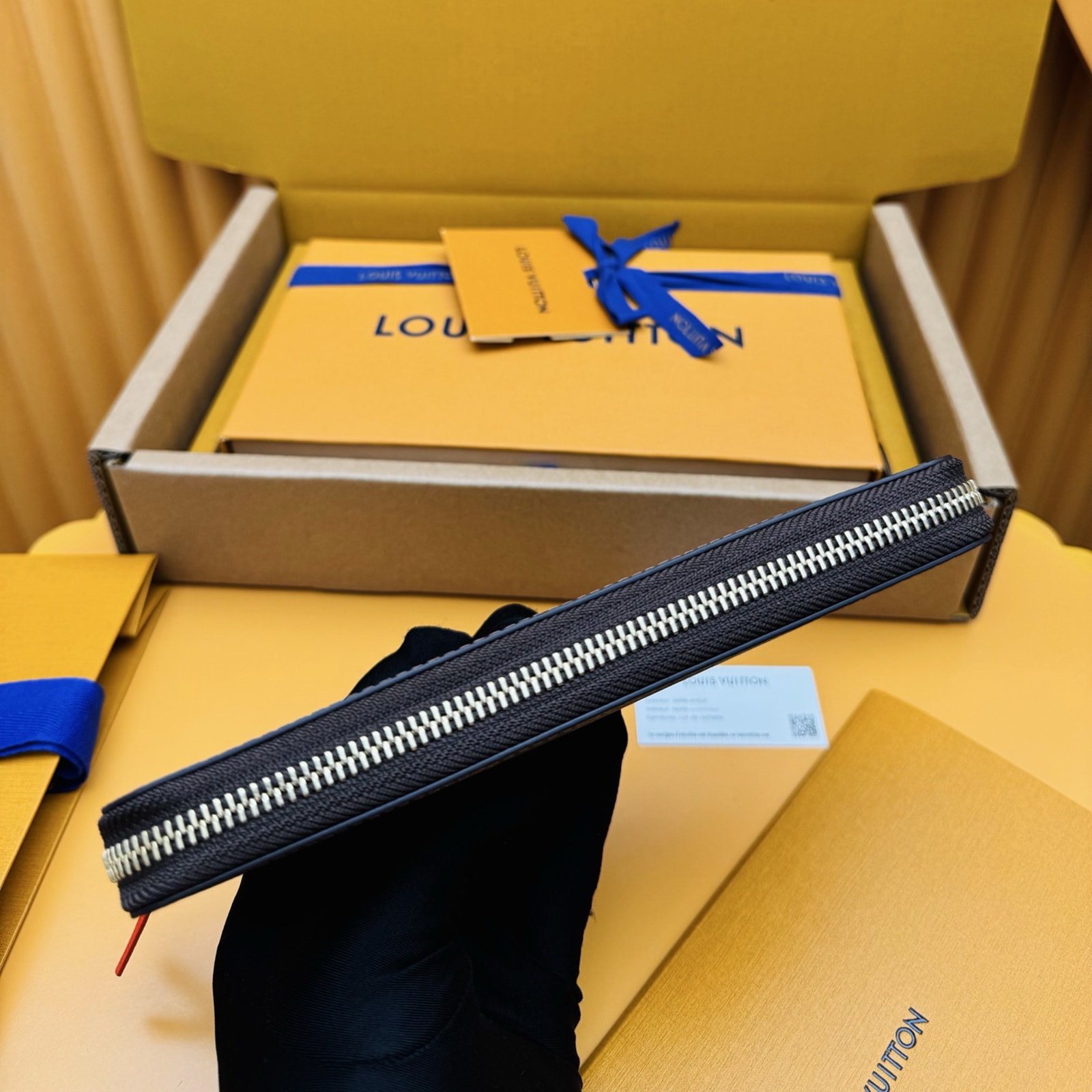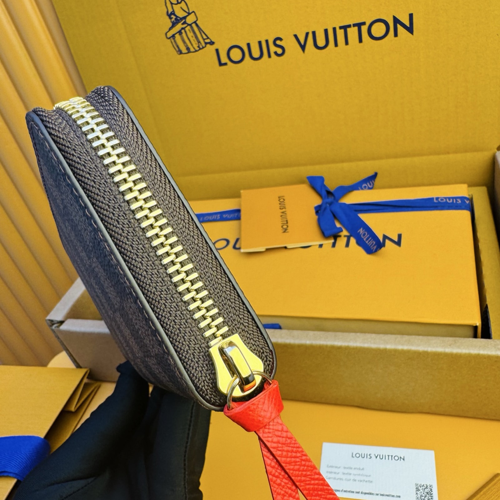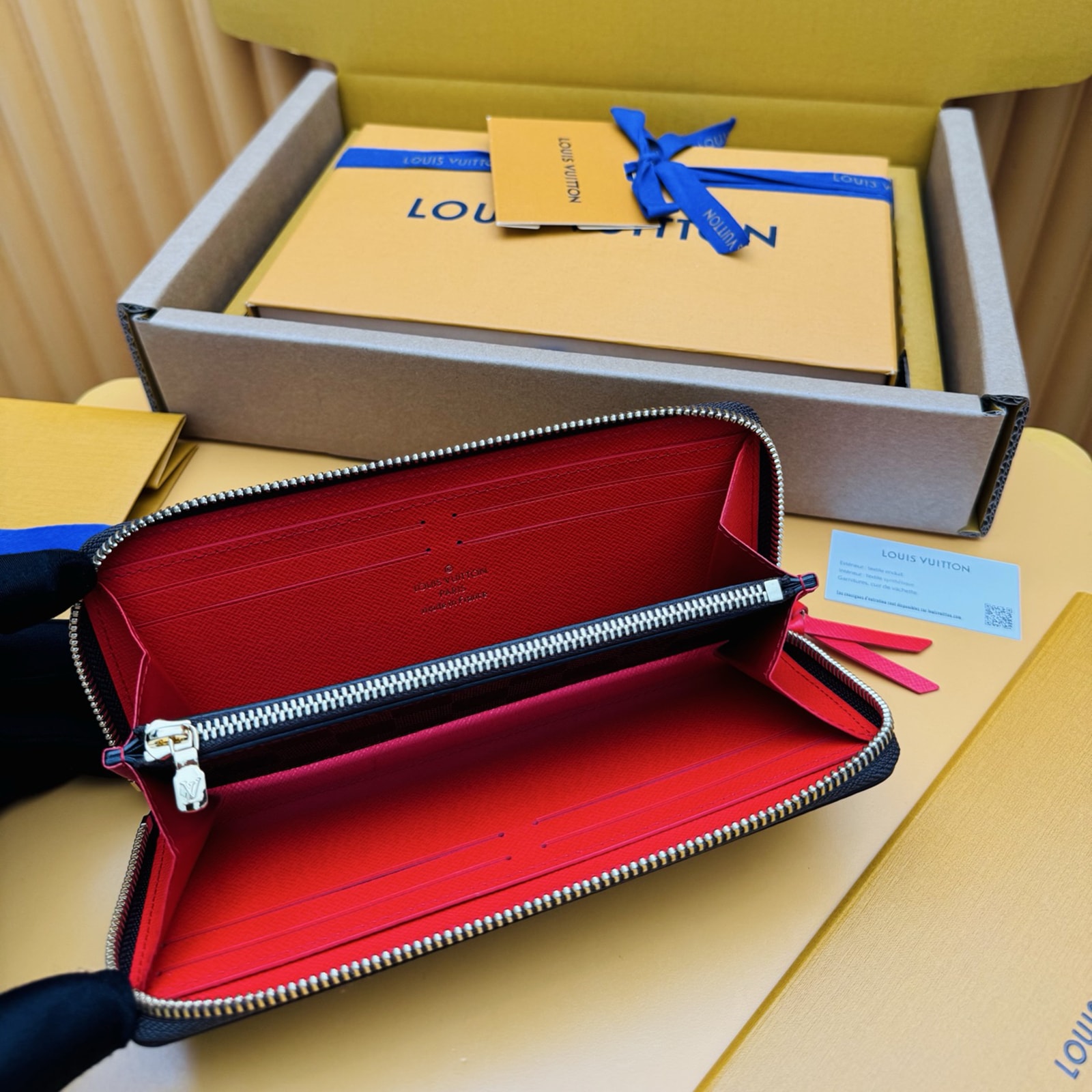 20 x 9 x 2 cm(幅 x 高さ x マチ)素材:ダミエ・エベヌ キャンバスライニング:グレインレザー金具(色:ゴールド)ファスナー開閉式まち付きコンパートメントx2ファスナー式コインケース内フラットポケットx2カード用ポケットx8