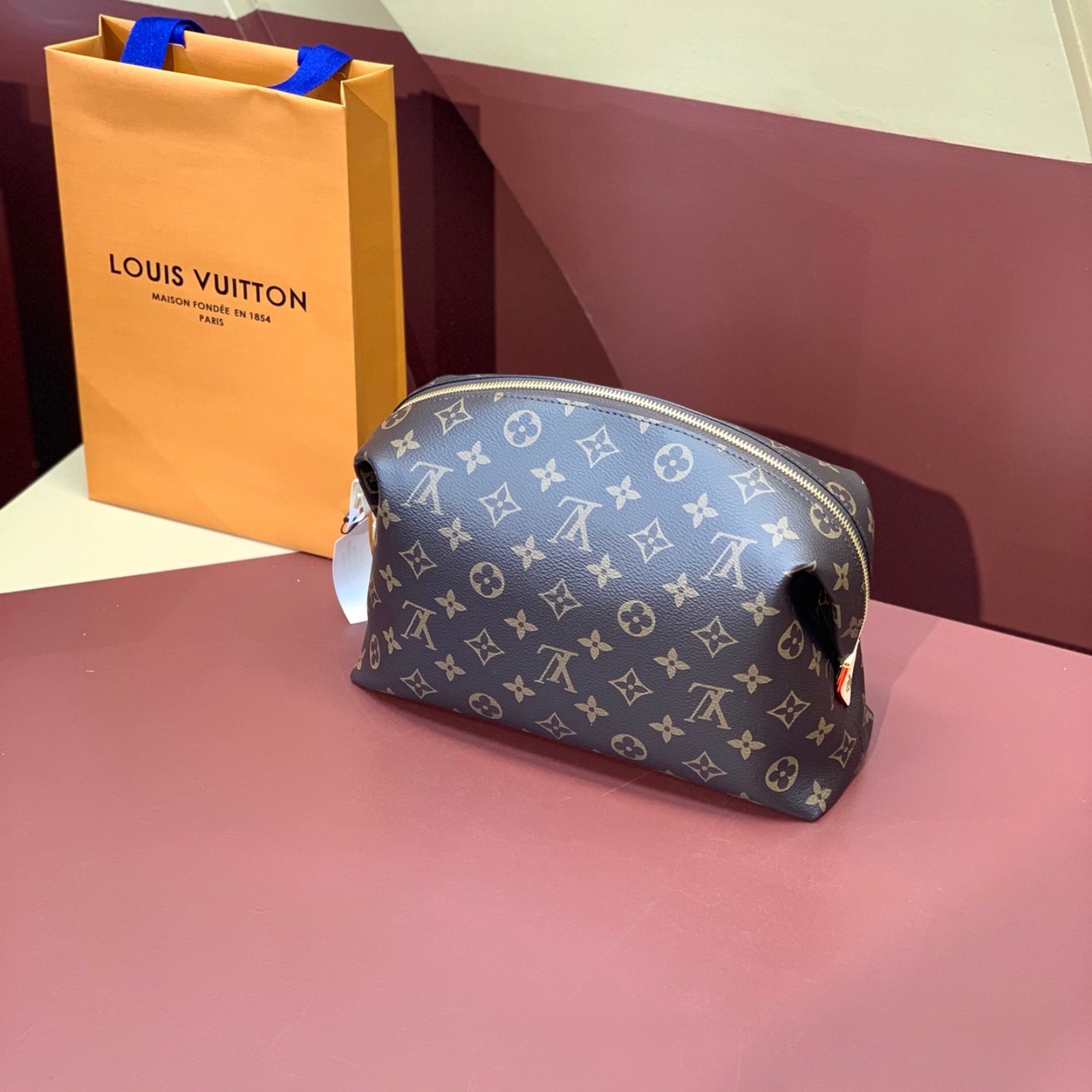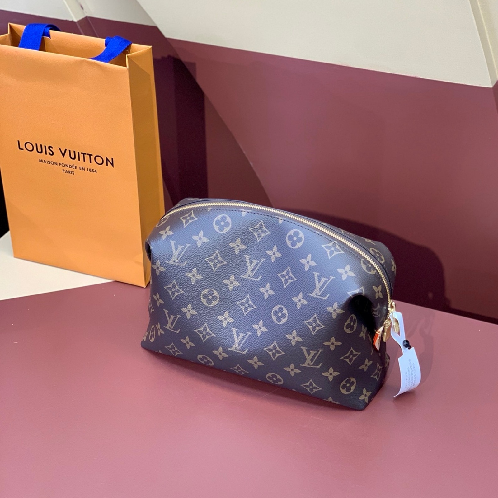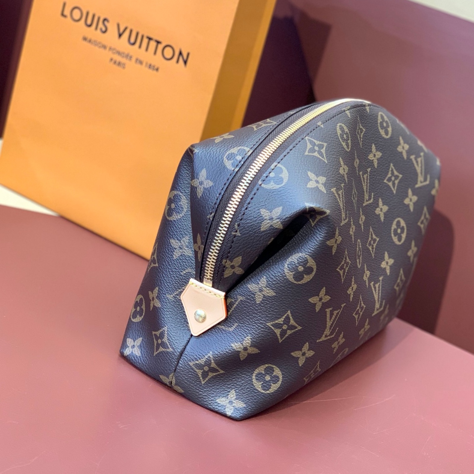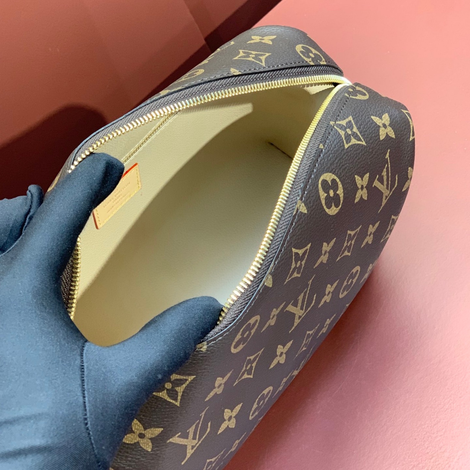 タイムレスなモノグラム・キャンバスで仕立てた「ポシェット・コスメティック GM」。ゴールドカラーのメタルパーツと、汚れても簡単にお手入できるコーティングを施したライニングをあしらいました。内側に配したフラットポケットとファスナー付きポケットで、化粧品をすっきり整理できます。ファスナー開閉式。