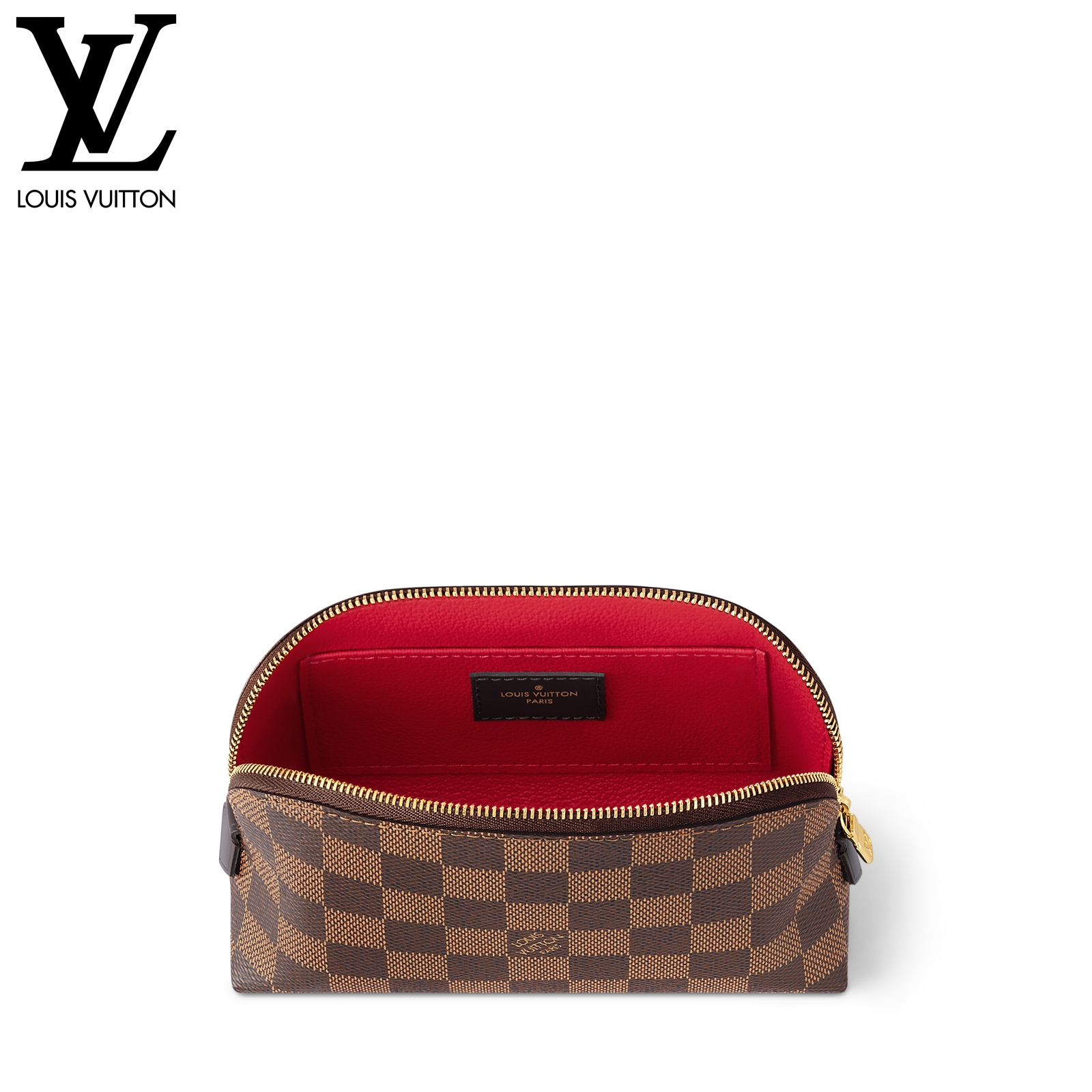 コンパクトな化粧用ポーチ「ポシェット・コスメティック PM」。 ハンドバッグにスマートに収まります。平らなボトムとラップアラウンド式の開閉で、化粧品を簡単に取り出せます。