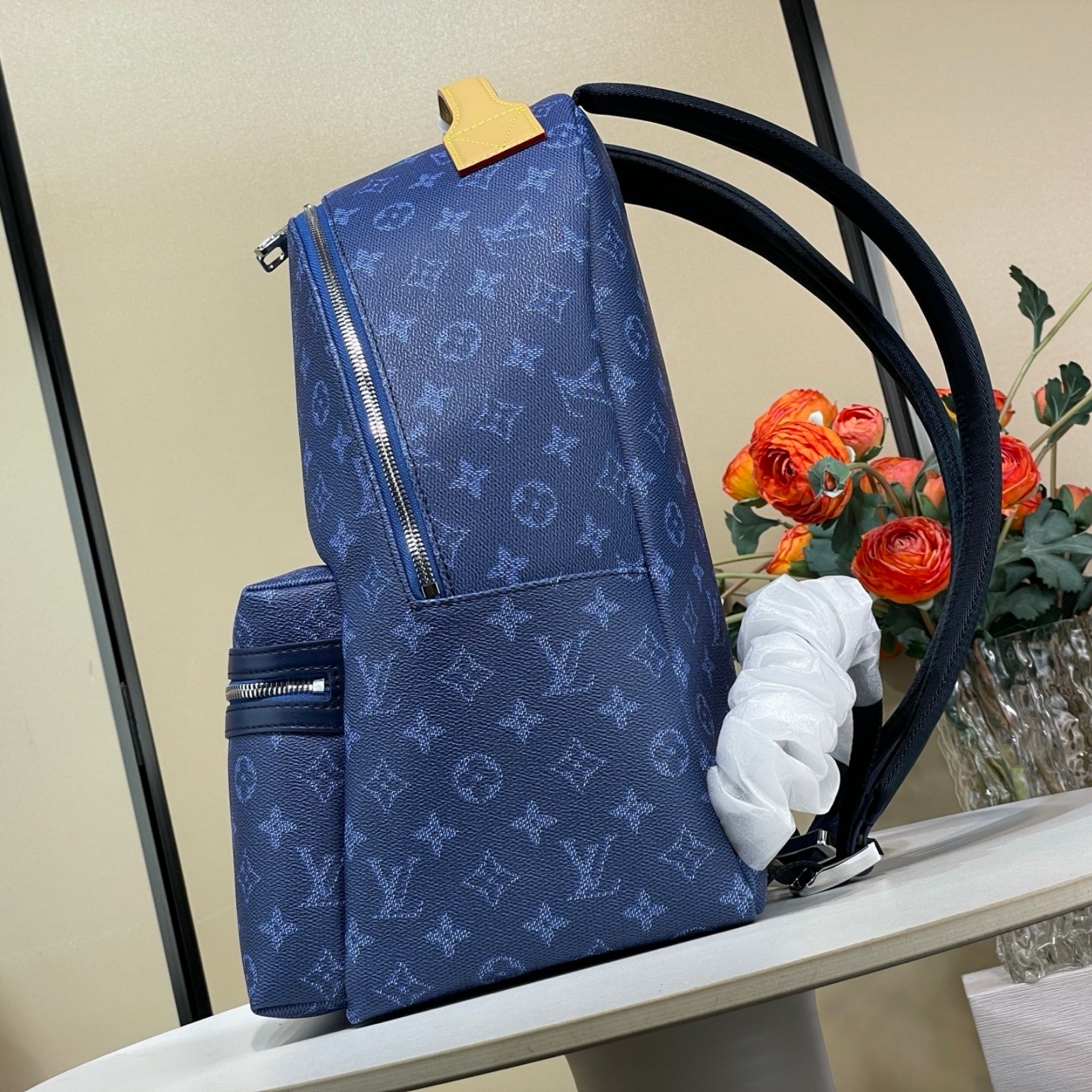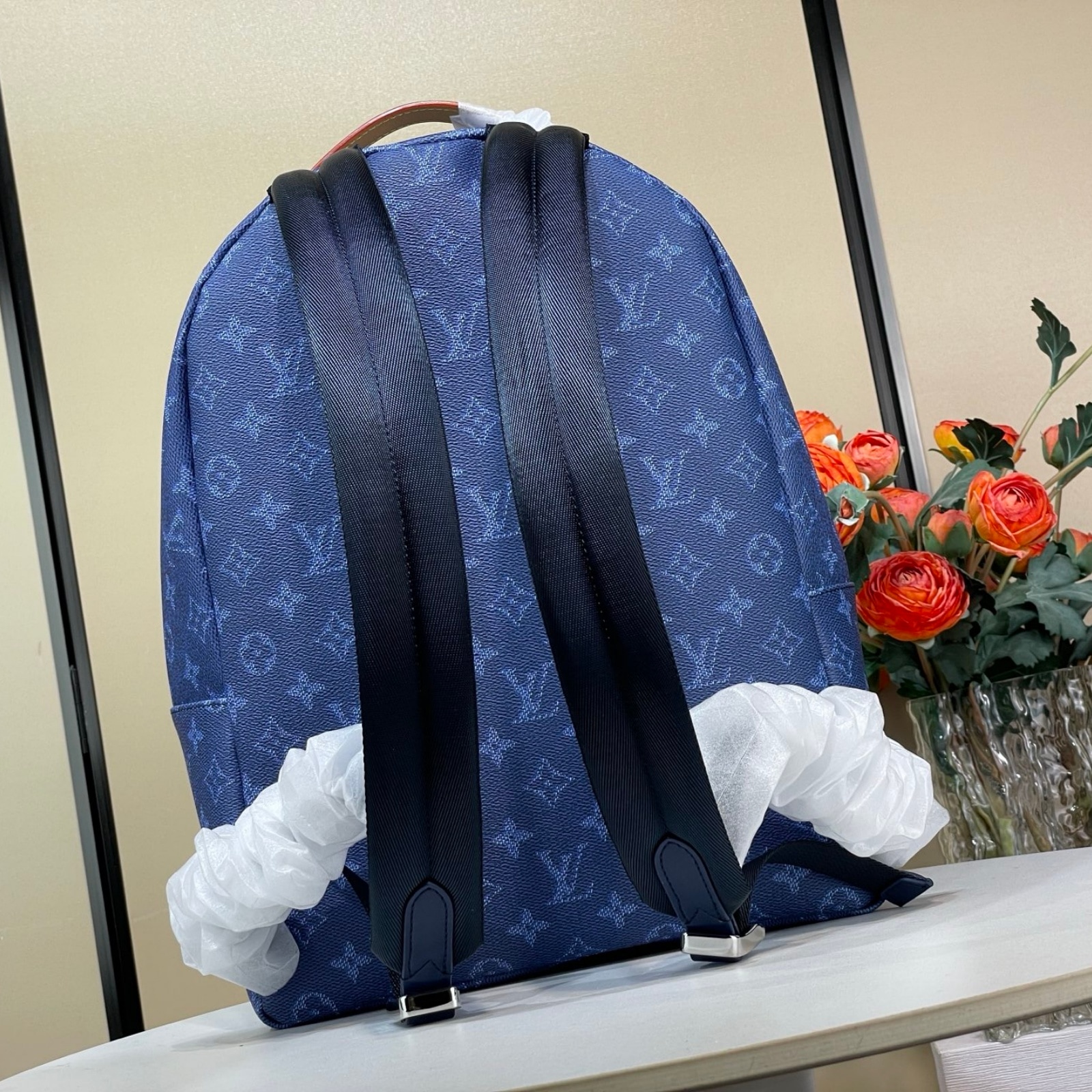 30 x 40 x 20 cm(幅 x 高さ x マチ)カラー:オーシャンカラー素材:モノグラム・ヘリテージ キャンバストリミング:カウハイドレザー(皮革の種類:牛革)ライニング:テキスタイル金具(色:シルバー)ダブルファスナー開閉式ハンドル調節可能なショルダーストラップサイドにオープンポケット × 2フロントにファスナー式ポケット内側にフラットポケット × 3ハンドル:シングル