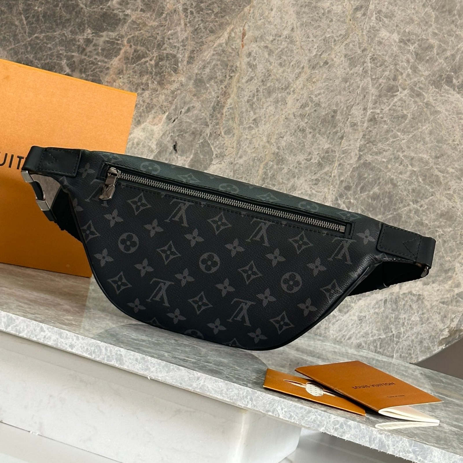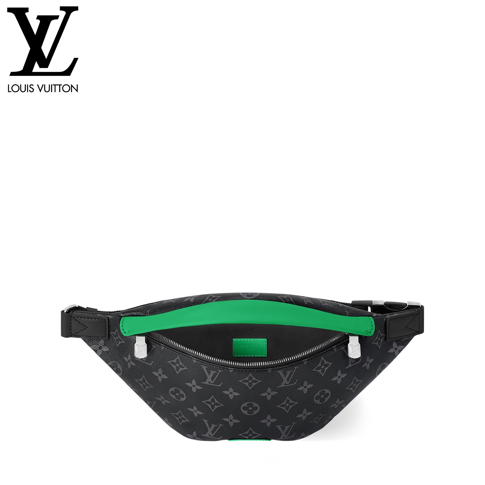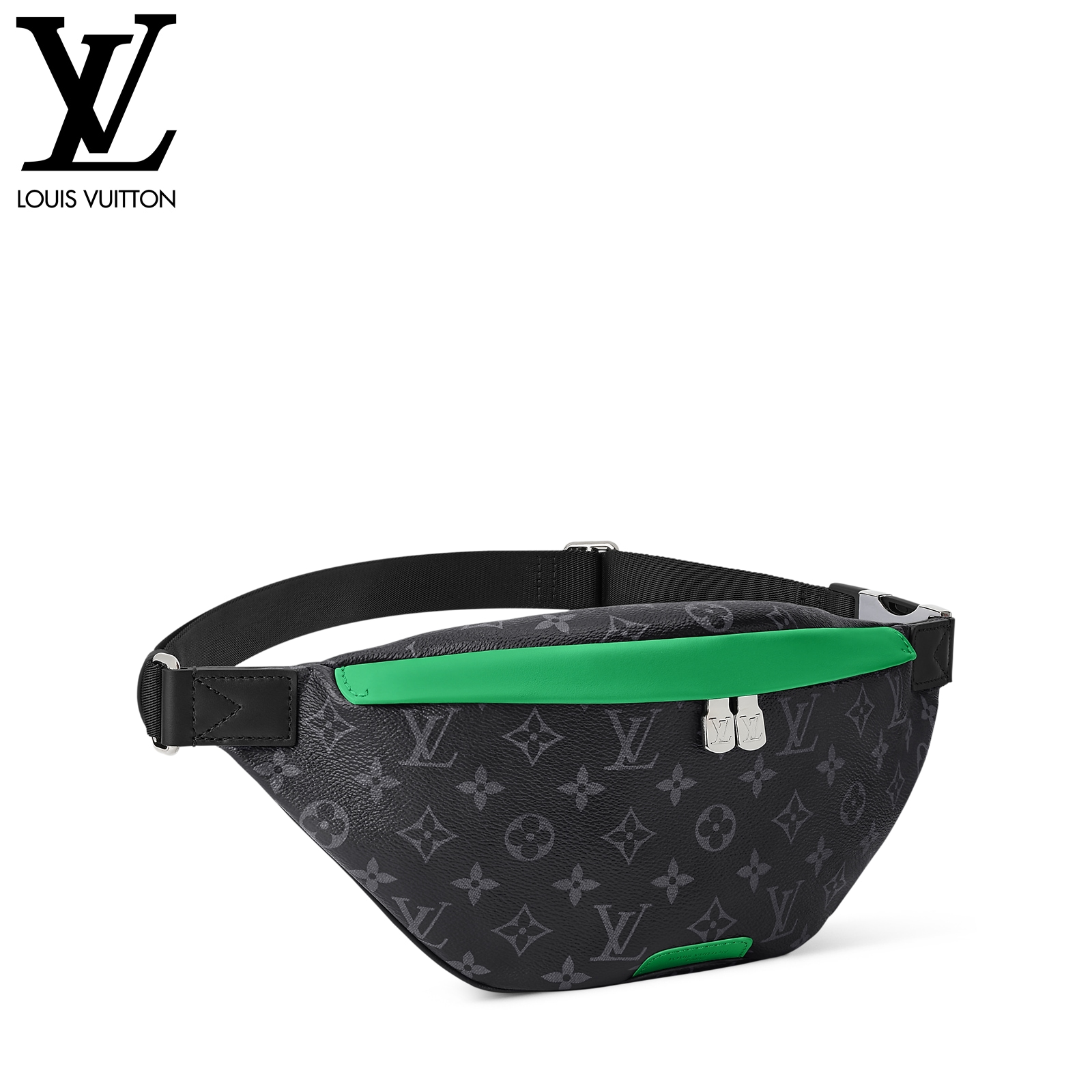 肩掛けや斜め掛け、ウエストバッグとして楽しめる、モノグラム・エクリプス キャンバスの「ディスカバリー・バムバッグ」。色鮮やかなレザーのアクセントと、エイジング加工をさりげなく施したシルバーカラーの金具が魅力です。持ち物を安全に持ち運べるダブルファスナー開閉式で、背面には貴重品の収納にぴったりなフラットポケットを備えた一品。