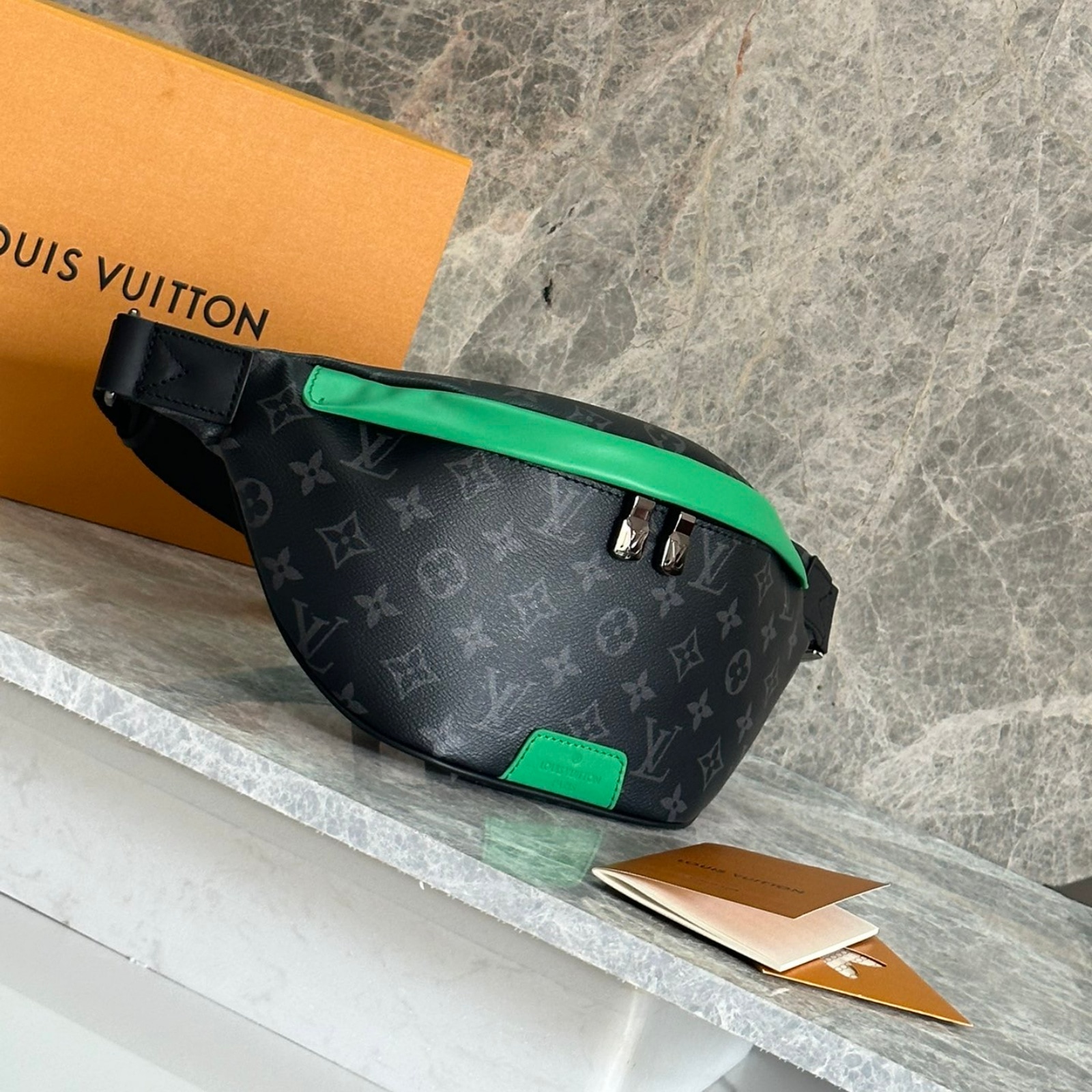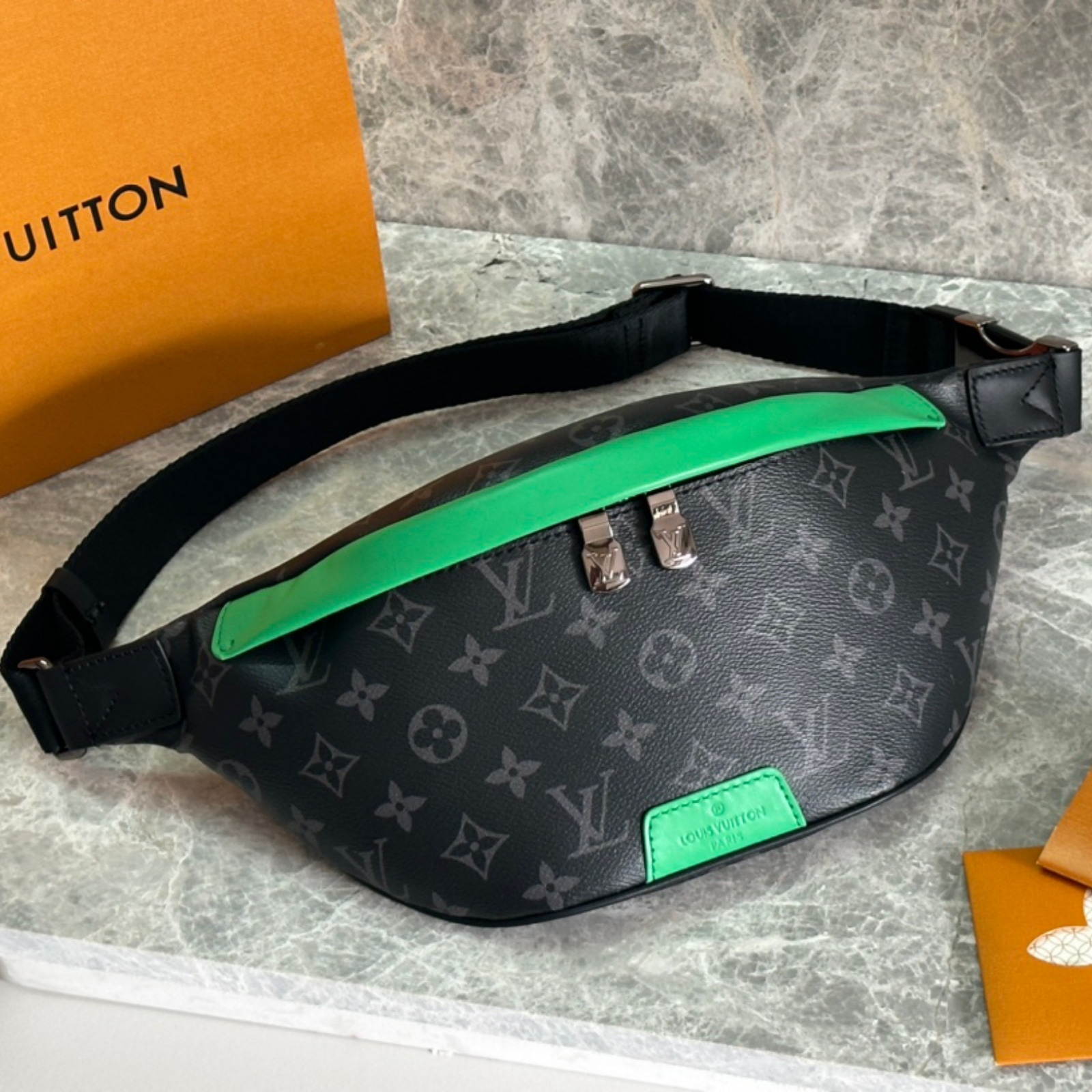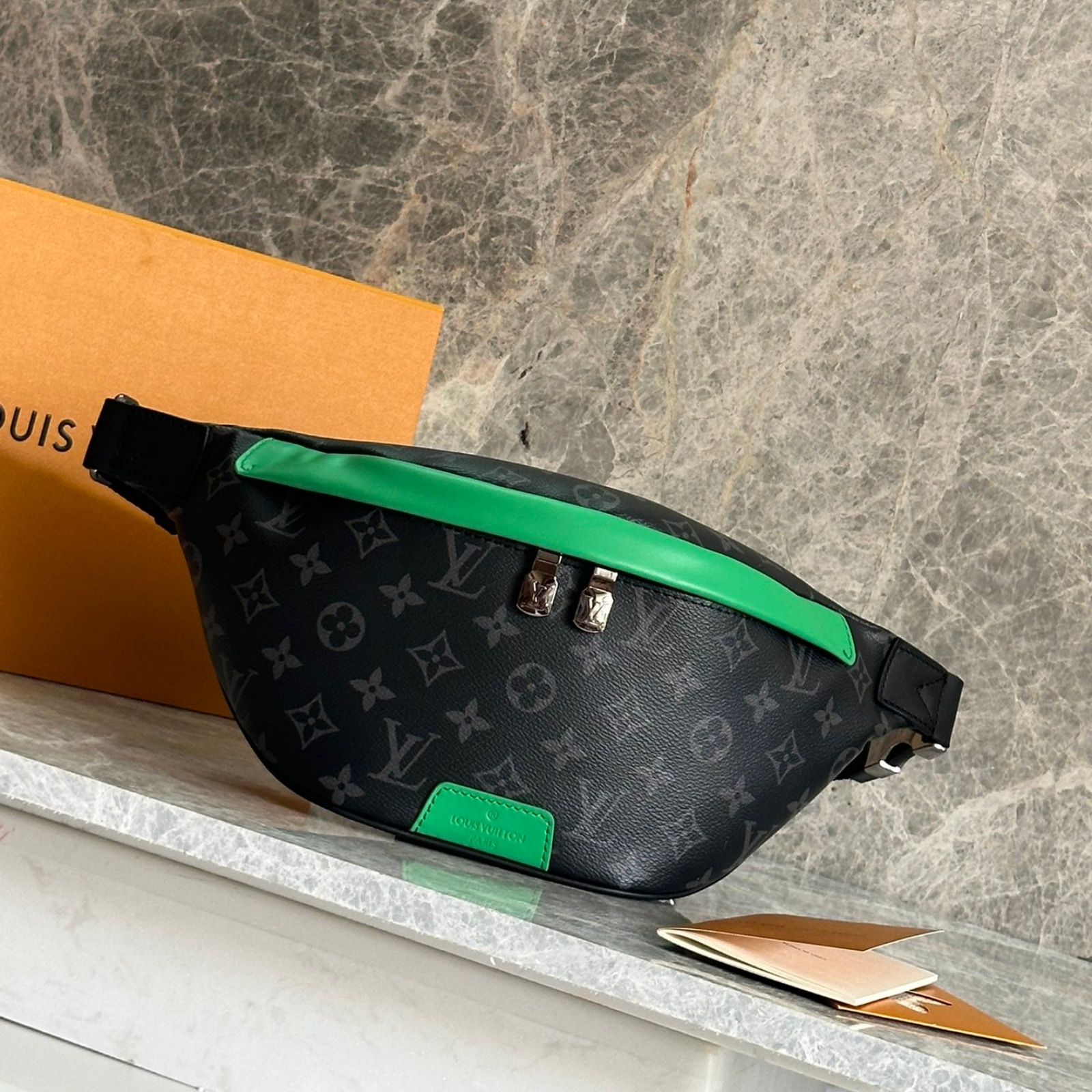 肩掛けや斜め掛け、ウエストバッグとして楽しめる、モノグラム・エクリプス キャンバスの「ディスカバリー・バムバッグ」。色鮮やかなレザーのアクセントと、エイジング加工をさりげなく施したシルバーカラーの金具が魅力です。持ち物を安全に持ち運べるダブルファスナー開閉式で、背面には貴重品の収納にぴったりなフラットポケットを備えた一品。
