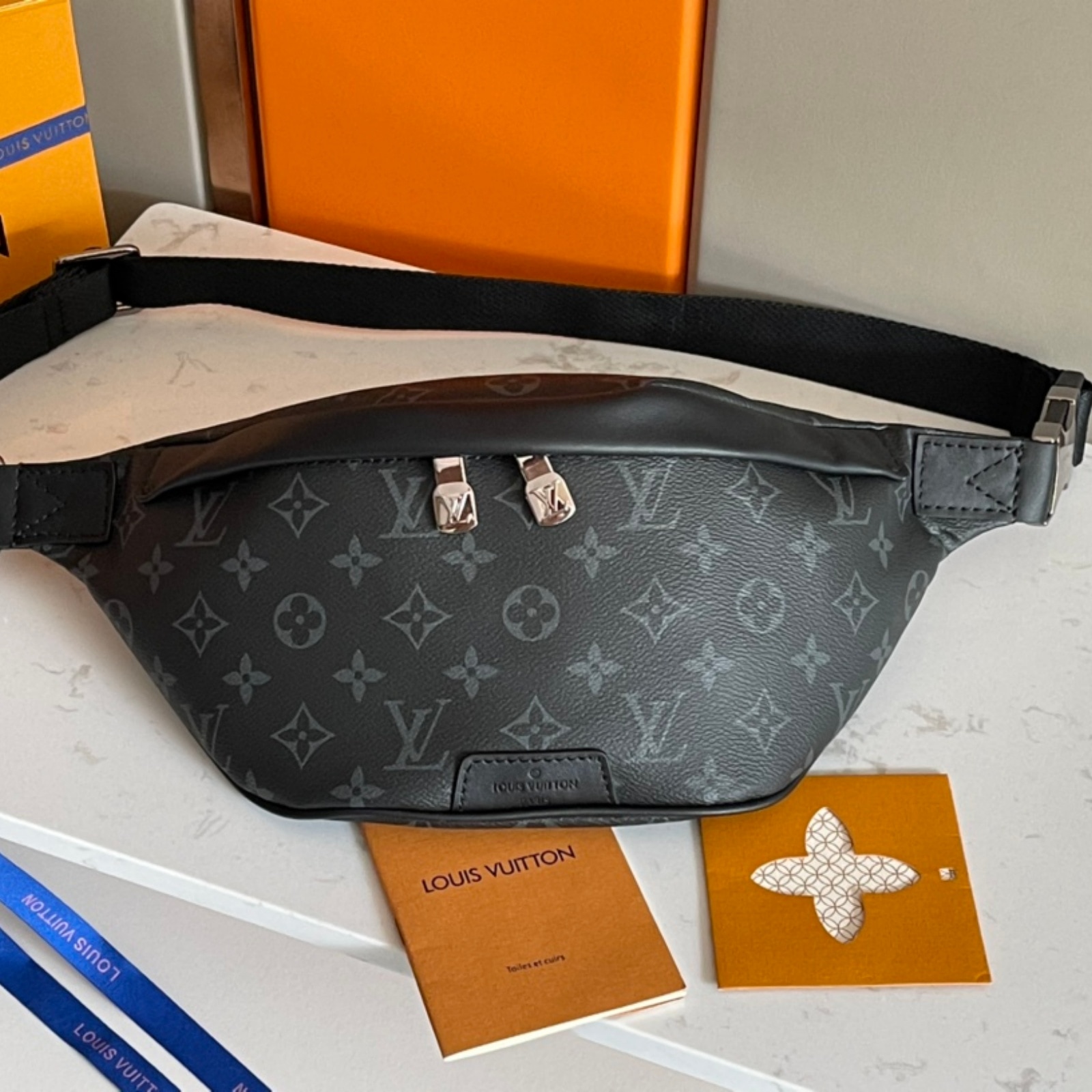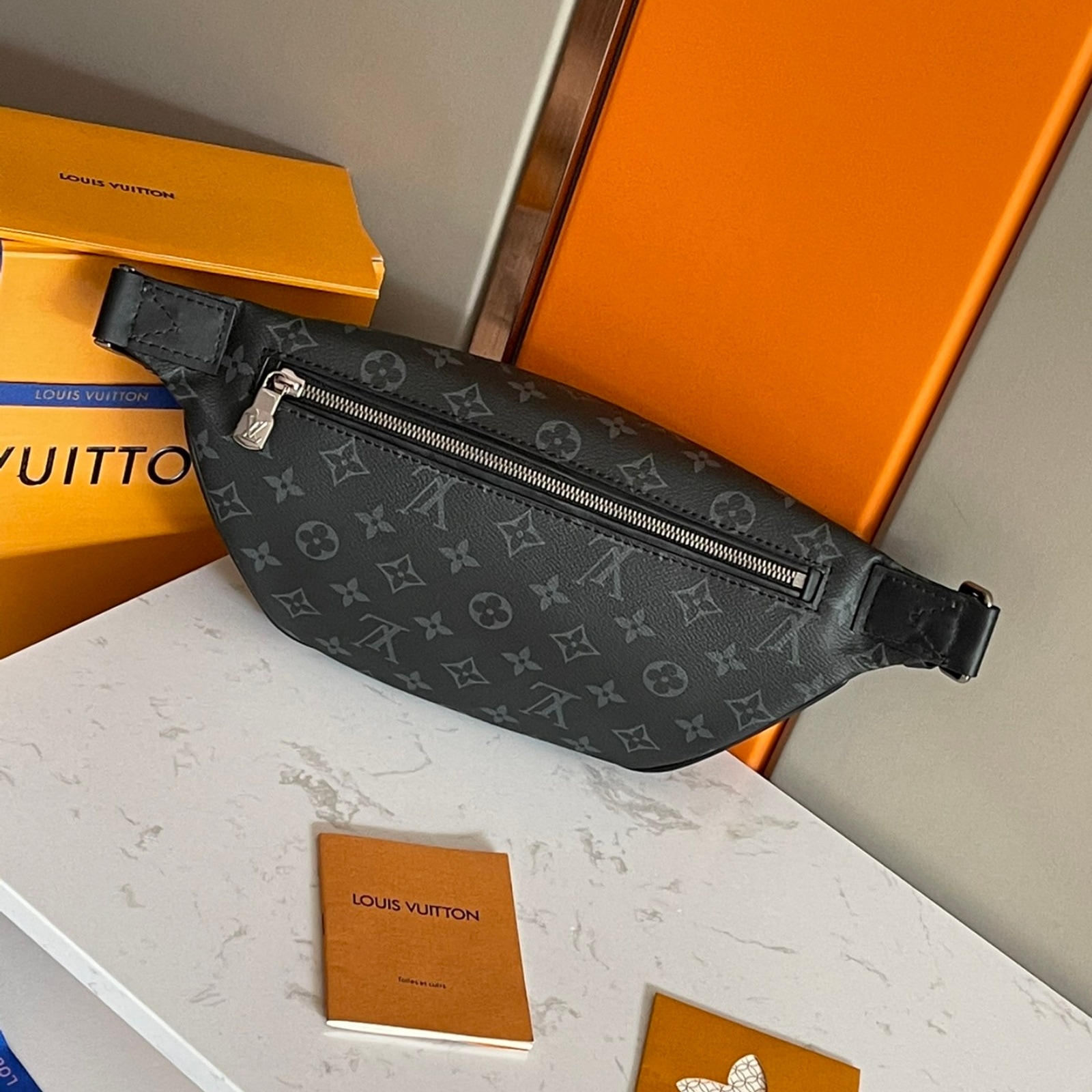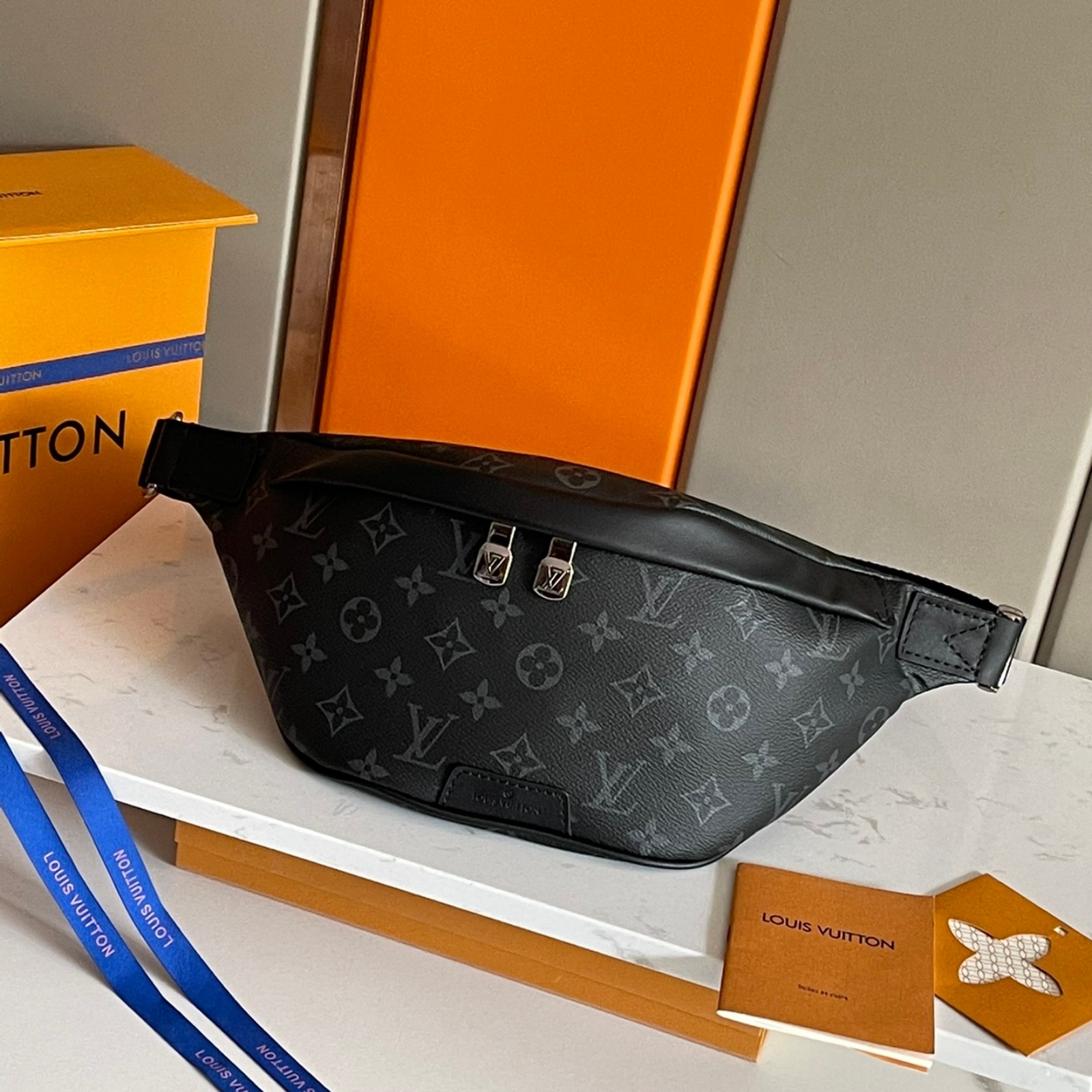 モノグラム・エクリプス キャンバスを使用した「ディスカバリー・バムバッグ PM」。カジュアルシックとモダンな機能性の融合を実現した理想的なアイテムです。ボディフレンドリーなシェイプと調節可能なベルトで、ベルトバッグとしてだけでなく、ショルダーバッグやクロスボディバッグとして3WAYで使用することも可能。前面と背面には、スマートフォンやカード、鍵を簡単に取り出せるファスナー付きポケットを備えています。