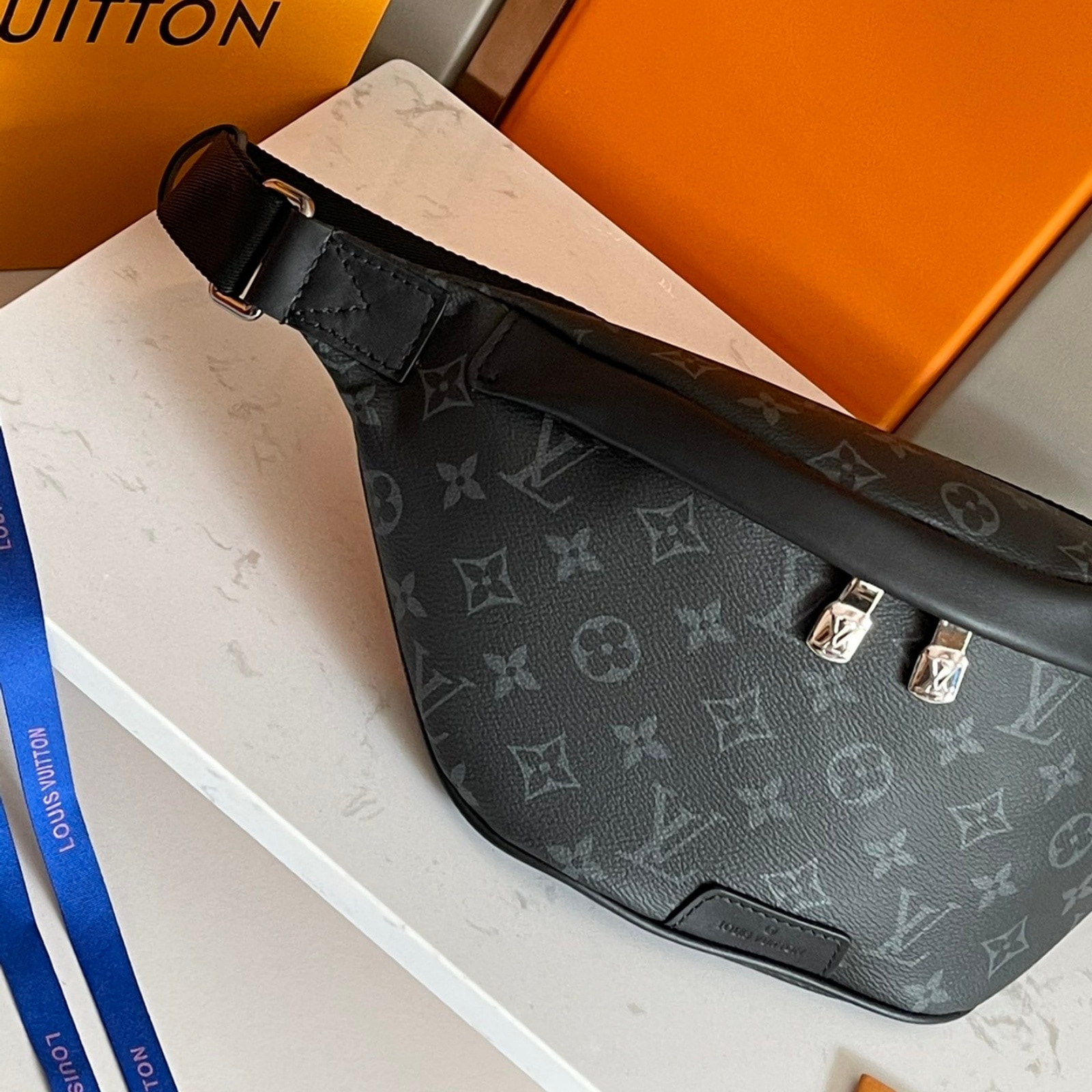 44 x 15 x 9 cm(幅 x 高さ x マチ)素材:モノグラム・エクリプス キャンバストリミング:レザー(皮革の種類:牛革)ライニング:テキスタイル金具(色:シルバー)ファスナー開閉式調節可能なベルト外側中央ポケット外側背面フラットポケットストラップ:取り外し不可, 調整可能ストラップの頂点からバッグ上部までの長さ(最短):26.0 cmストラップの頂点からバッグ上部までの長さ(最長):42.0 cm