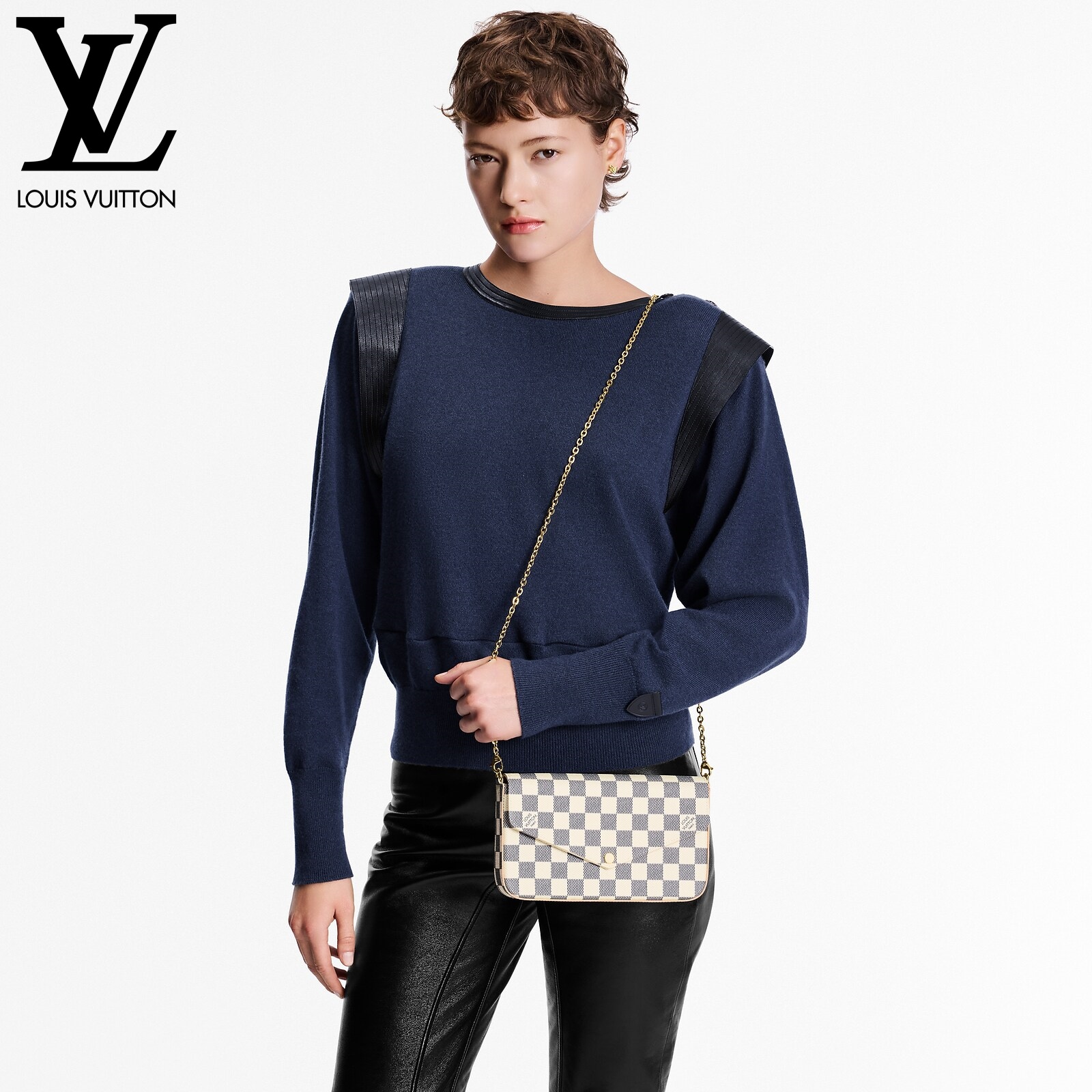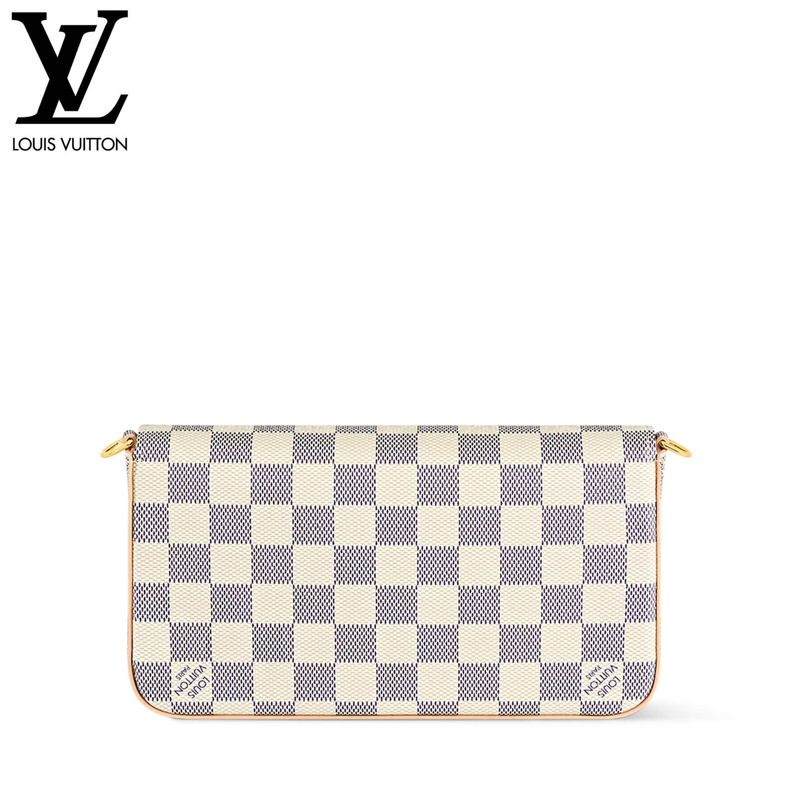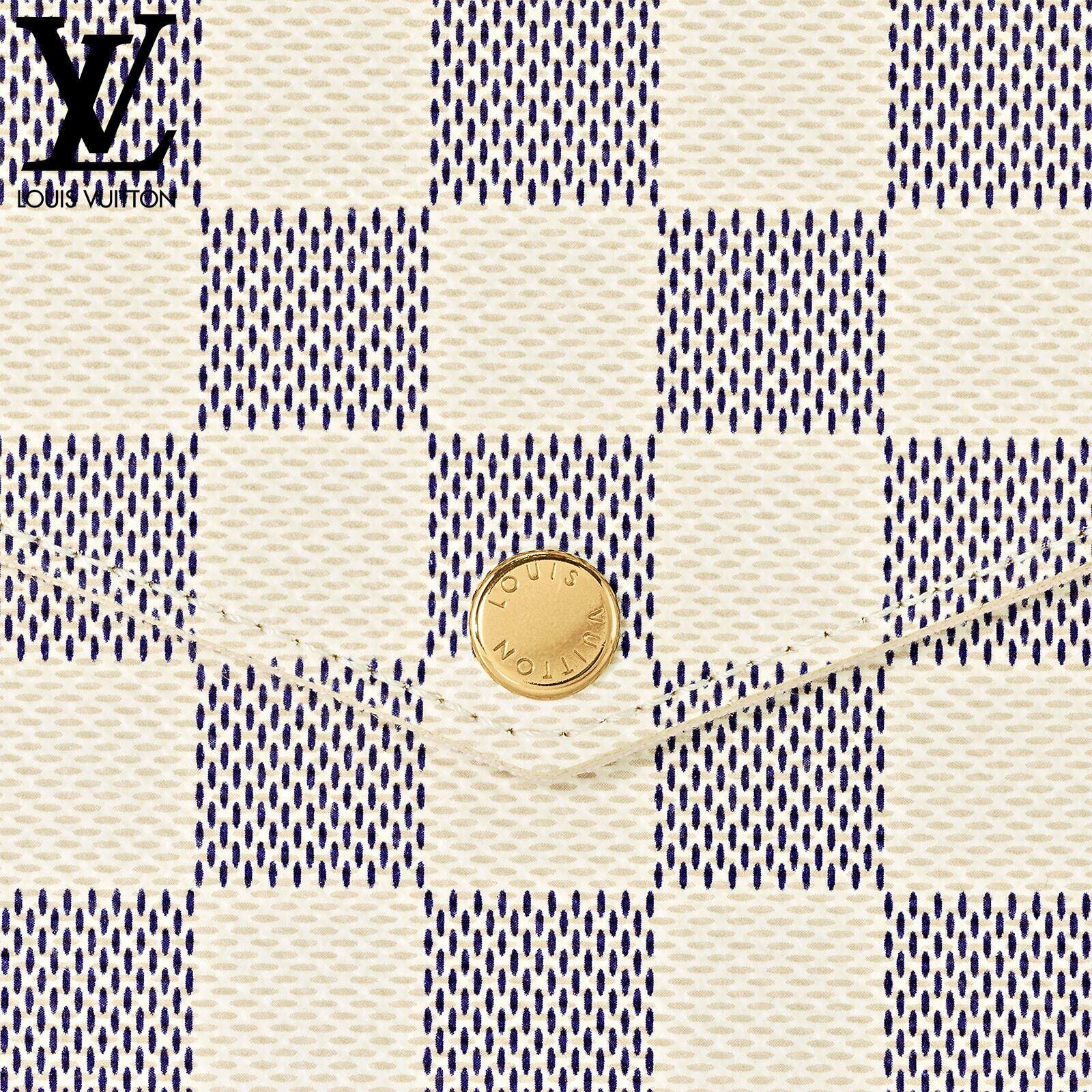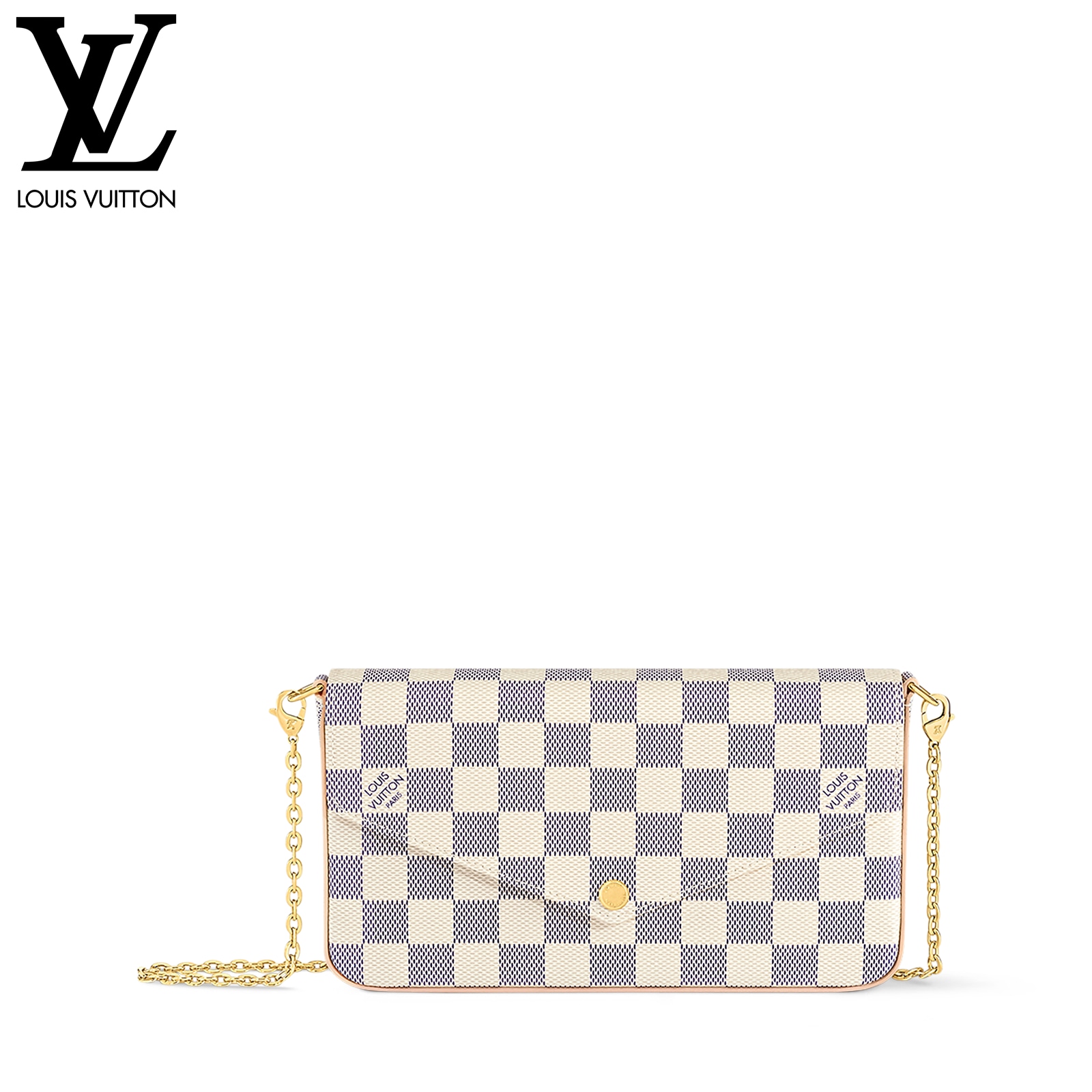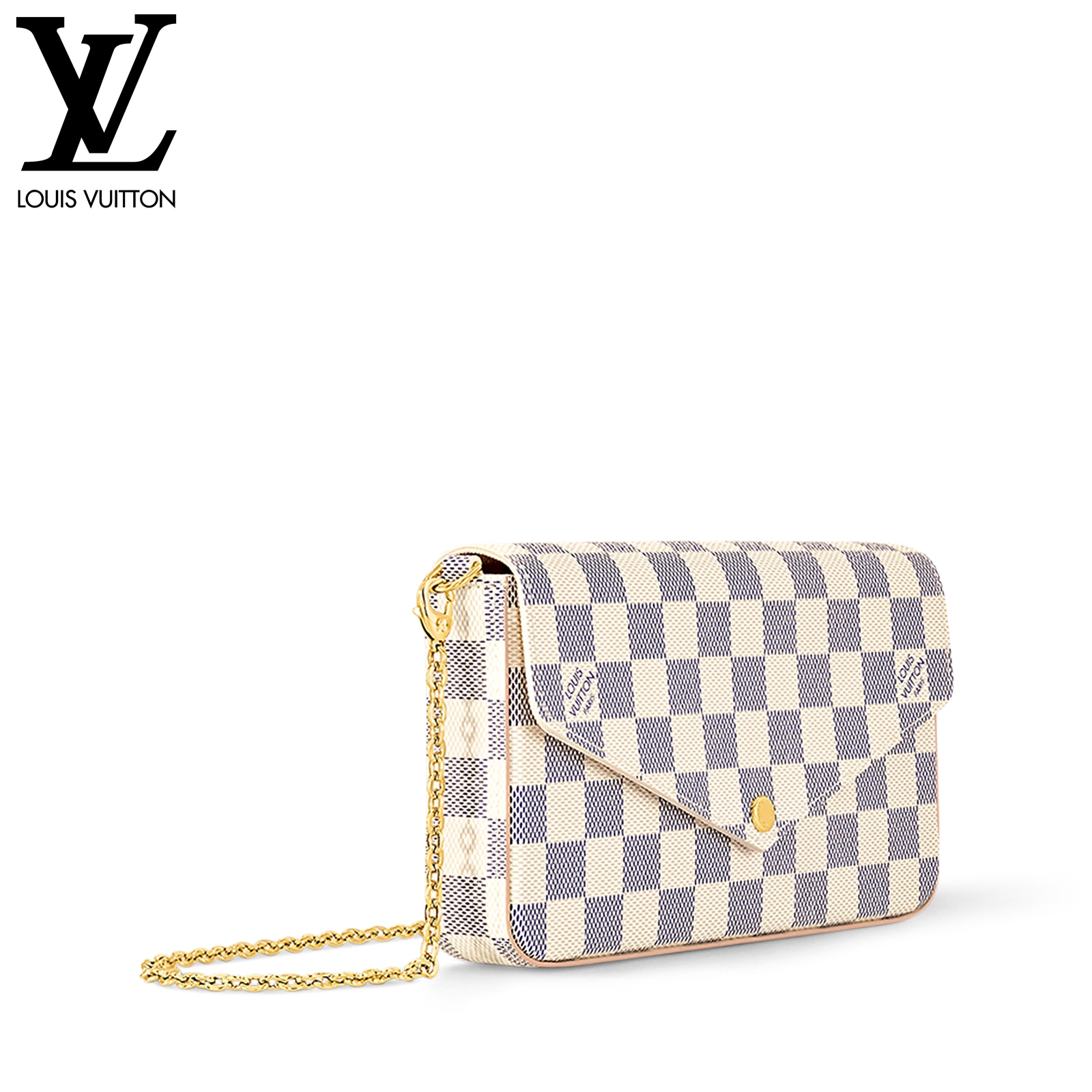 21 x 12 x 3 cm (幅 x 高さ x マチ) 素材:ダミエ・アズール キャンバス、カウハイドレザー(皮革の種類:牛革) トリミング:ダミエ・アズール キャンバス、カウハイドレザー(皮革の種類:牛革) ライニング:マイクロファイバー 金具(色:ゴールド) スナップボタン開閉式 大きなコンパートメント 取外し可能なファスナー式ポケット 8つのカードスロット付き取外し可能なフラットポケット 内フラットポケット 6.7インチのスマートフォン、ポルト カルト・LV チャーム、イヤホン、鍵、リップスティックなど収納可能 チェーン:取り外し可能 チェーンの頂点からバッグ上部までの長さ(最短):53.0 cm