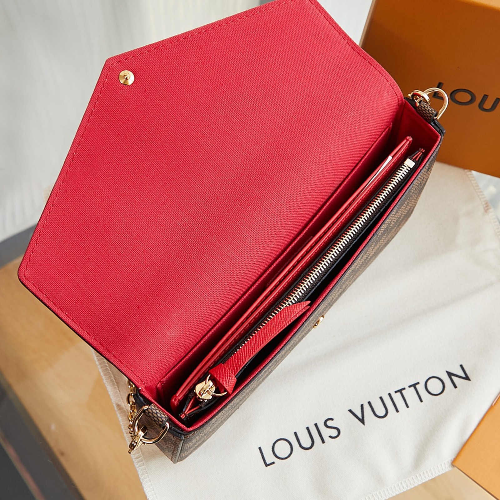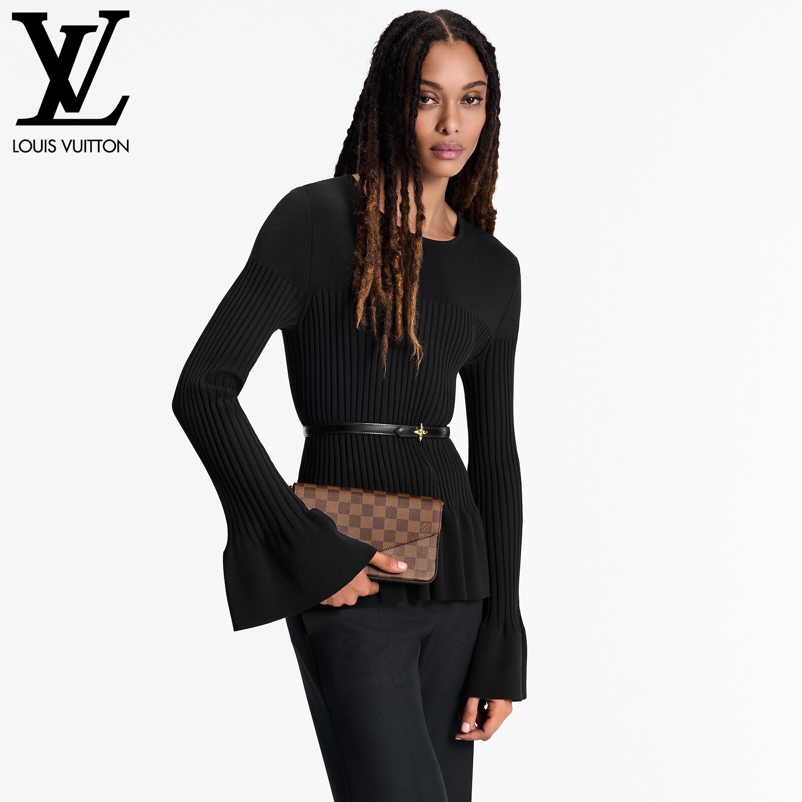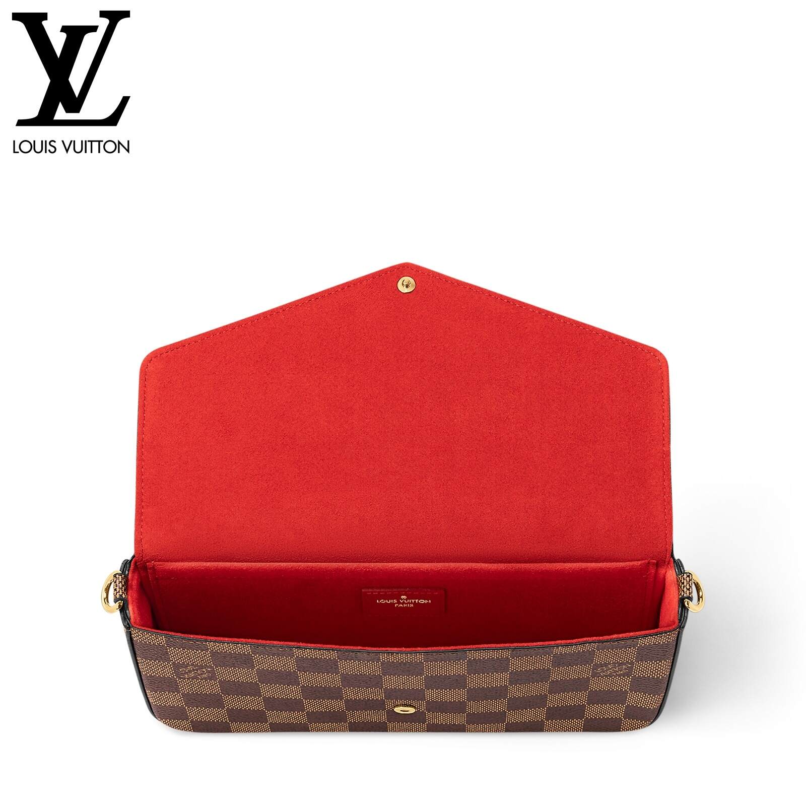 21 x 12 x 3 cm (幅 x 高さ x マチ) カラー:セリーズレッド 素材:ダミエ・エベヌ キャンバス、カウハイドレザー(皮革の種類:牛革) トリミング:素材:ダミエ・エベヌ キャンバス、カウハイドレザー(皮革の種類:牛革) ライニング:マイクロファイバー 金具(色:ゴールド) スナップボタン開閉式 大きなコンパートメント 取外し可能なファスナー式ポケット 8つのカードスロット付き取外し可能なフラットポケット 内フラットポケット 6.7インチのスマートフォン、ポルト カルト・LV チャーム、イヤホン、鍵、リップスティックなど収納可能 チェーン:取り外し可能 チェーンの頂点からバッグ上部までの長さ(最短):53.0 cm
