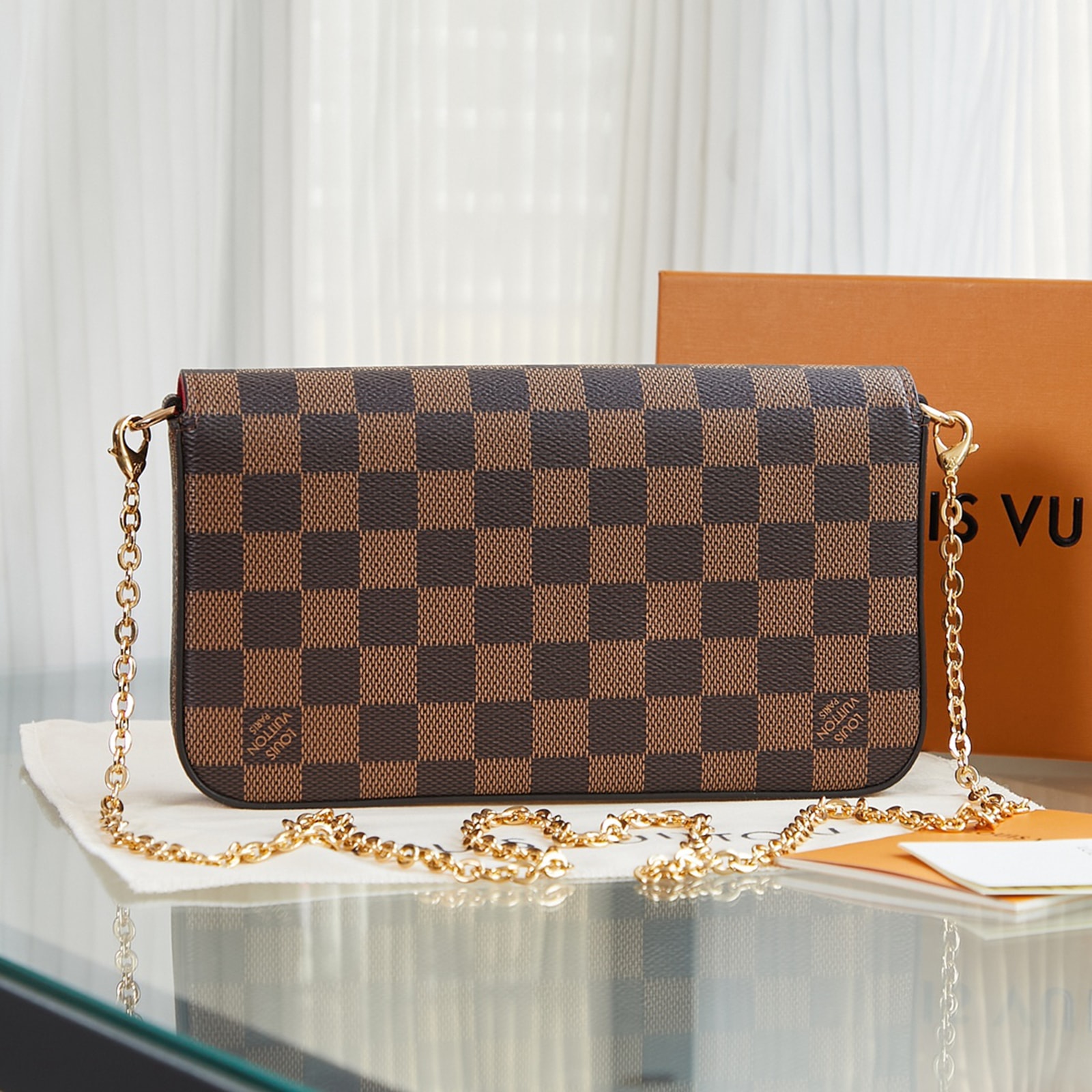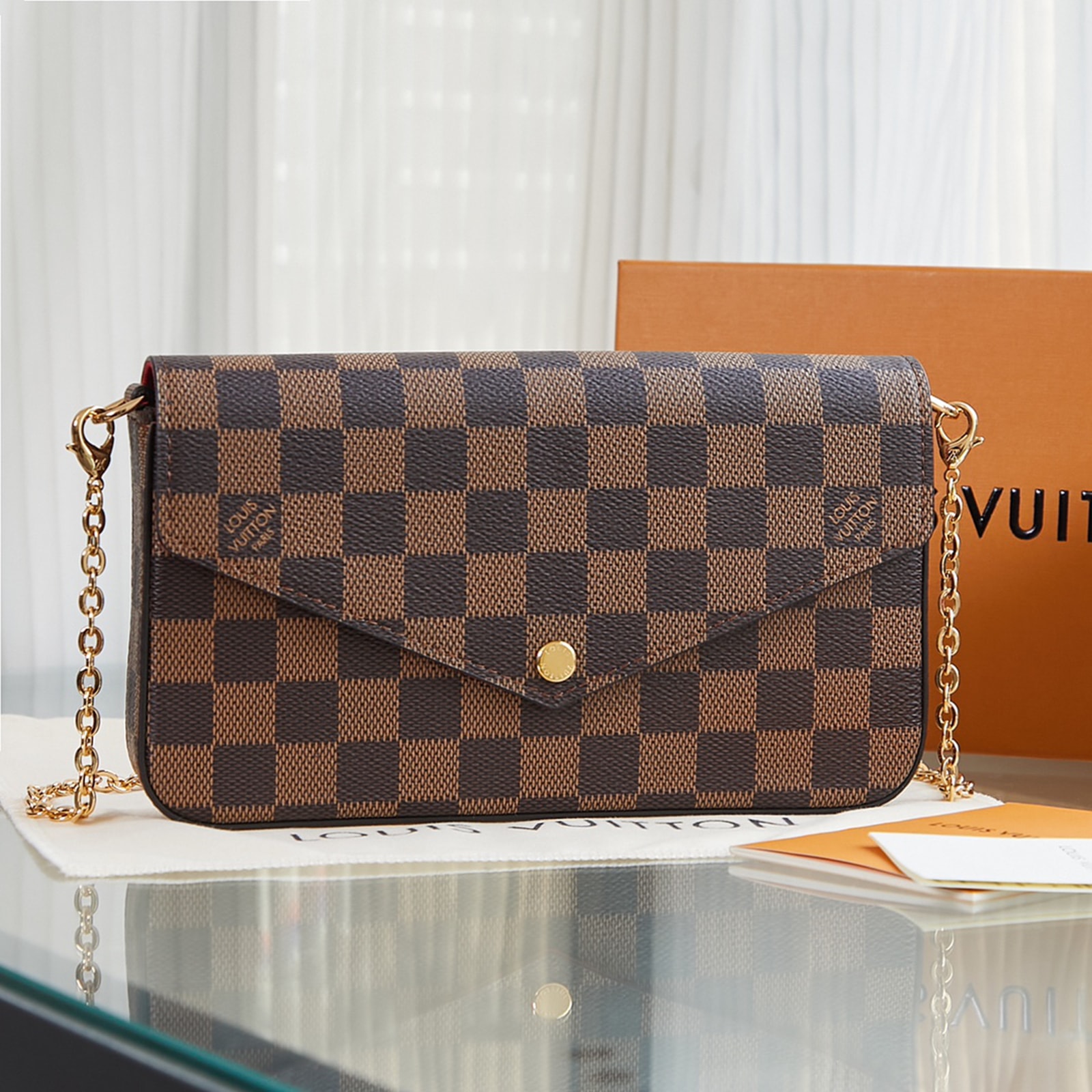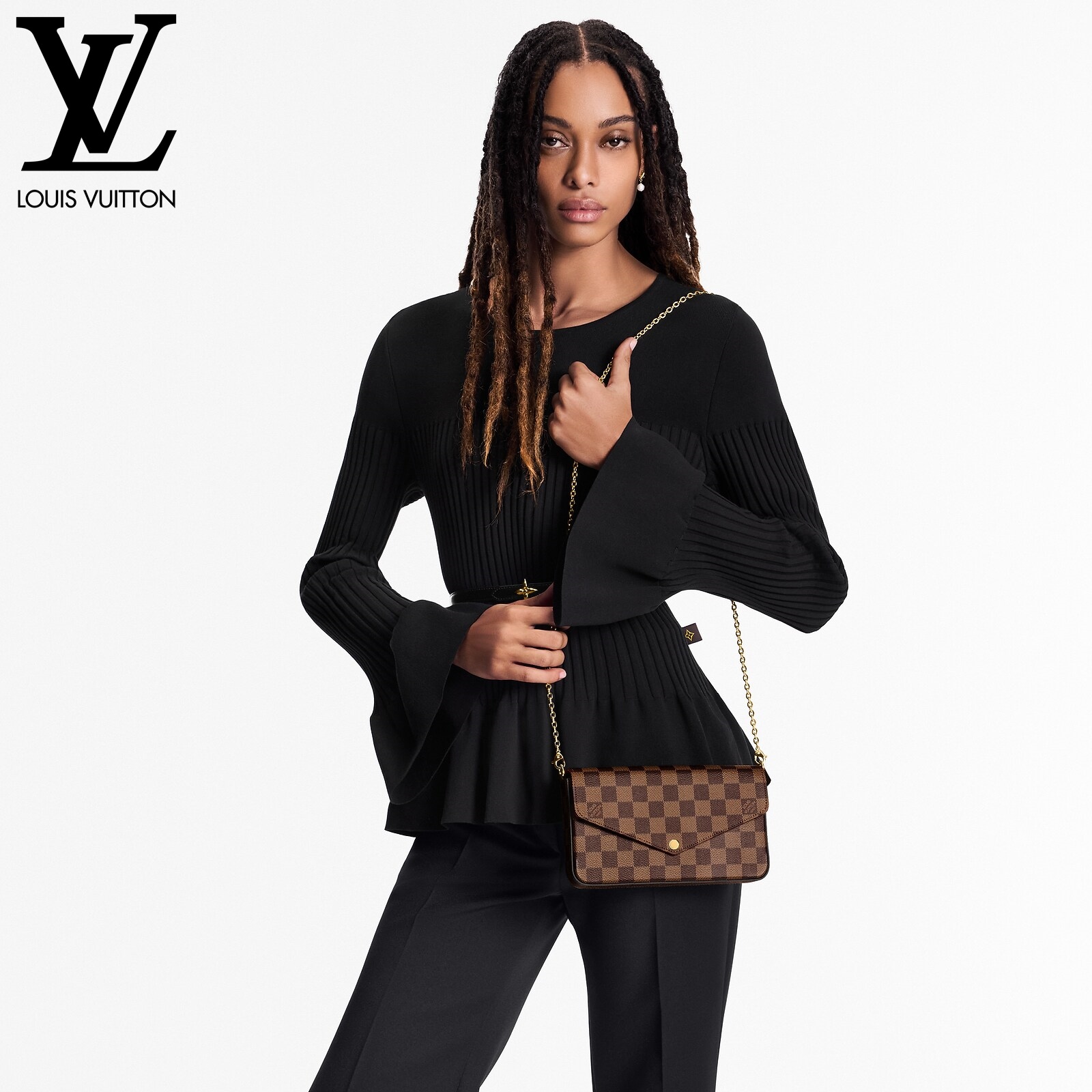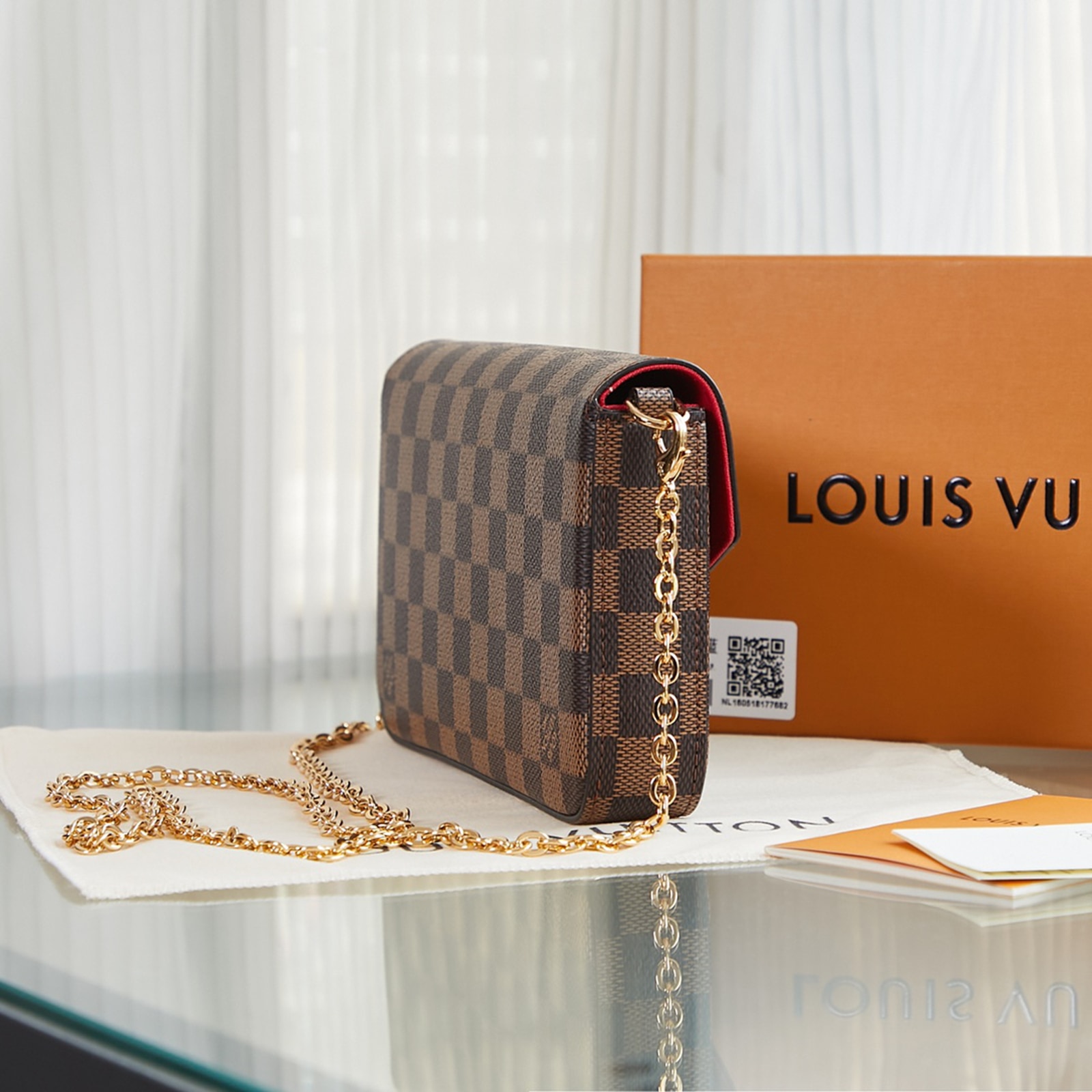 21 x 12 x 3 cm (幅 x 高さ x マチ) カラー:セリーズレッド 素材:ダミエ・エベヌ キャンバス、カウハイドレザー(皮革の種類:牛革) トリミング:素材:ダミエ・エベヌ キャンバス、カウハイドレザー(皮革の種類:牛革) ライニング:マイクロファイバー 金具(色:ゴールド) スナップボタン開閉式 大きなコンパートメント 取外し可能なファスナー式ポケット 8つのカードスロット付き取外し可能なフラットポケット 内フラットポケット 6.7インチのスマートフォン、ポルト カルト・LV チャーム、イヤホン、鍵、リップスティックなど収納可能 チェーン:取り外し可能 チェーンの頂点からバッグ上部までの長さ(最短):53.0 cm