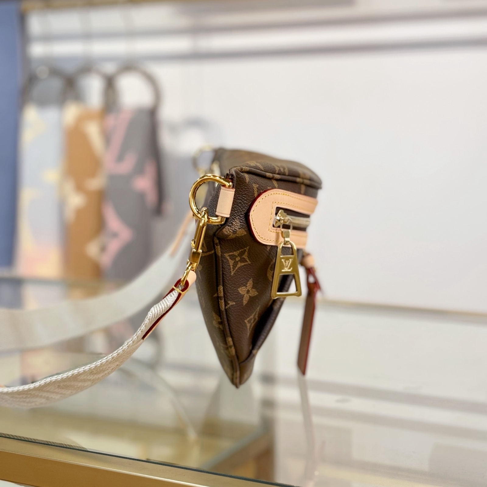 34.5 x 16 x 7.5 cm (幅 x 高さ x マチ) 素材:モノグラム・キャンバス トリミング:レザー(皮革の種類:牛革) ライニング:テキスタイル 金具(色:ゴールド) ファスナー開閉式のメインコンパートメント 背面にファスナー式ポケット Dリングに取外し可能なラゲージタグ スマートフォン、コンパクトウォレット、鍵、リップスティック、イヤホンなど収納可能 重さ:0.2 kg ストラップ:取り外し可能, 調整可能 ストラップの頂点からバッグ上部までの長さ(最短):34.0 cm ストラップの頂点からバッグ上部までの長さ(最長):47.0 cm