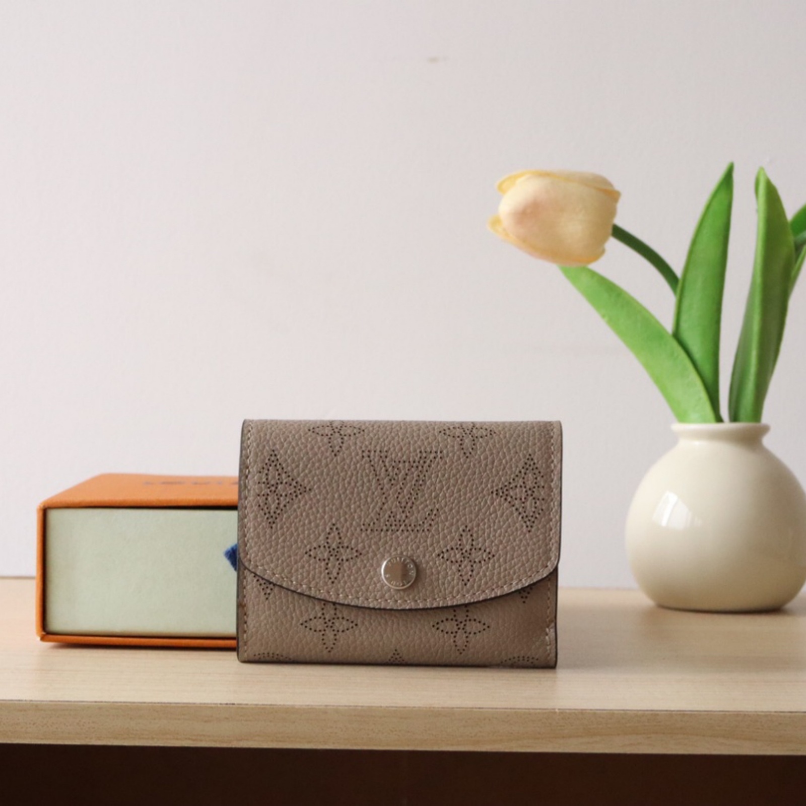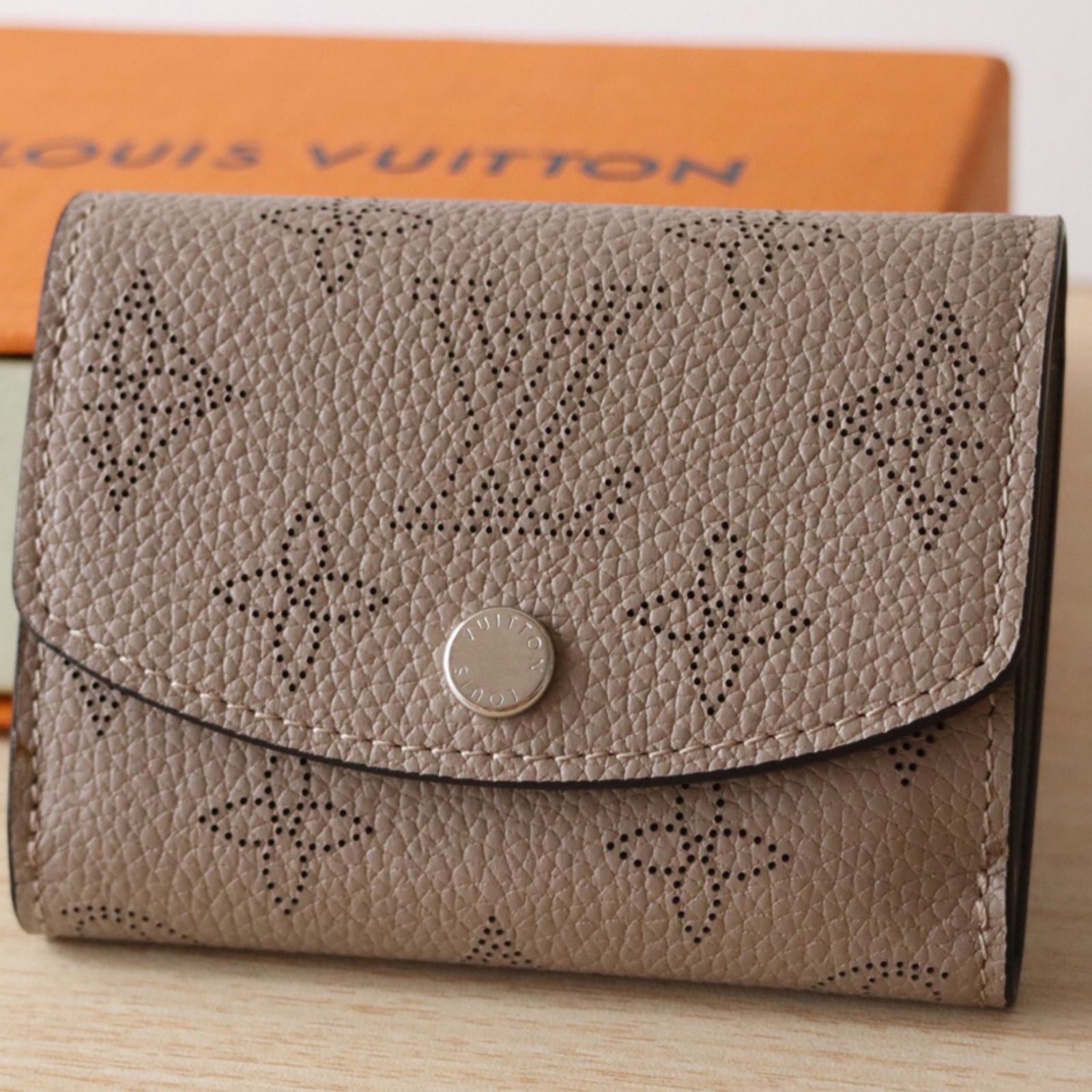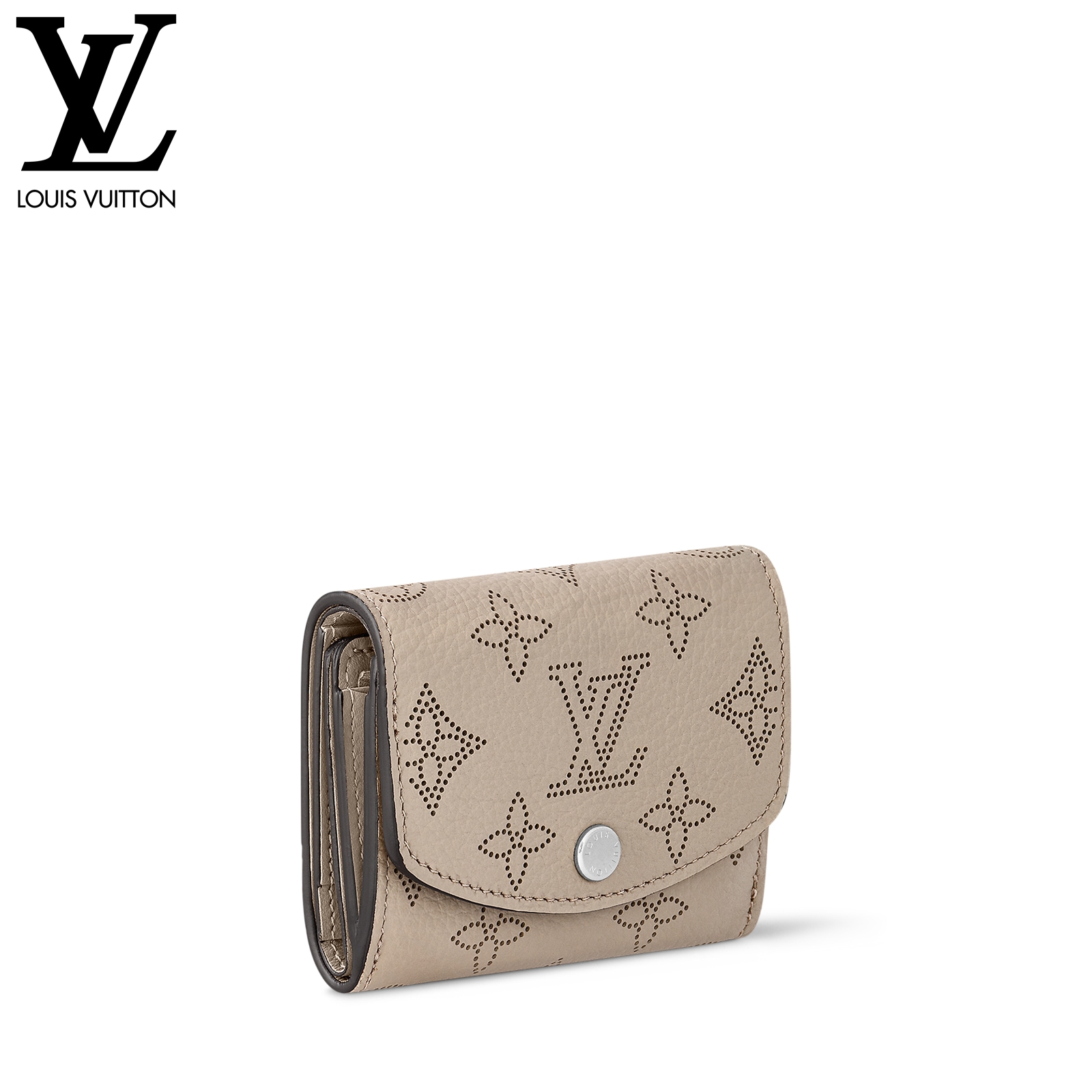 ルイ・ヴィトンを象徴するモノグラム・パターンのパーフォレーションが美しいマヒナ・レザーで仕立てた「ポルトフォイユ・イリス XS」。丸みを帯びたフラップに、刻印を施したシルバーカラーのスナップボタンをあしらった、小ぶりの財布です。コンパクトでありながら、紙幣、コイン、カードをすっきり収納できる内装も魅力。