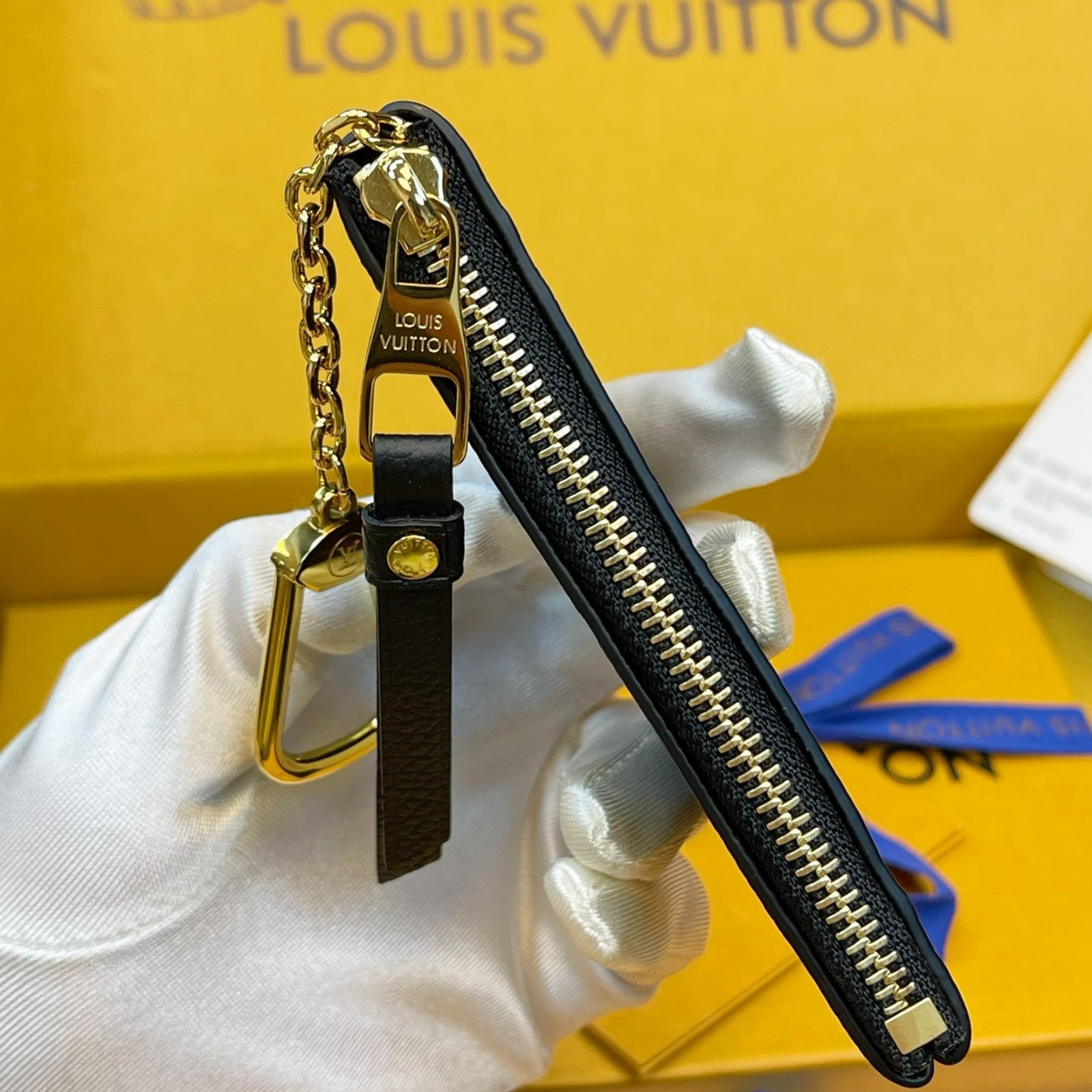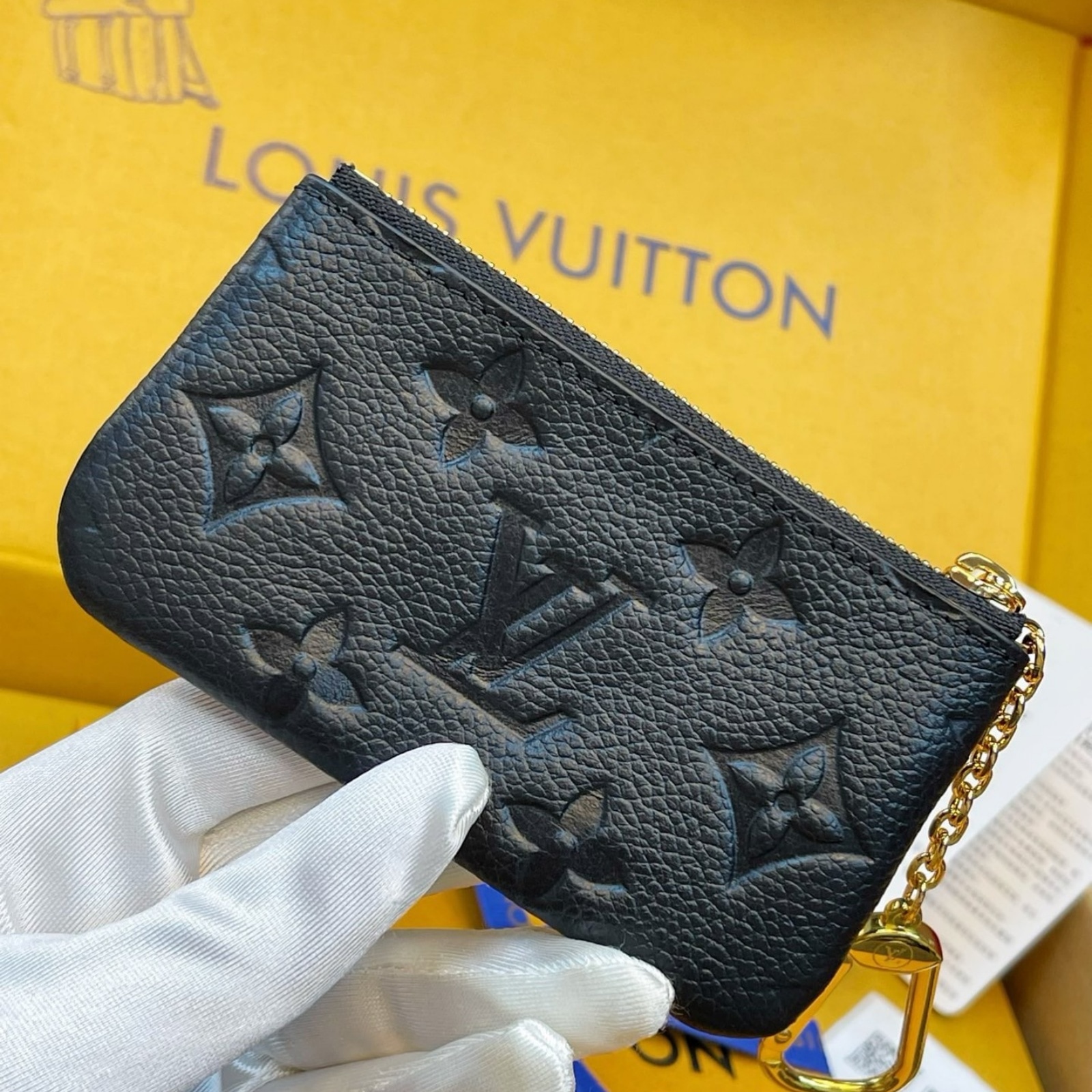 12 x 7 x 1.5 cm(幅 x 高さ x マチ)素材:モノグラム・アンプラント レザー(皮革の種類:牛革)ライニング:レザー(皮革の種類:牛革)金具(色:ゴールド)ファスナー開閉式キーリングフック付きチェーン