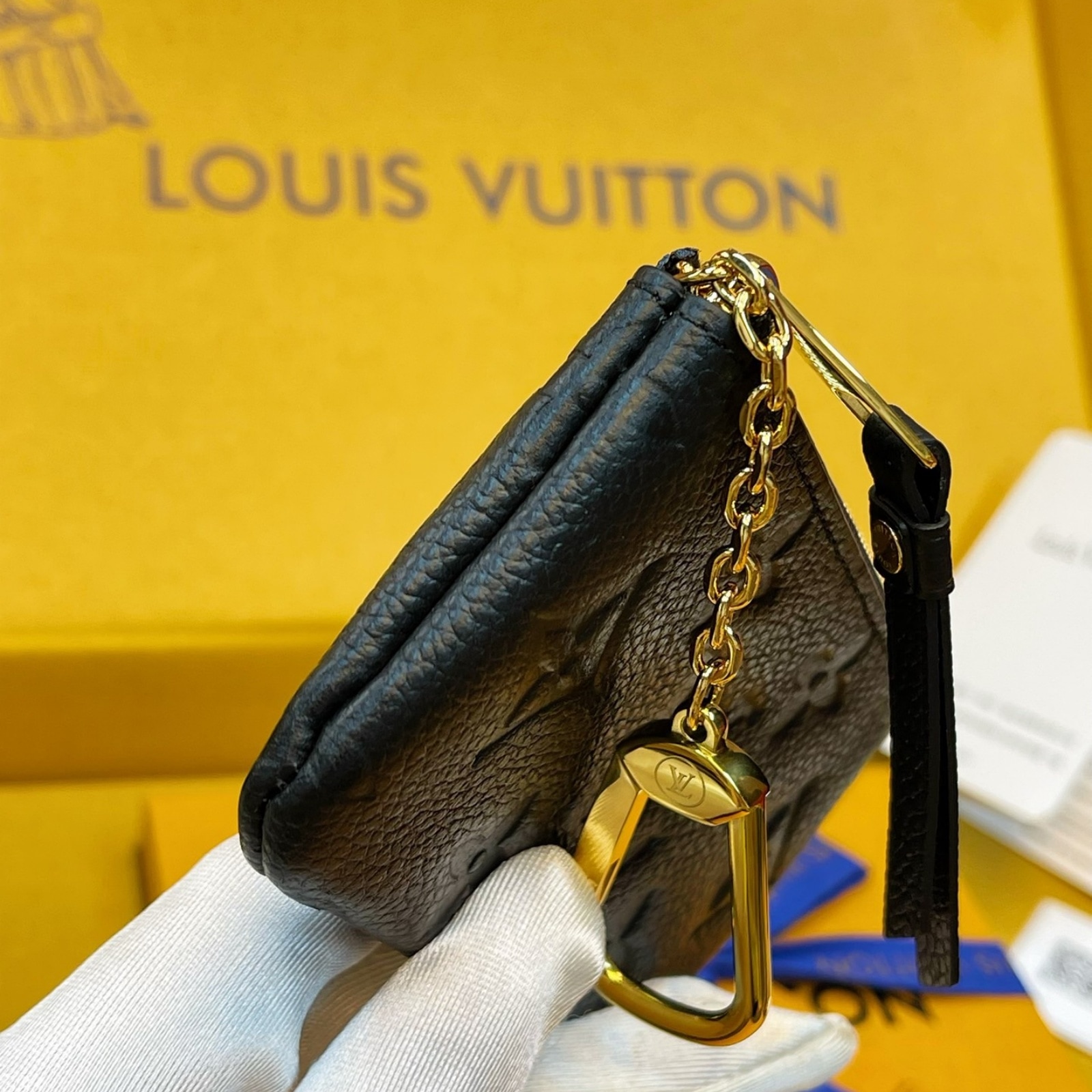ルイ・ヴィトンならではのモノグラム・パターンをエンボス加工した、しなやかなモノグラム・アンプラント レザーで仕立てた「ポシェット・クレ」。エレガンスと実用性を兼ね備えたアイテムです。キーホルダーとしてご使用いただけるだけでなく、安全なファスナー開閉式で、現金やカードも収納できます。バッグやベルトに取付けられるよう、フックとチェーンをあしらいました。