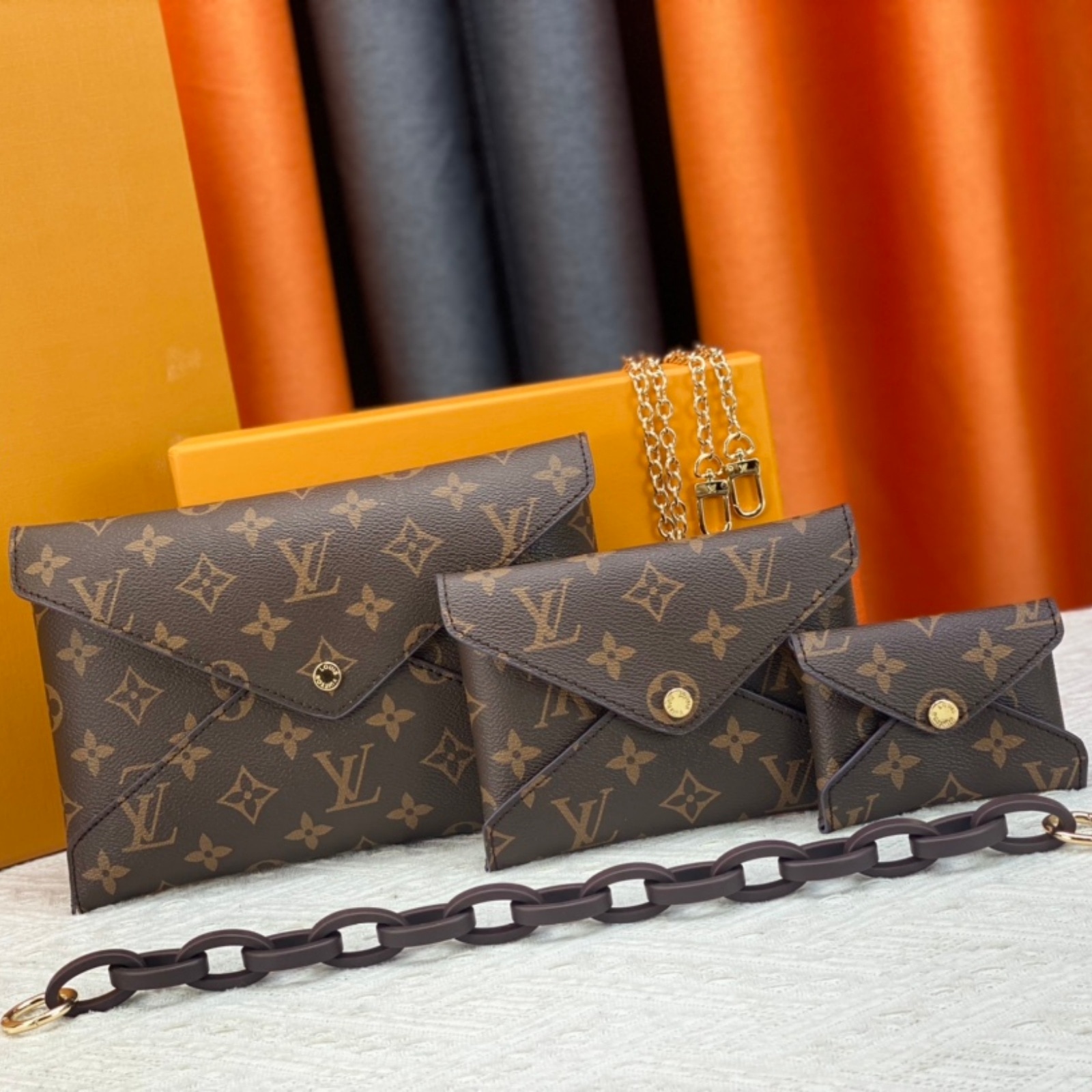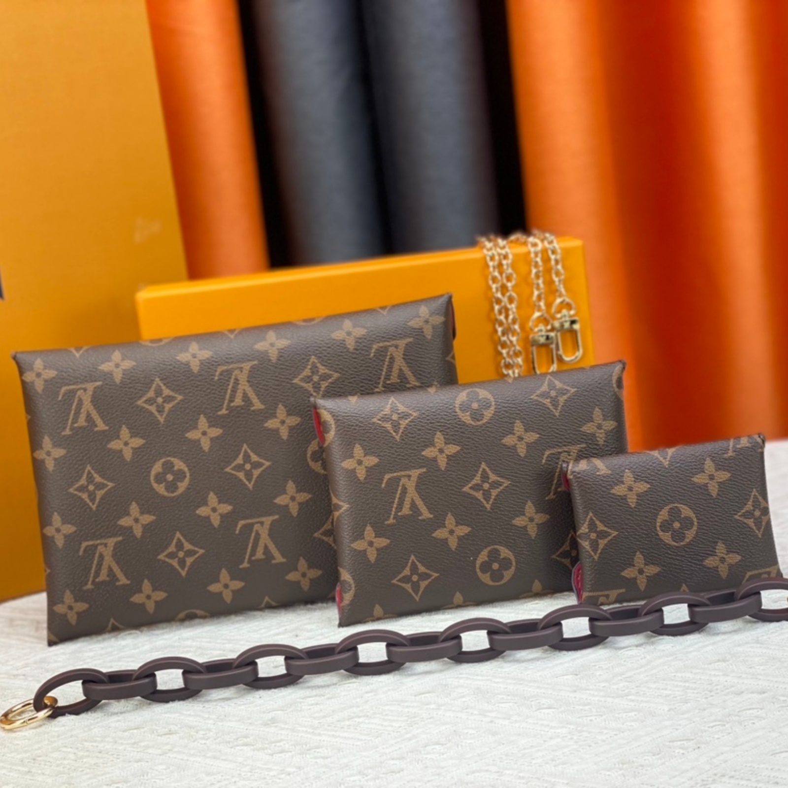 23 x 16.5 x 0.3 cm(幅 x 高さ x マチ)3つのポシェットがセットになっていますポシェット:大(サイズ:23 x 16.5 x 0.3 cm)ポシェット:中(サイズ:15.5 x 11.5 x 0.3 cm)ポシェット:小(サイズ:10 x 7 x 0.3 cm)素材:モノグラム・キャンバスライニング:レザー(皮革の種類:牛革)金具(色:ゴールド)