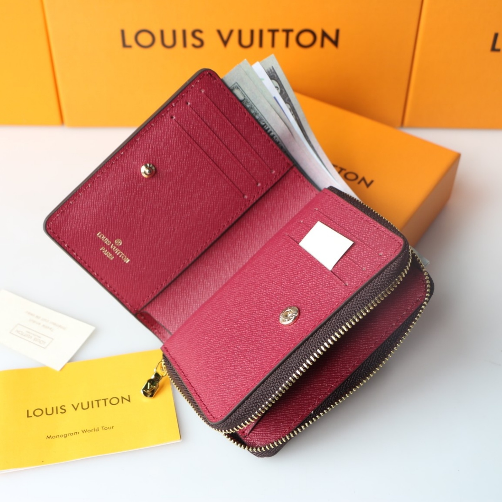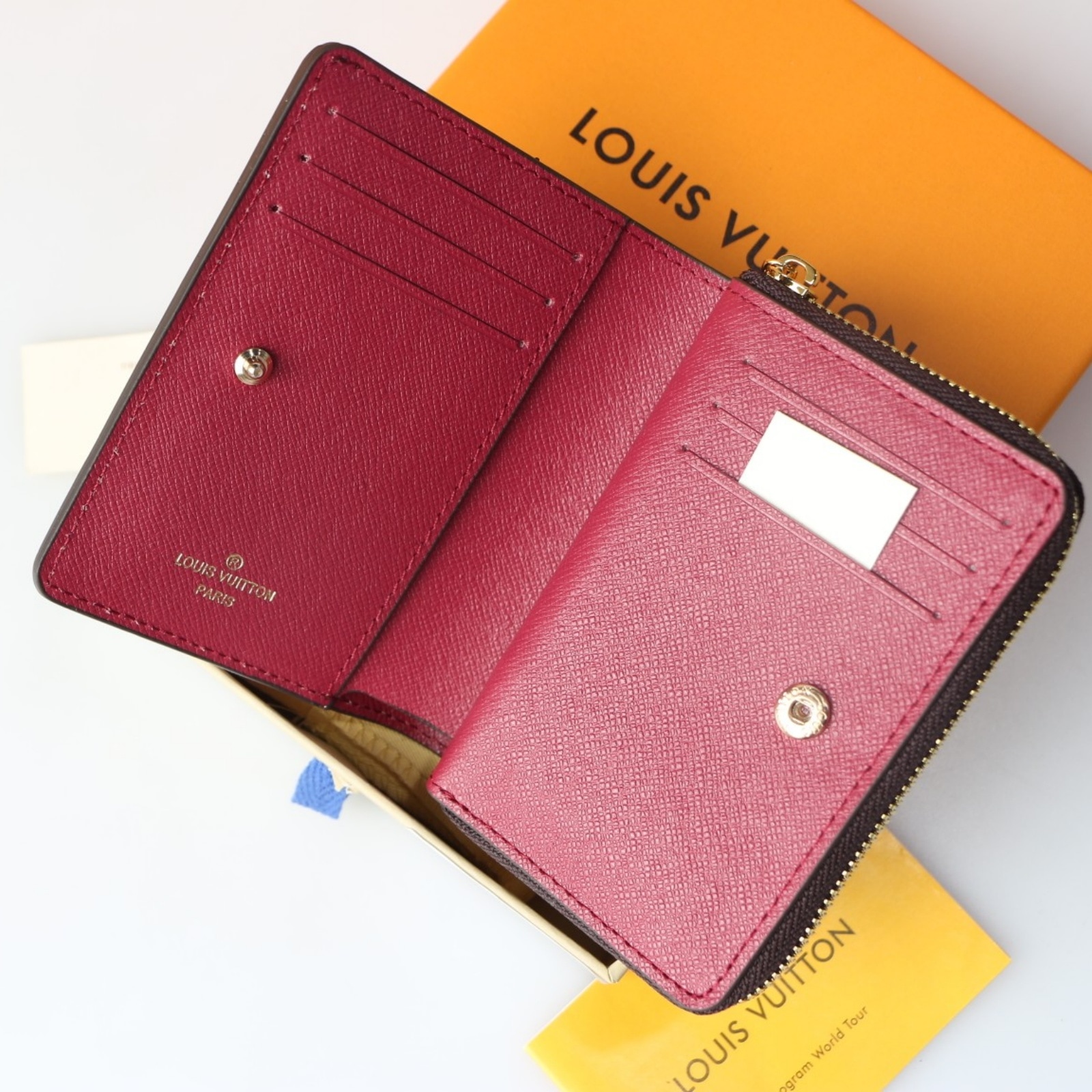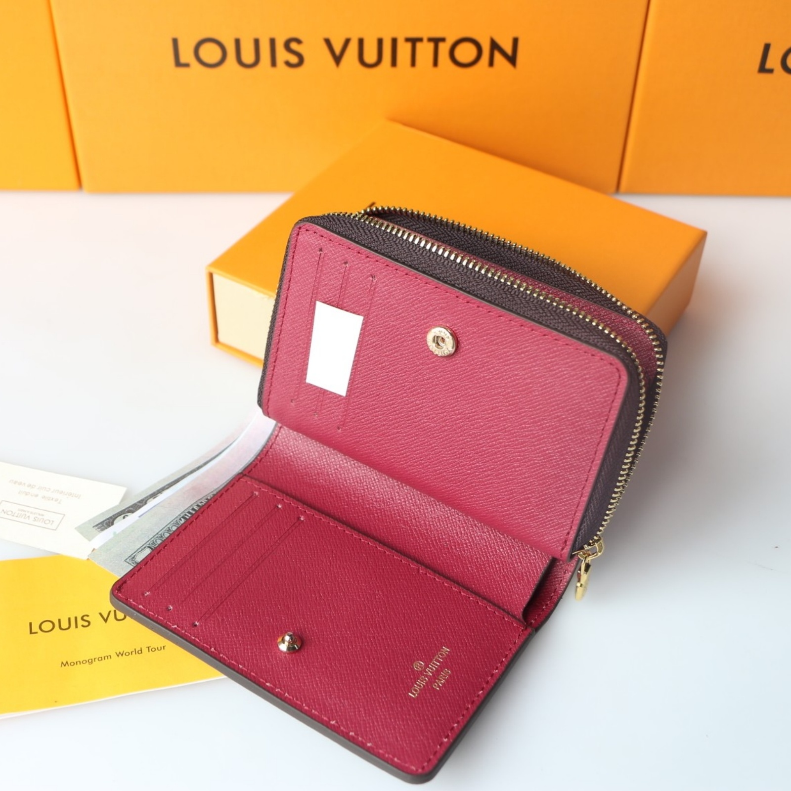 コンパクトなサイズと抜群の収納力を兼ね備えた、折畳み式のフレッシュな「ポルトフォイユ・ルー」。メゾンを象徴するモノグラム・キャンバスに柔らかでカラフルなレザーでアクセントを効かせた、モダンなラインとスマートな構造が特徴です。日々の必需品をすべて収納できる複数のカードスロットやポケットなどを配し、あらゆるバッグにすっきり入るデザインに仕上げました。