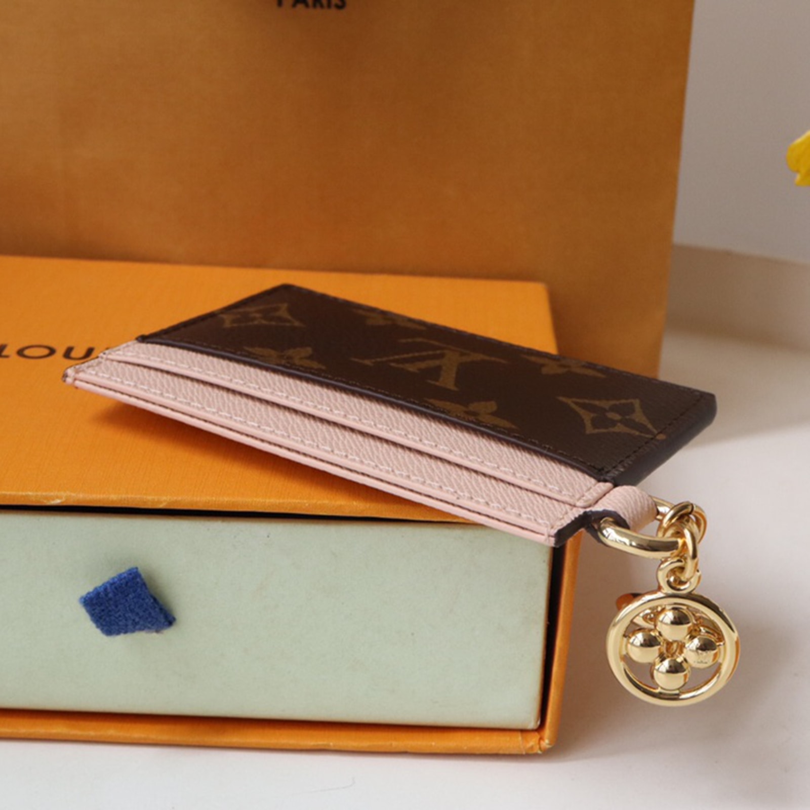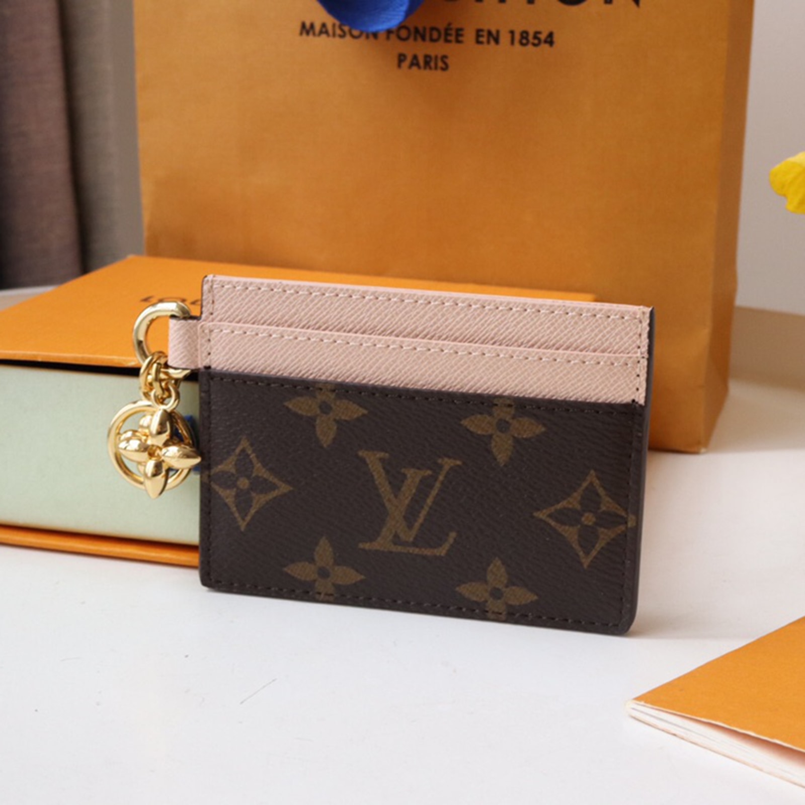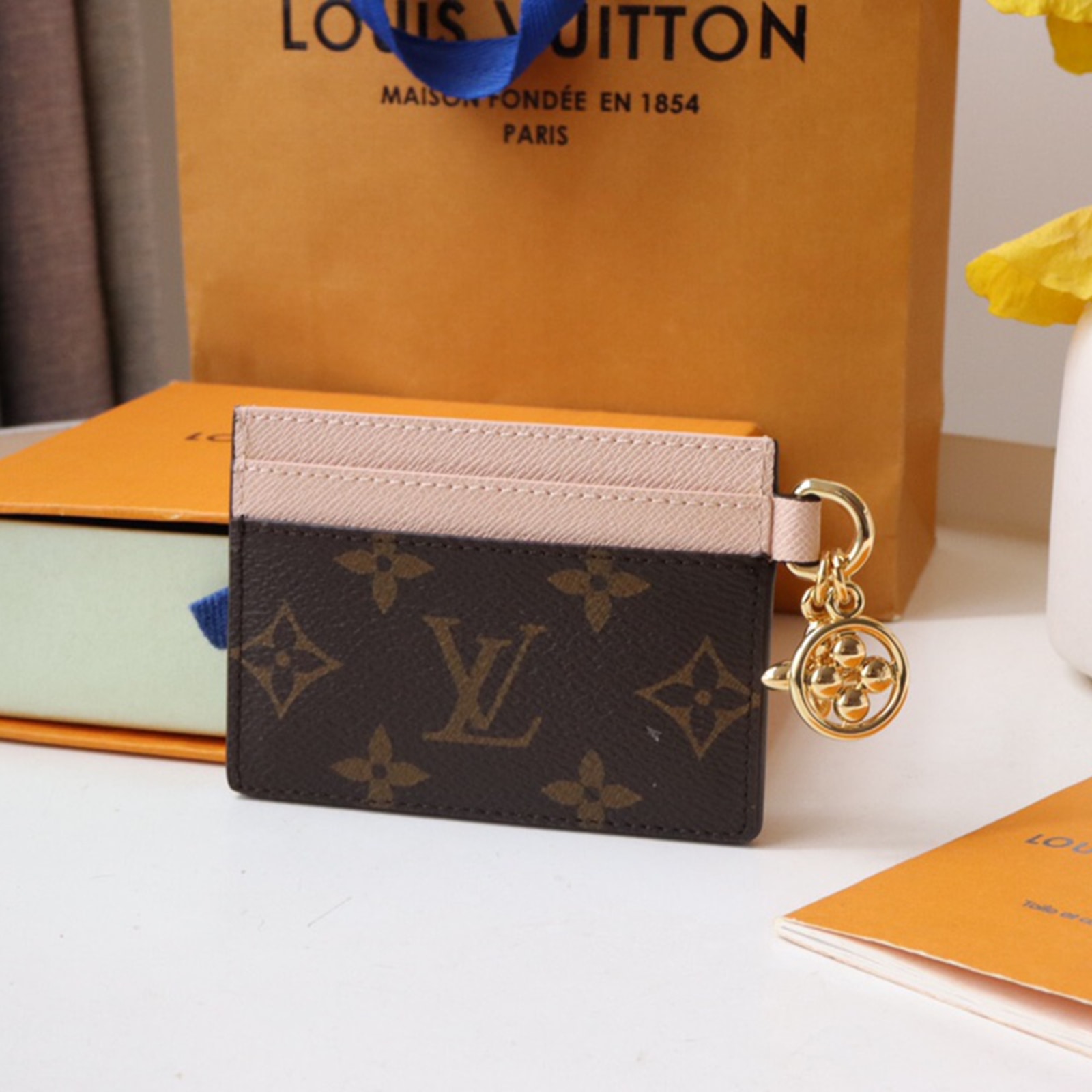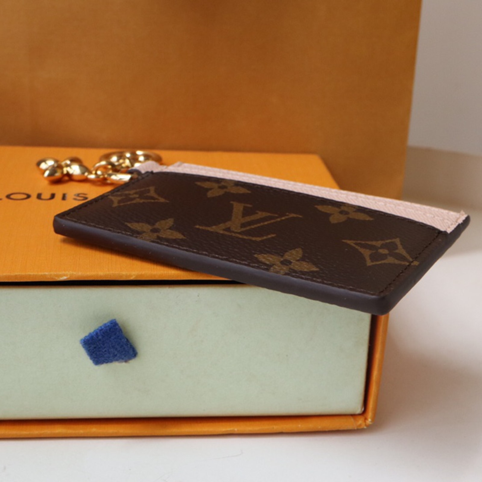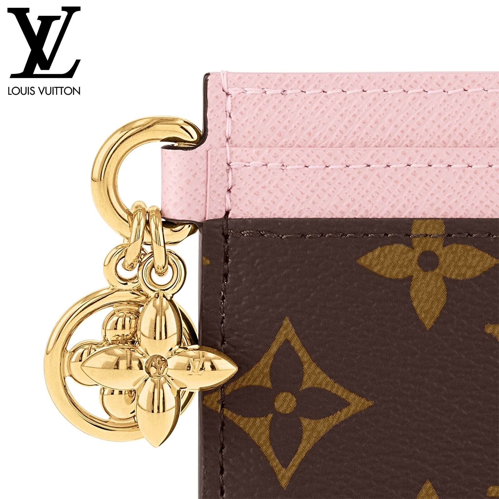 モノグラム・キャンバスとカウハイドレザーで仕立てた、ギフトにもぴったりの「ポルト カルト・LV チャーム」。ゴールドカラーのモノグラム・フラワー モチーフのチャームを2つあしらいました。各サイドにカードスロットを2つずつ、センターには大ぶりのコンパートメントを1つ、合計5つのカードスロットを備えた、巧みなデザインが光ります。