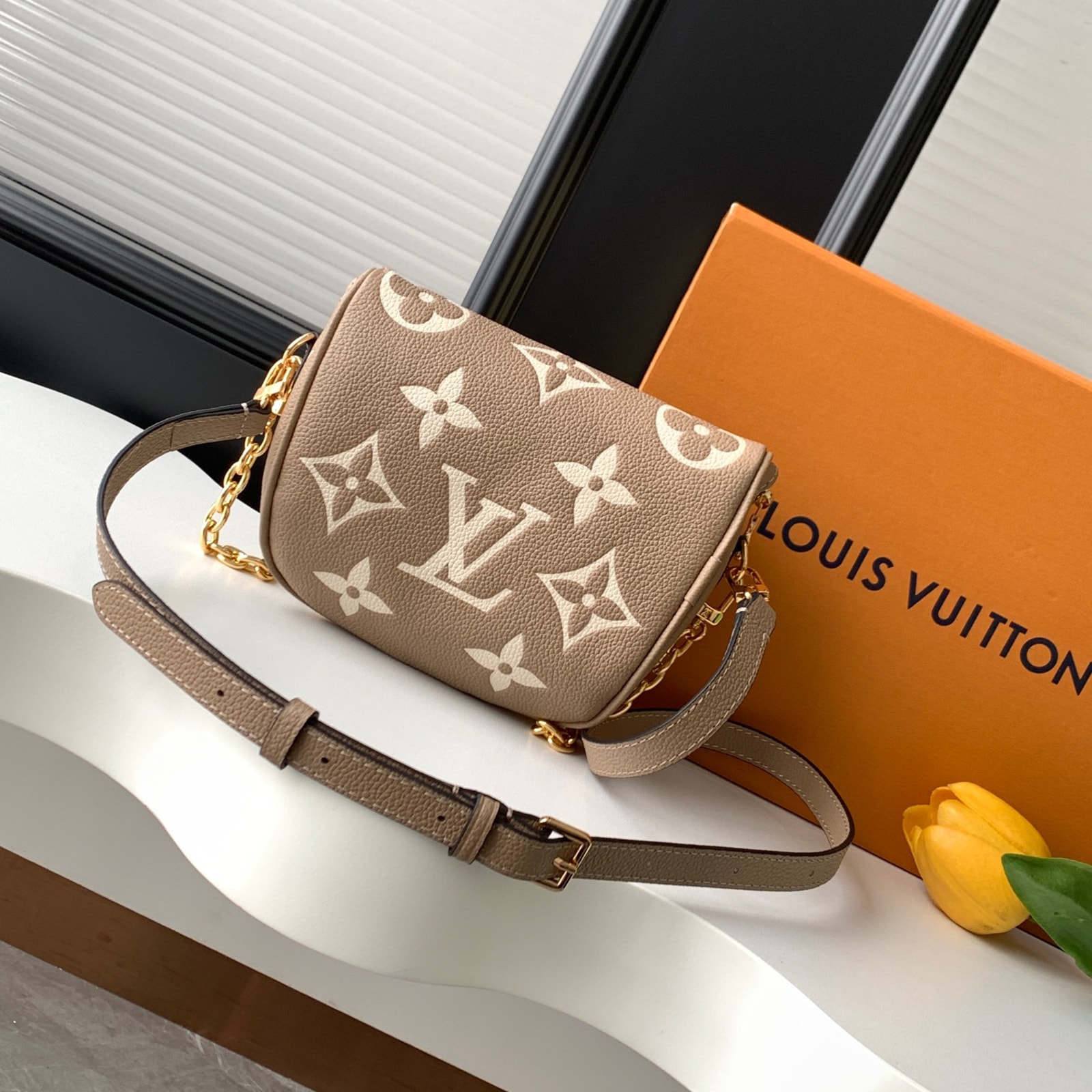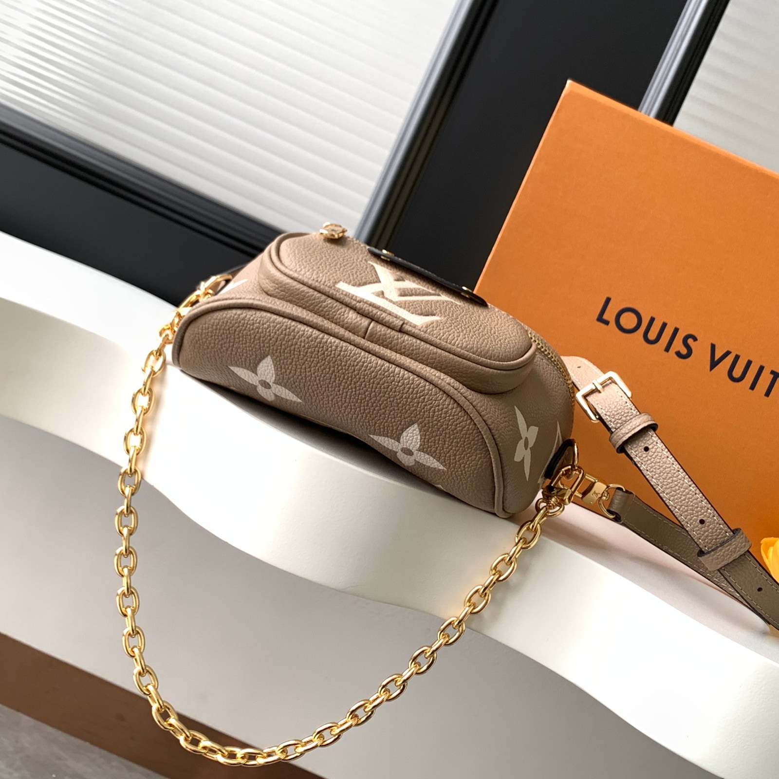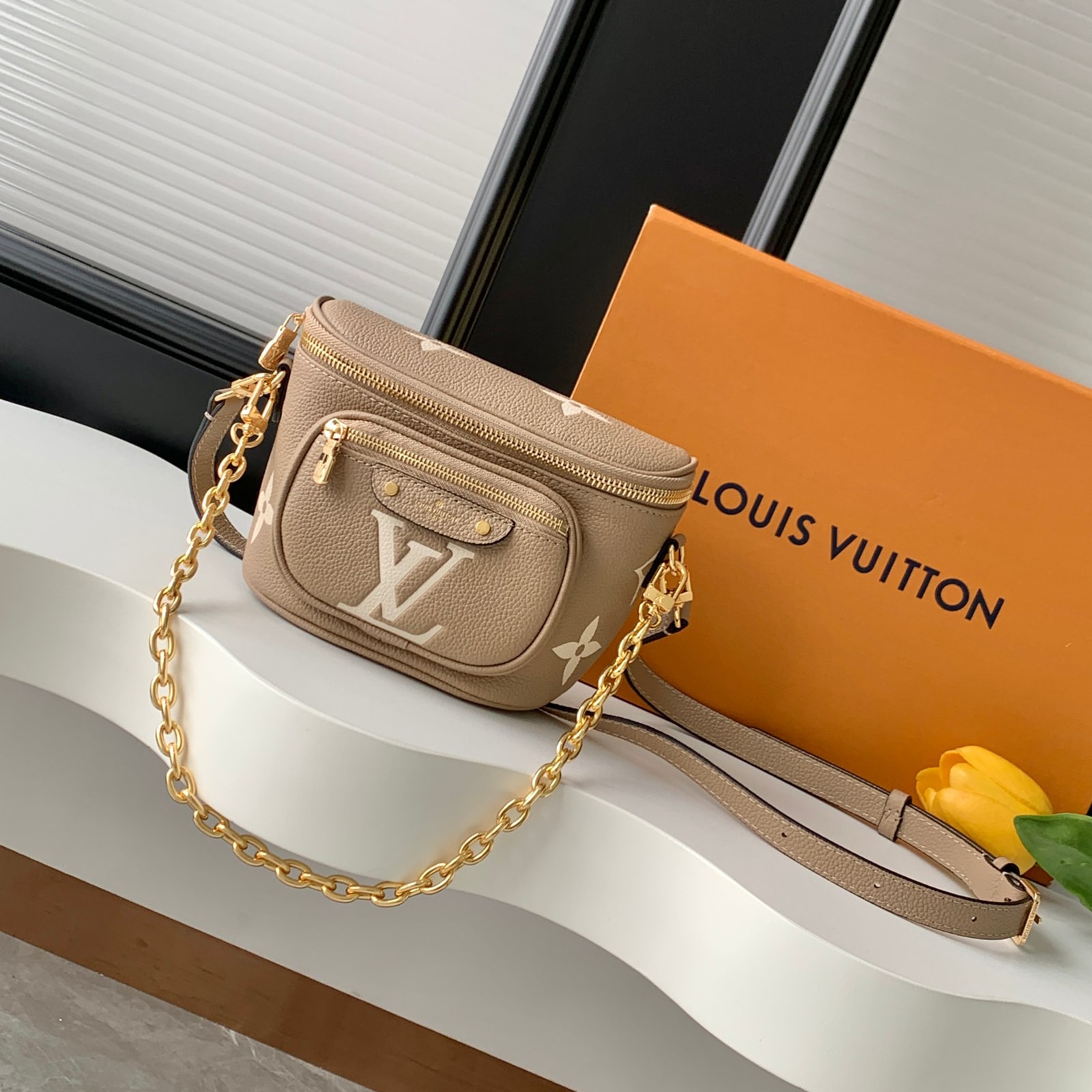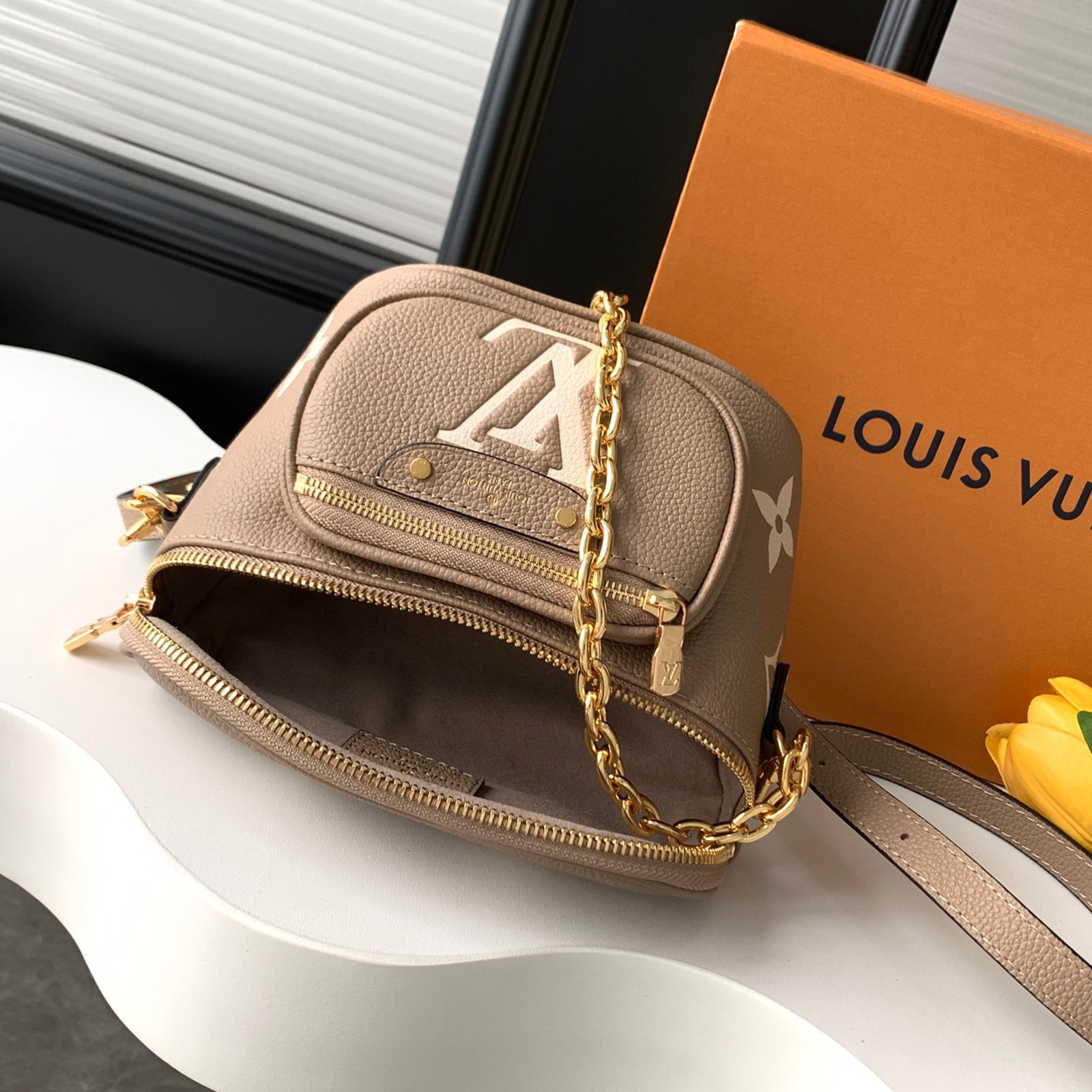 17 x 12 x 9.5 cm (幅 x 高さ x マチ) カラー:トゥルトレールベージュ、クリーム 素材:エンボス加工を施したモノグラム・アンプラント グレインカウハイドレザー(皮革の種類:牛革) トリミング:カウハイドレザー(皮革の種類:牛革) ライニング:マイクロファイバー 金具(色:ゴールド) ファスナー開閉式 ファスナー式フロントポケット 6.7インチのスマートフォン、ポルトモネ・ロザリ、サングラス、イヤホン、鍵、リップスティックなど収納可能 ストラップ:取り外し可能, 調整可能 ストラップの頂点からバッグ上部までの長さ(最短):32.0 cm ストラップの頂点からバッグ上部までの長さ(最長):44.0 cm チェーン:取り外し可能 チェーンの頂点からバッグ上部までの長さ(最短):20.0 cm