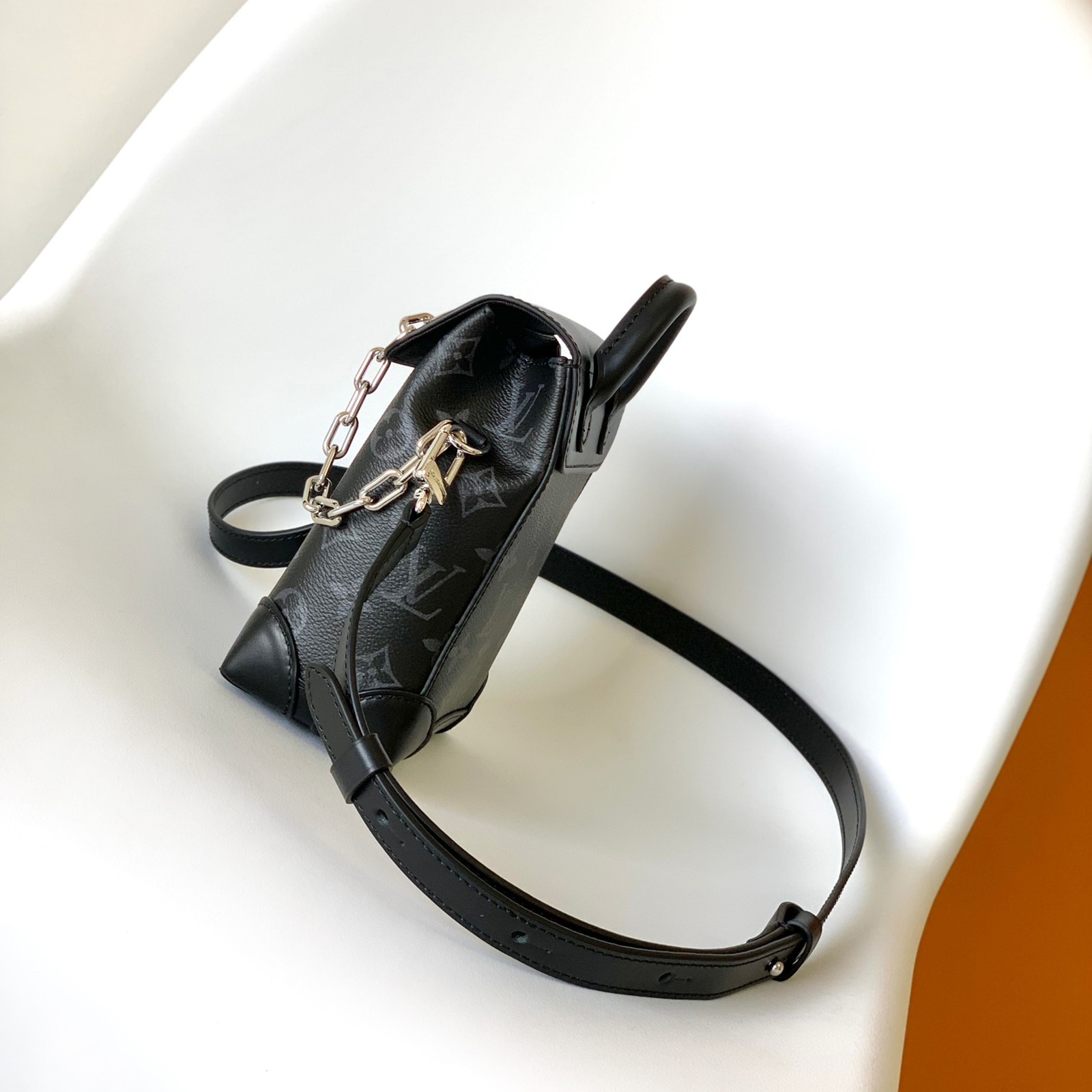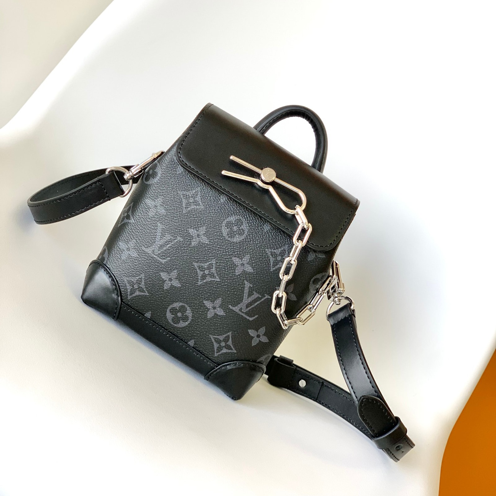 メゾンの「スティーマー・バッグ」をミニチュアサイズにアレンジした「ナノ・スチーマー」。モノグラム・エクリプス キャンバスで仕立てたボディに、補強を施したコーナー部分やチェーン & ピンの留め具といったオリジナルデザインと同じディテールが余すことなく配されています。さまざまな持ち方を可能にする取外し & 調節可能なストラップとトップハンドル付き。