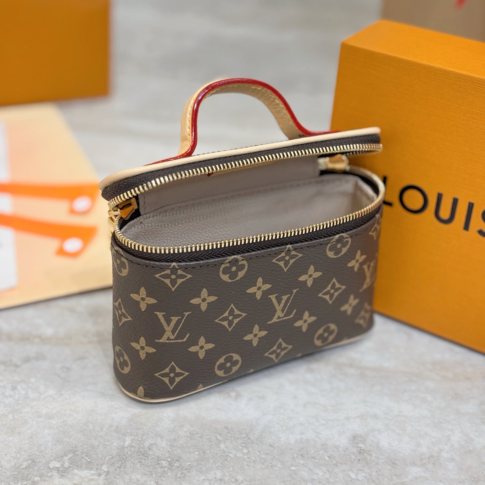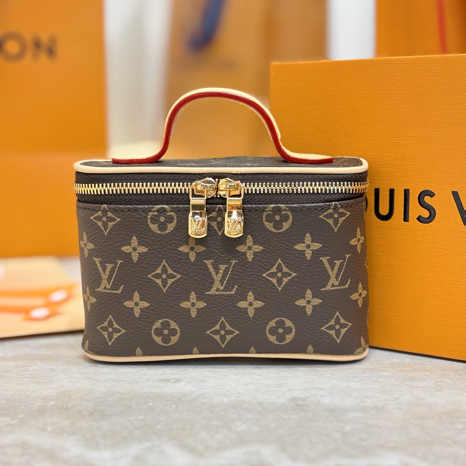 歴史あるヴァニティケース「ニース」を再解釈した「ニース ビューティー」。5本のリップスティックが収納できるよう巧みにデザインされたコンパクトな一品です。ダブルファスナーの開口部やヌメ革のハンドル、アイコニックなモノグラム・キャンバスといったメゾンならではのシグネチャーを配し、内装にはエレガントなヴィトニット・キャンバスをあしらいました。あらゆるバッグやスーツケースにエフォートレスに収まるサイズです。 ※実際の製品内装が画像と一部仕様が異なります。予めご了承ください。