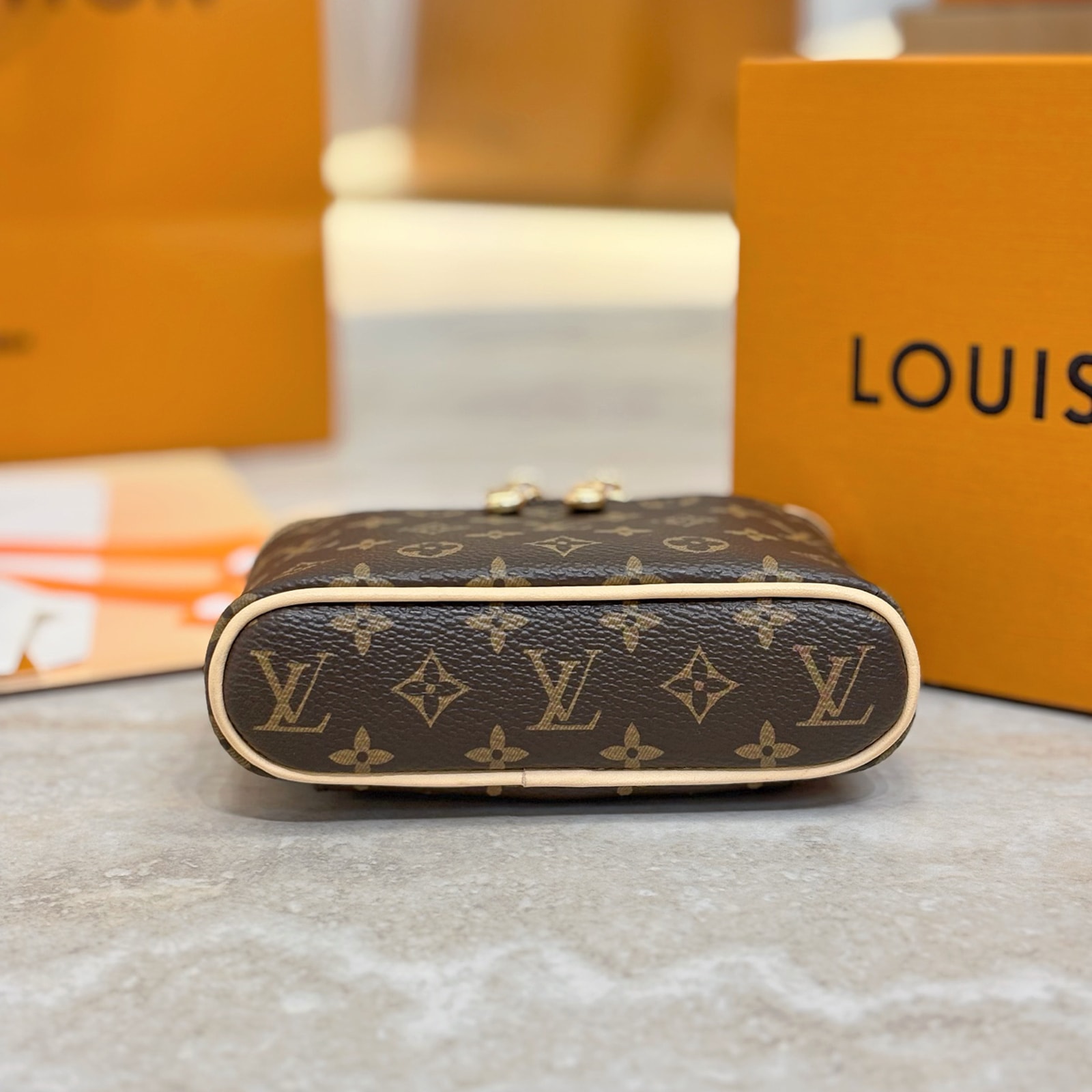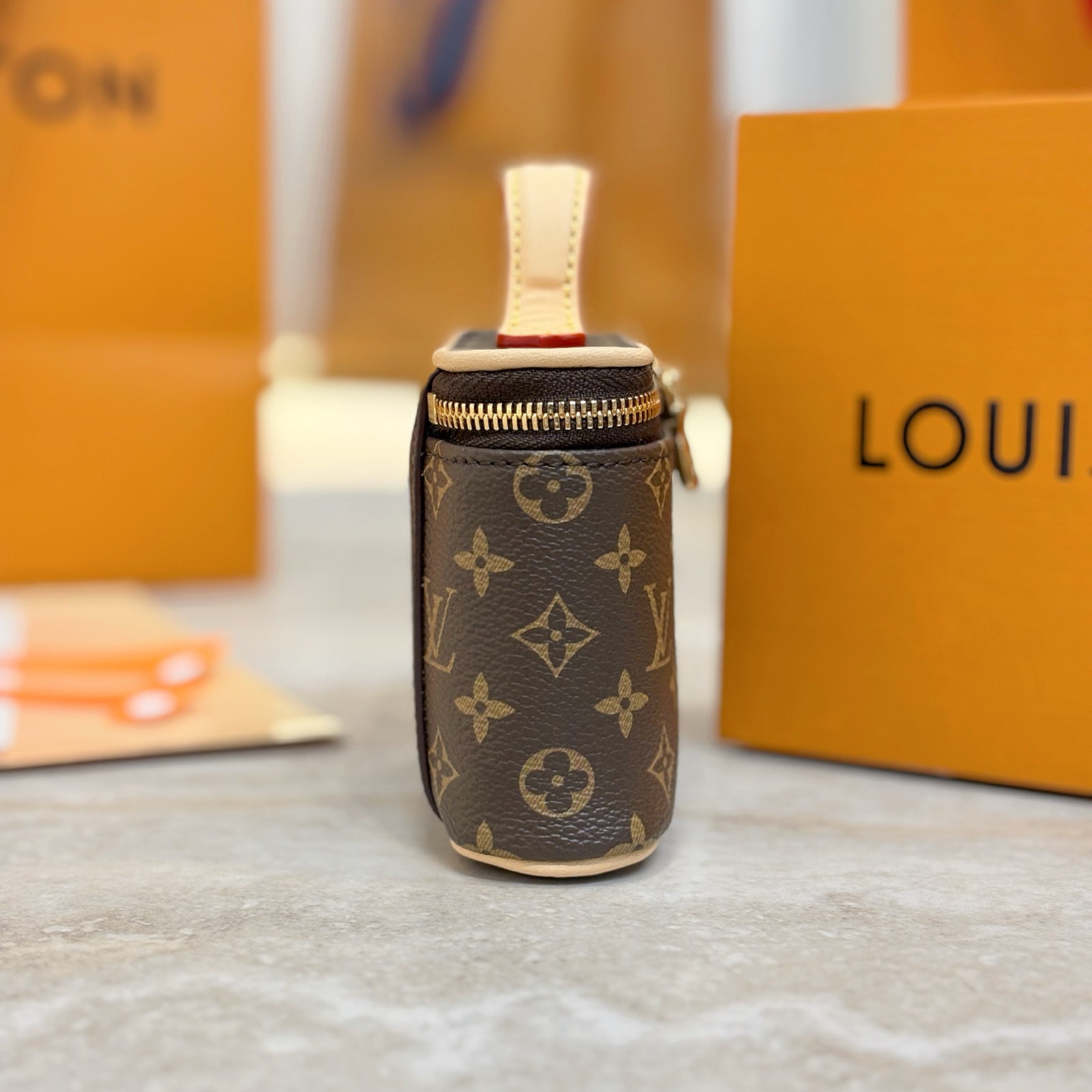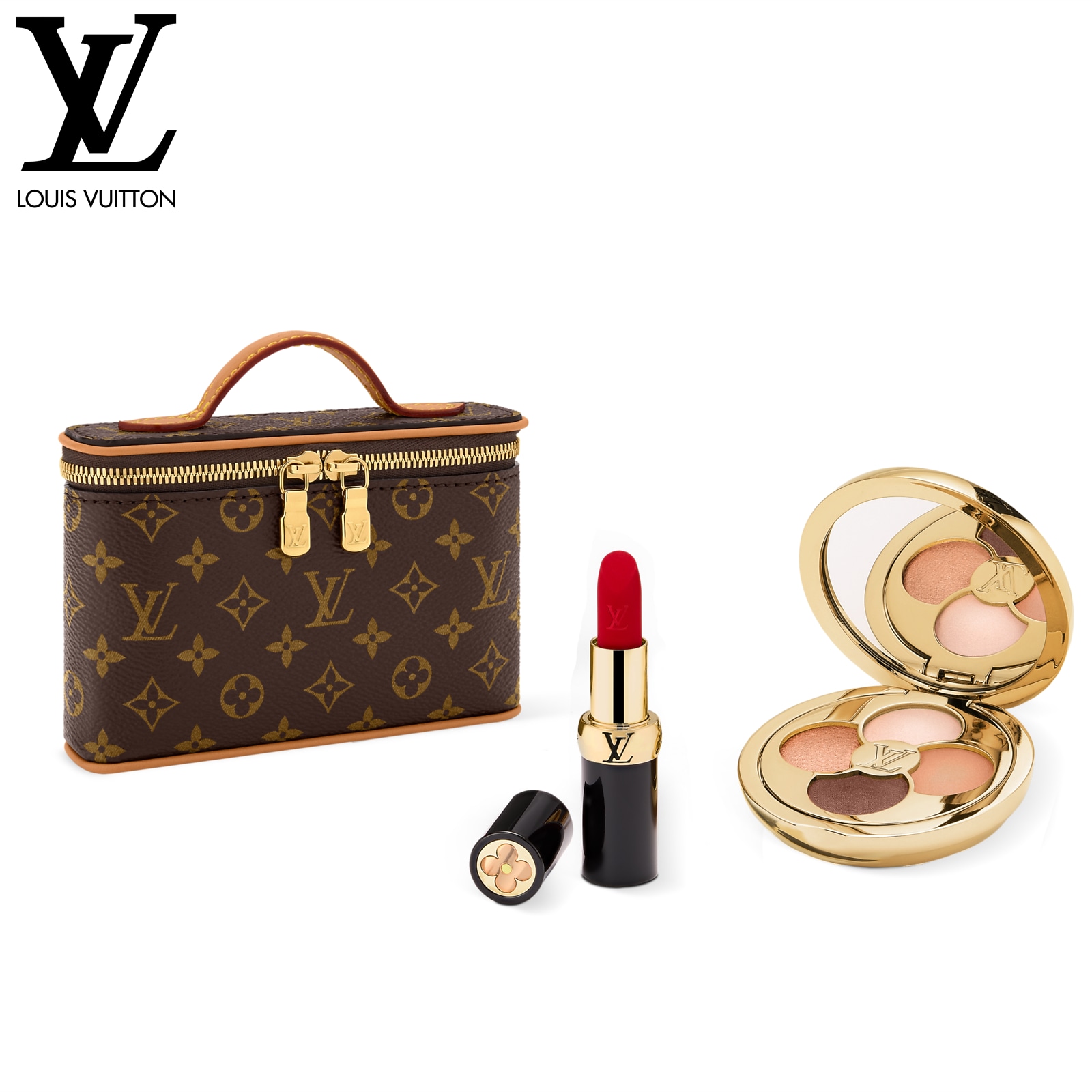 13.5 x 11.5 x 3.5 cm(幅 x 高さ x マチ)素材:モノグラム・キャンバストリミング:カウハイドレザー(皮革の種類:牛革)ライニング:マイクロファイバー金具(色:ゴールド)ダブルファスナー開閉式最大5本のリップ、もしくは1つのアイシャドウ パレット、1本のリップ、1本のリップ レフィルが収納可能ビューティ製品は別売りですハンドル:シングル