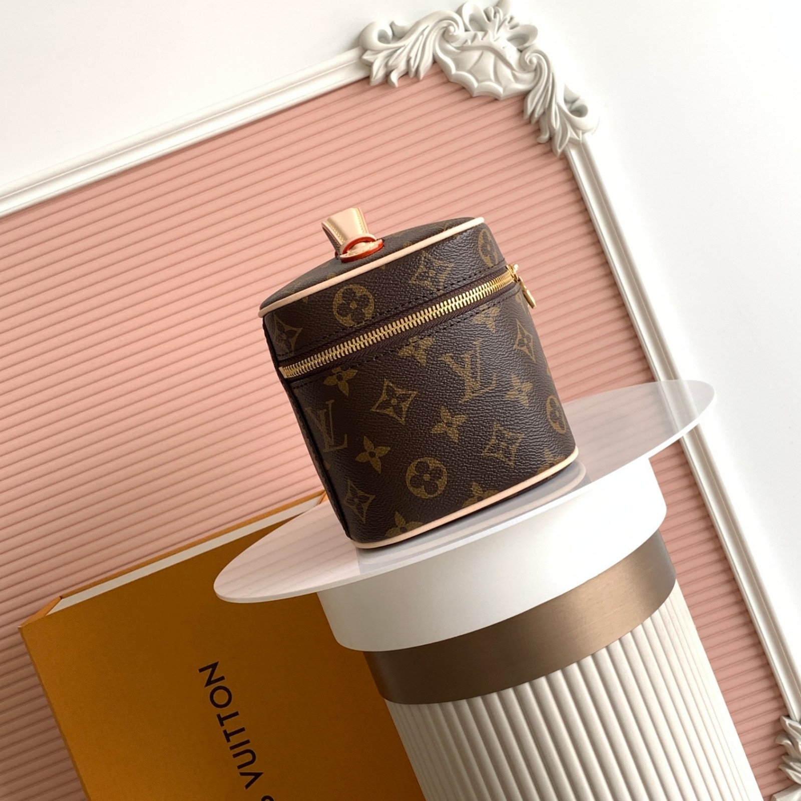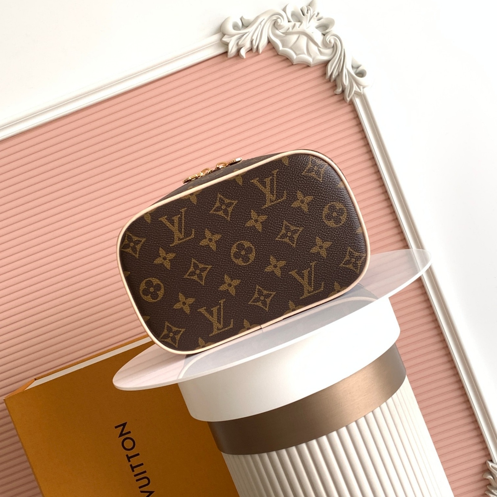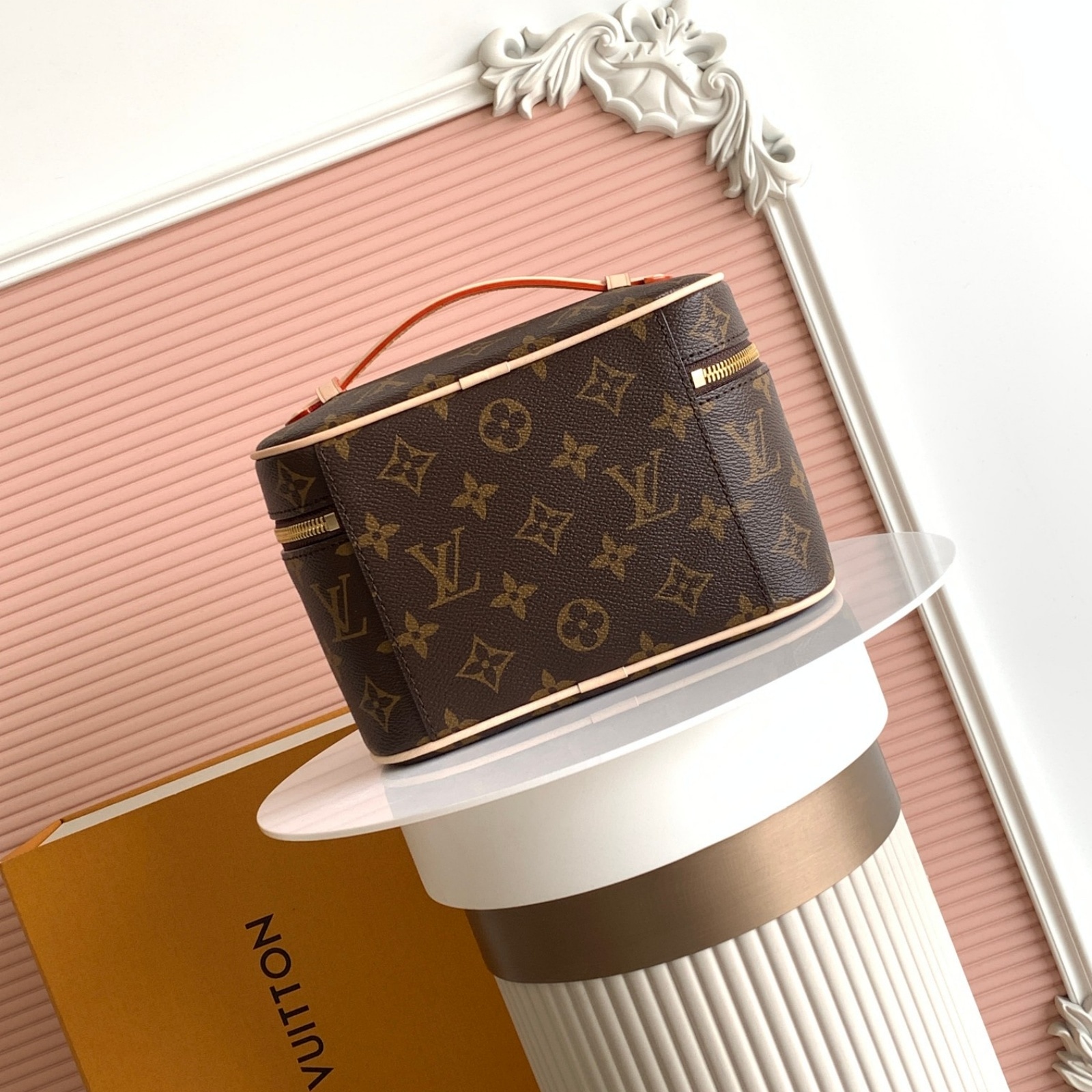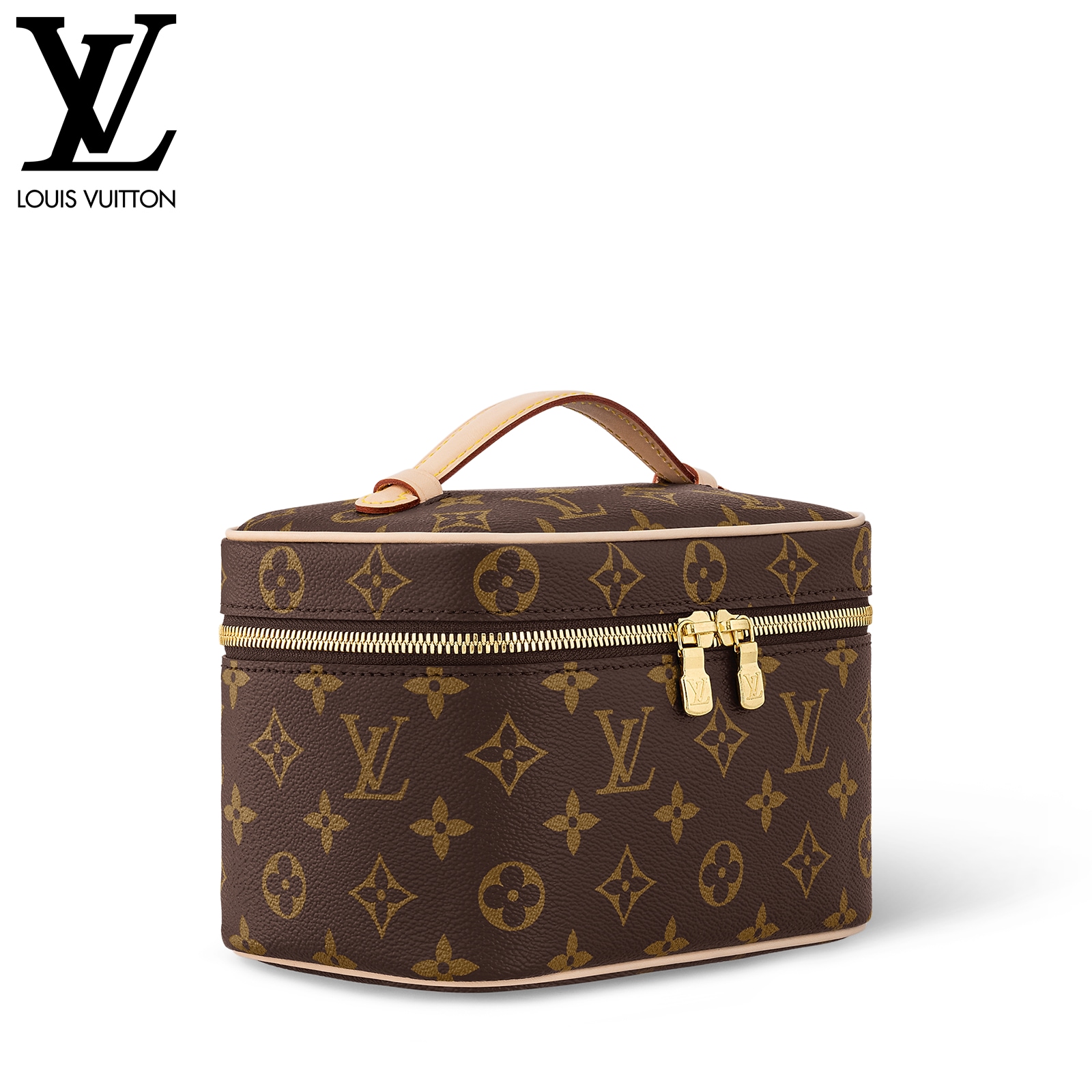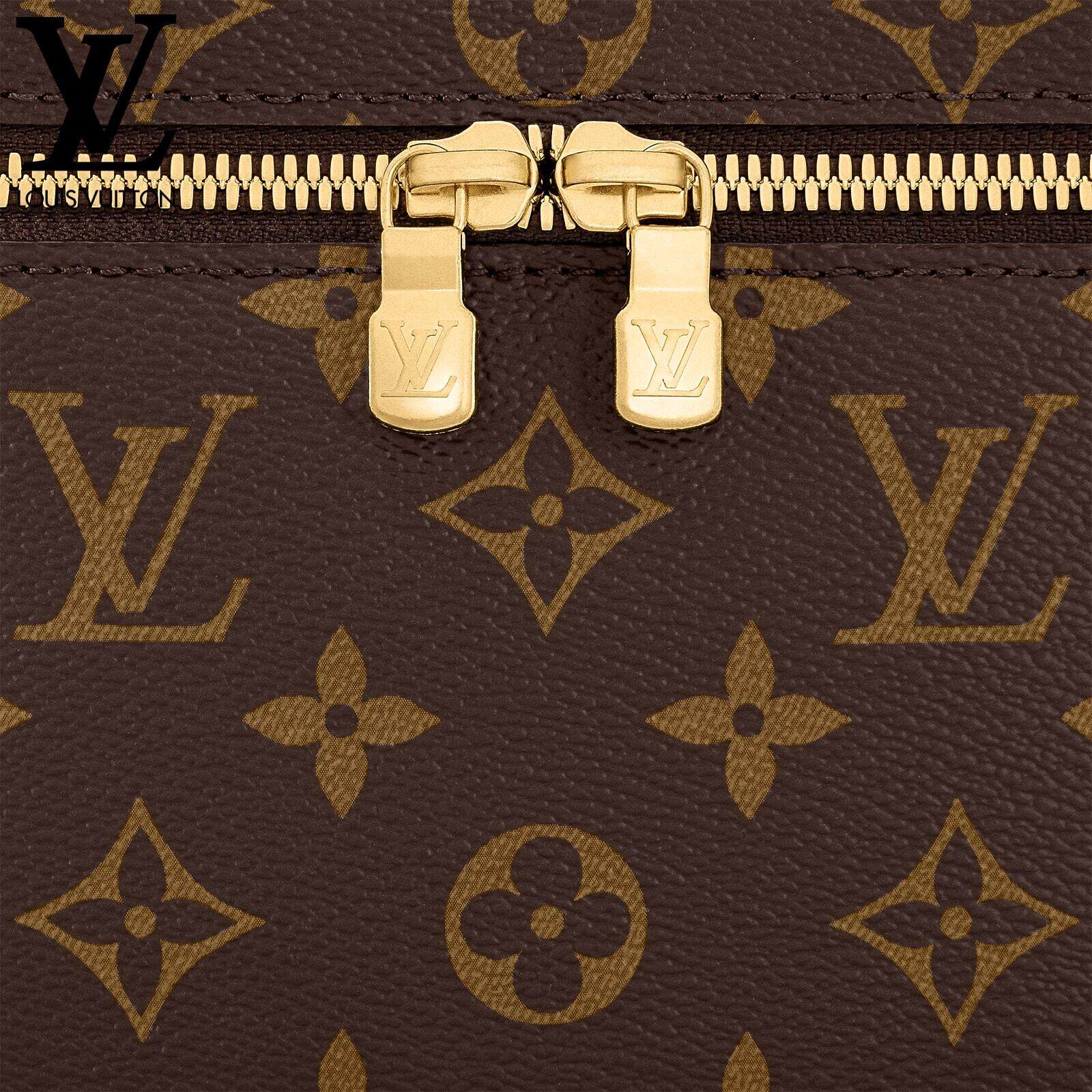 アイコニックなモノグラム・キャンバスを使用し、旅行鞄やスーツケースにすっきり収まるサイズに仕上げたトラベルアクセサリー「ニース・ミニ」。しなやかでコンパクトなデザインのアイテムは、フラットになるレザーハンドルでスペースを取らず、内側には化粧品やビューティーグッズをたっぷり収納できます。トップフラップはワイドに開いて中身を確認しやすいダブルジップ開閉式。LVの刻印を施したメタルのファスナー引き手をあしらいました。