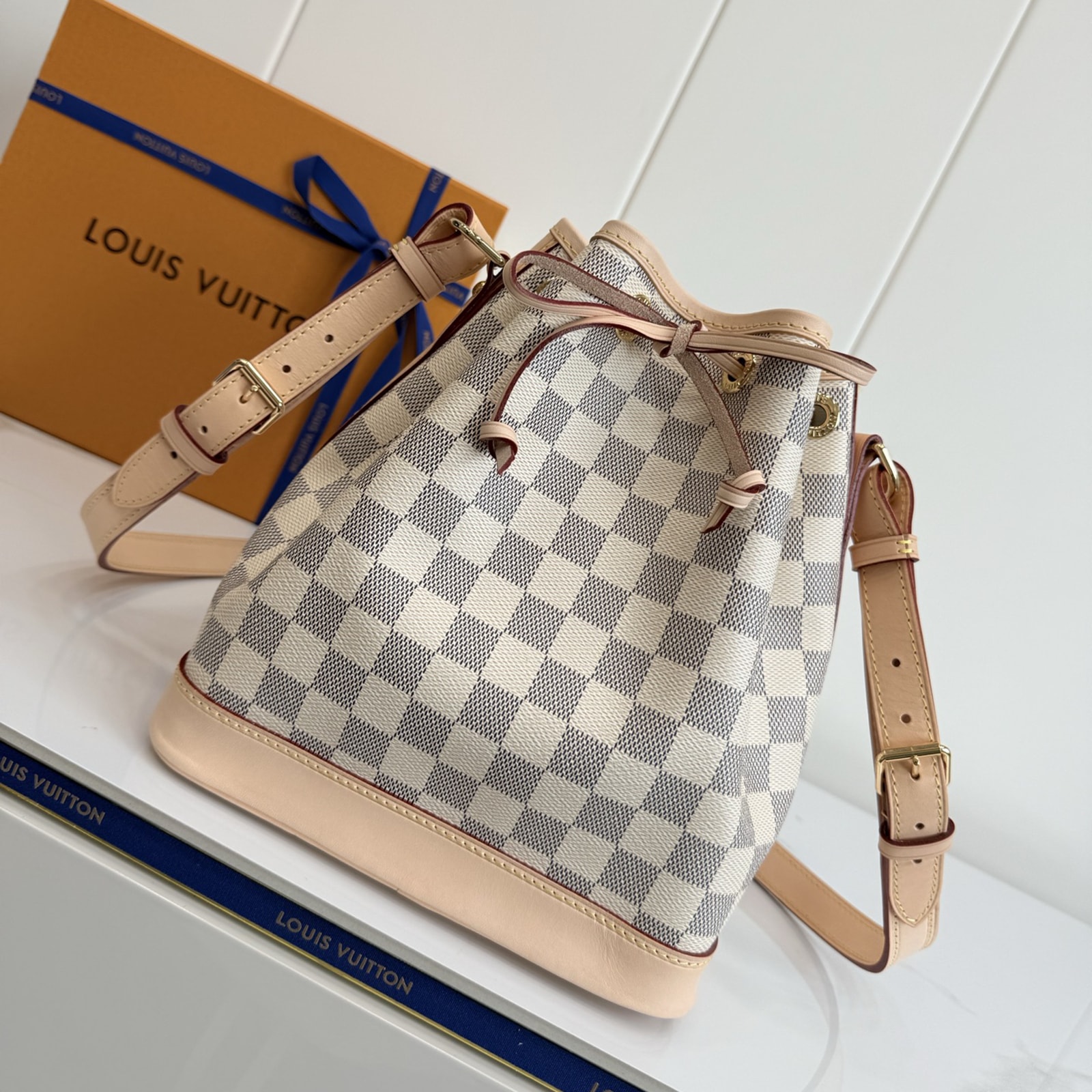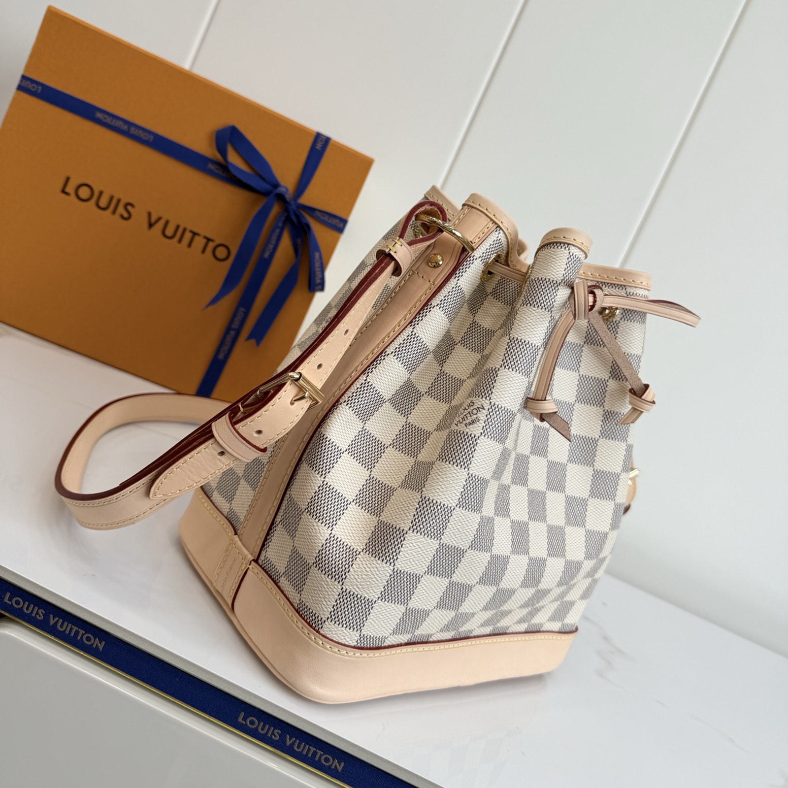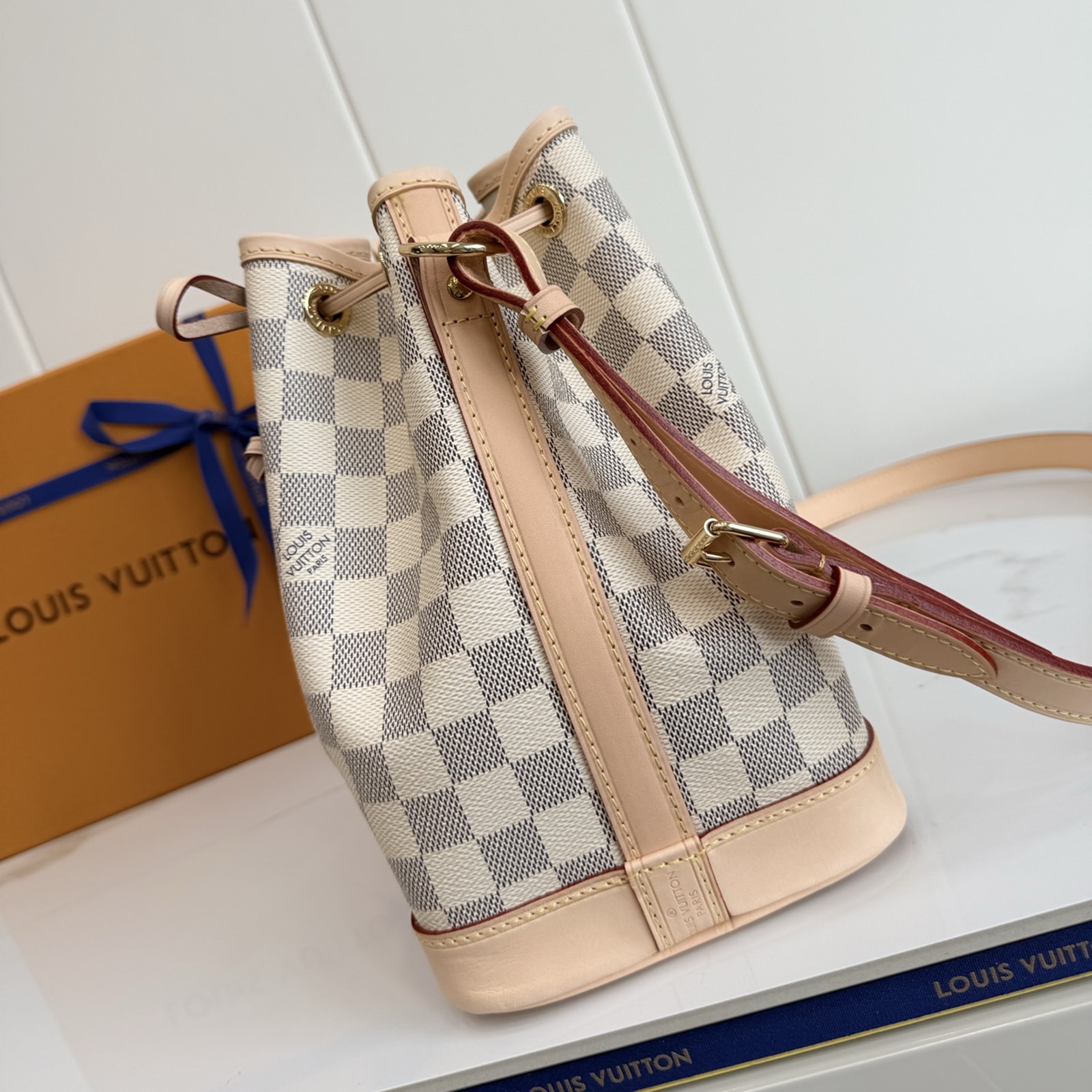 22 x 24 x 15 cm (幅 x 高さ x マチ) 素材:ダミエ・アズール キャンバス トリミング:ヌメ革(皮革の種類:牛革) ライニング:テキスタイル 金具(色:ゴールド) ドローストリング開閉式 Dリング 保護用メタルの底鋲 × 4 スマートフォン、ポルトフォイユ・ヴィクトリーヌ、ポケットティッシュ、リップスティック、イヤホン、鍵、文庫本など収納可能 ストラップ:取り外し可能, 調整可能 ストラップの頂点からバッグ上部までの長さ(最短):50.0 cm ストラップの頂点からバッグ上部までの長さ(最長):55.0 cm