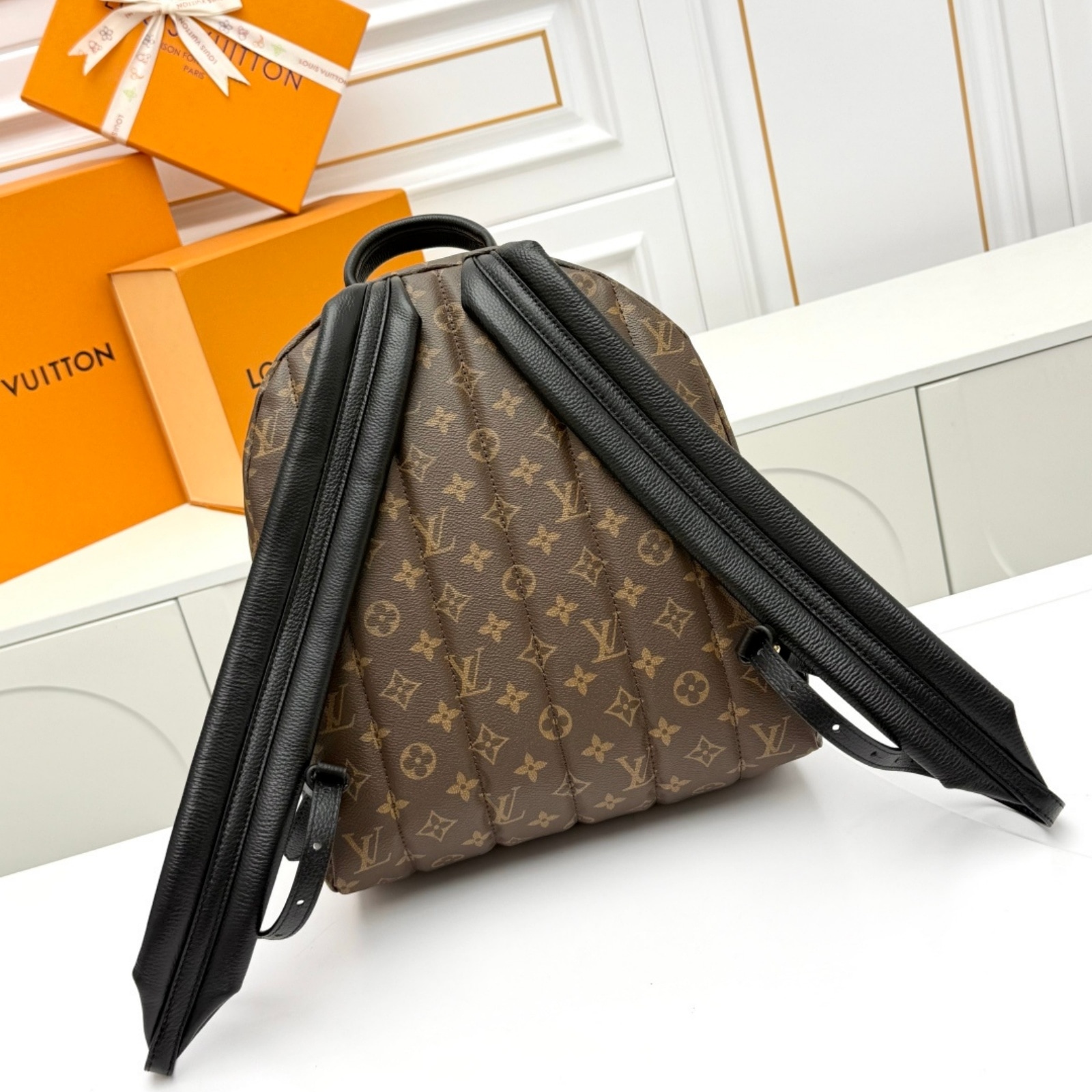 実用的な定番アイテムに新鮮なひねりを加え、トレンディなシティバッグへと昇華させた「パームスプリングス バックパック MM」。現代を生きるアクティブな旅人たちにぴったりのシックで機能的なアイテムです。大きめなサイズをアイコニックなモノグラム・キャンバスで仕上げ、しなやかなレザーのトリミングとゴールドカラーの金具をあしらいました。キルティング加工を施したパッド付きストラップで快適に持ち運べます。