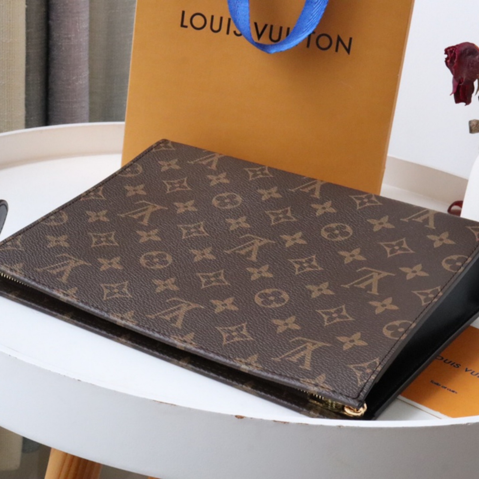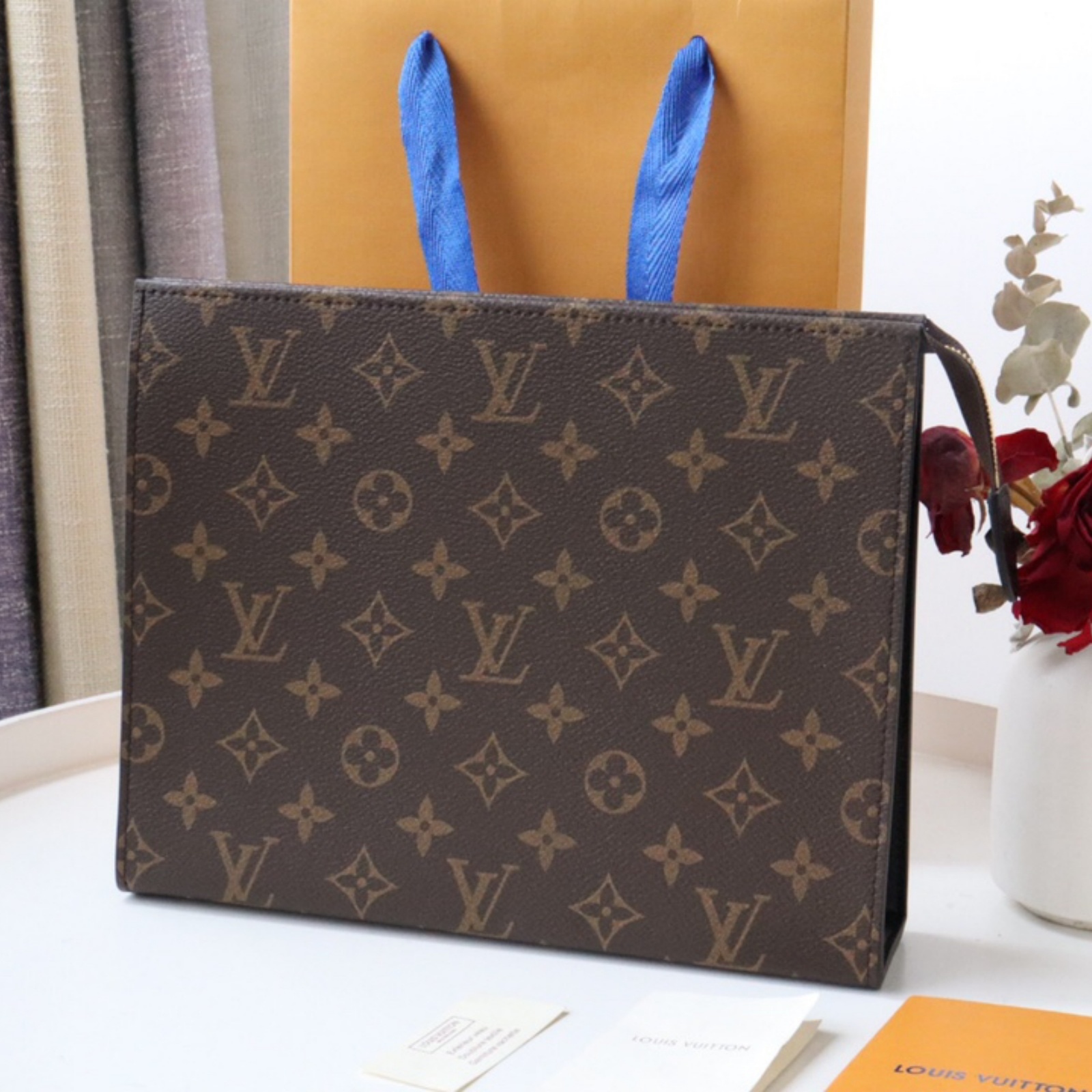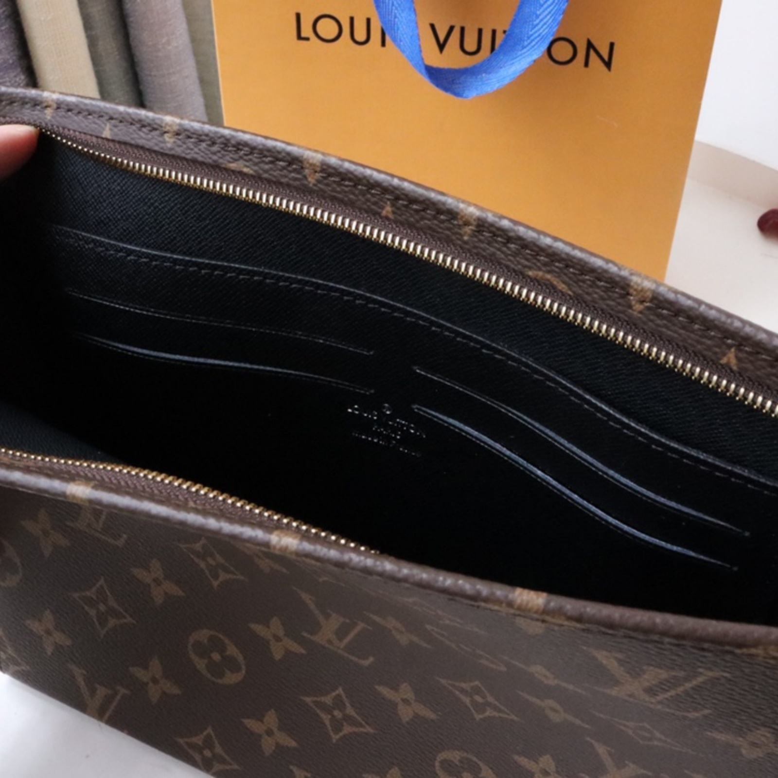 必需品をスタイリッシュに持ち運べる、使い勝手の良い「ポッシュ・トワレ NM」。ルイ・ヴィトンのタイムレスなモノグラム・キャンバスと上質なブラックのカウハイドレザーで仕立て、ゴールドカラーのファスナーをあしらって洗練された印象に仕上げました。独創的なデザインに、4つのカードスロットと書類用のパッチポケットを備えています。トイレタリーバッグを進化させた、現代人のモバイルライフに最適なアイテムです。