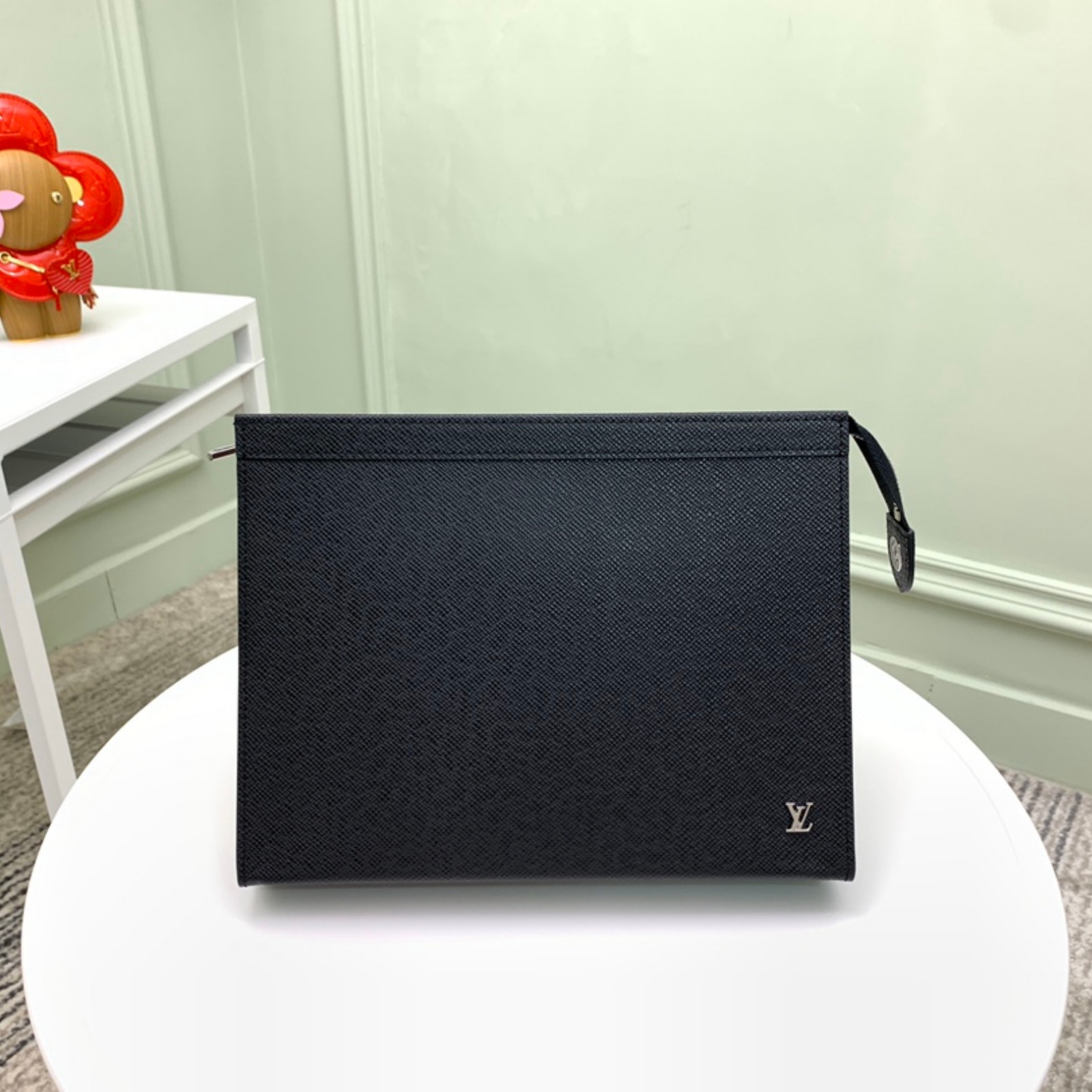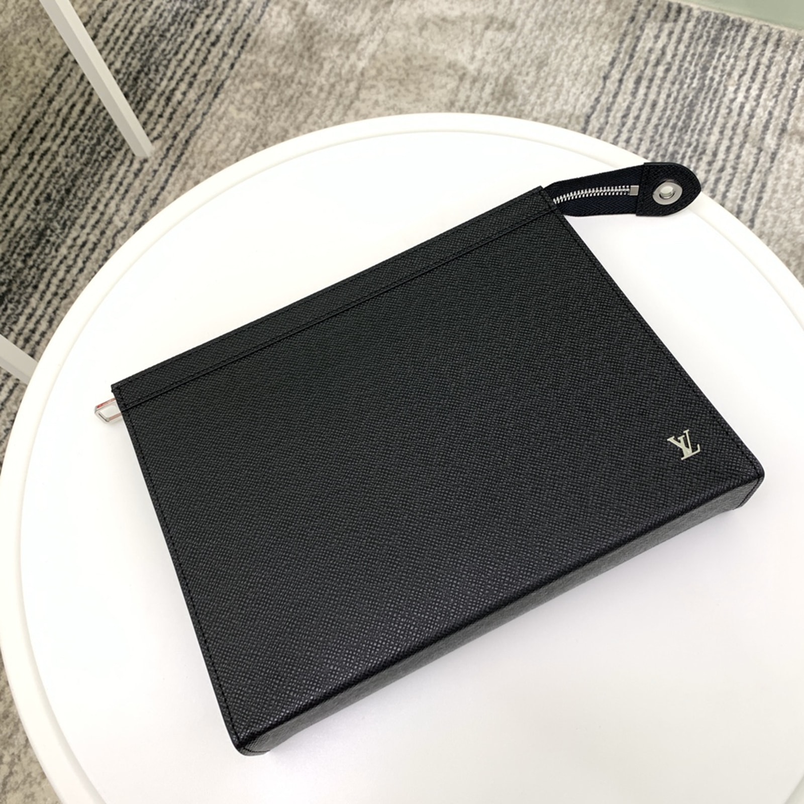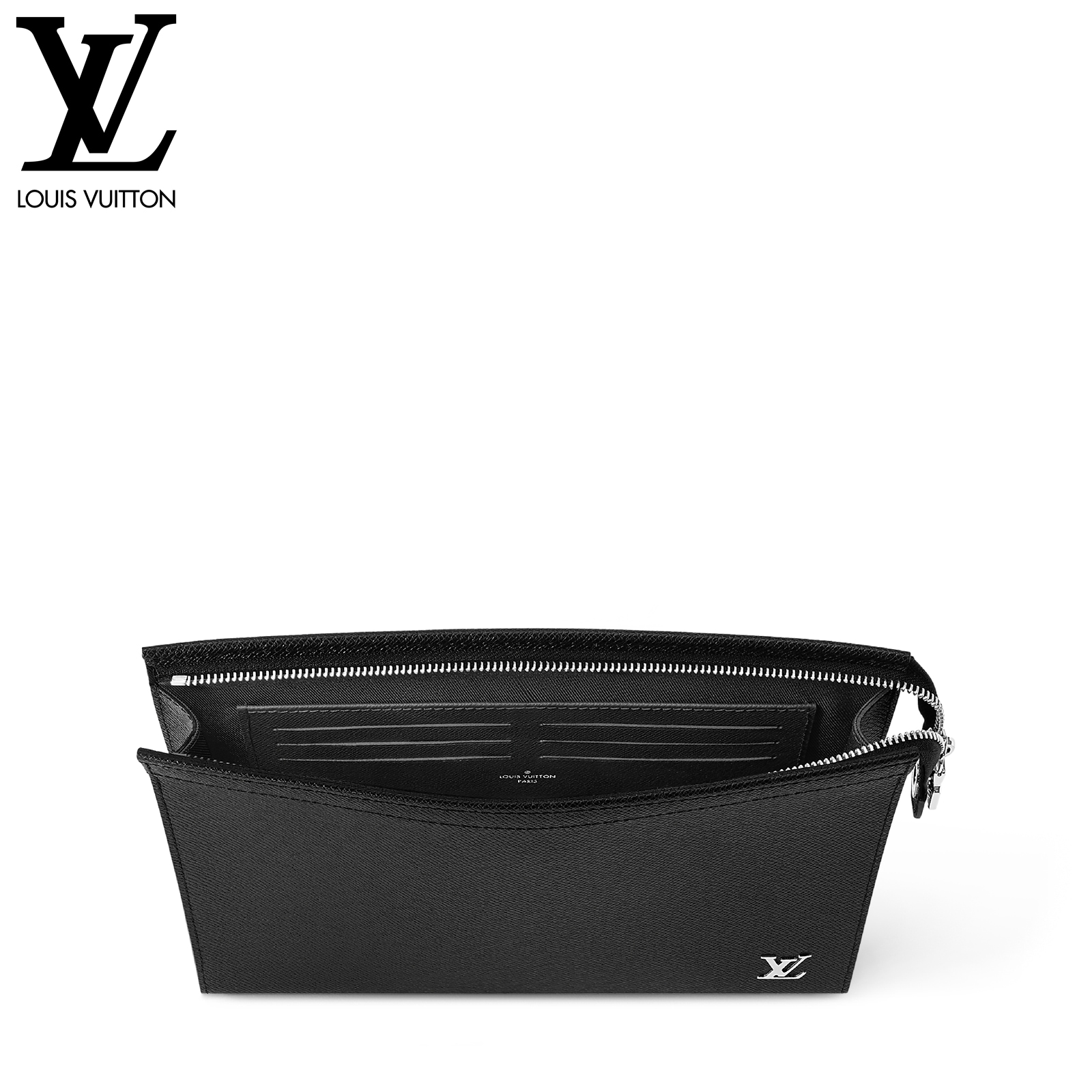 深みのあるカラーに染色したタイガ・レザーで仕立てた「ポシェット・ヴォワヤージュ」。バッグインバッグとしても、書類用ポートフォリオとして手持ちしても、多用途にお使いいただけるバッグです。右下にシルバーカラーのメタルで象ったLV イニシャルをあしらい、落ち着いた雰囲気に仕上げました。内側にはフラットポケットと6つのカードスロットを備えています。