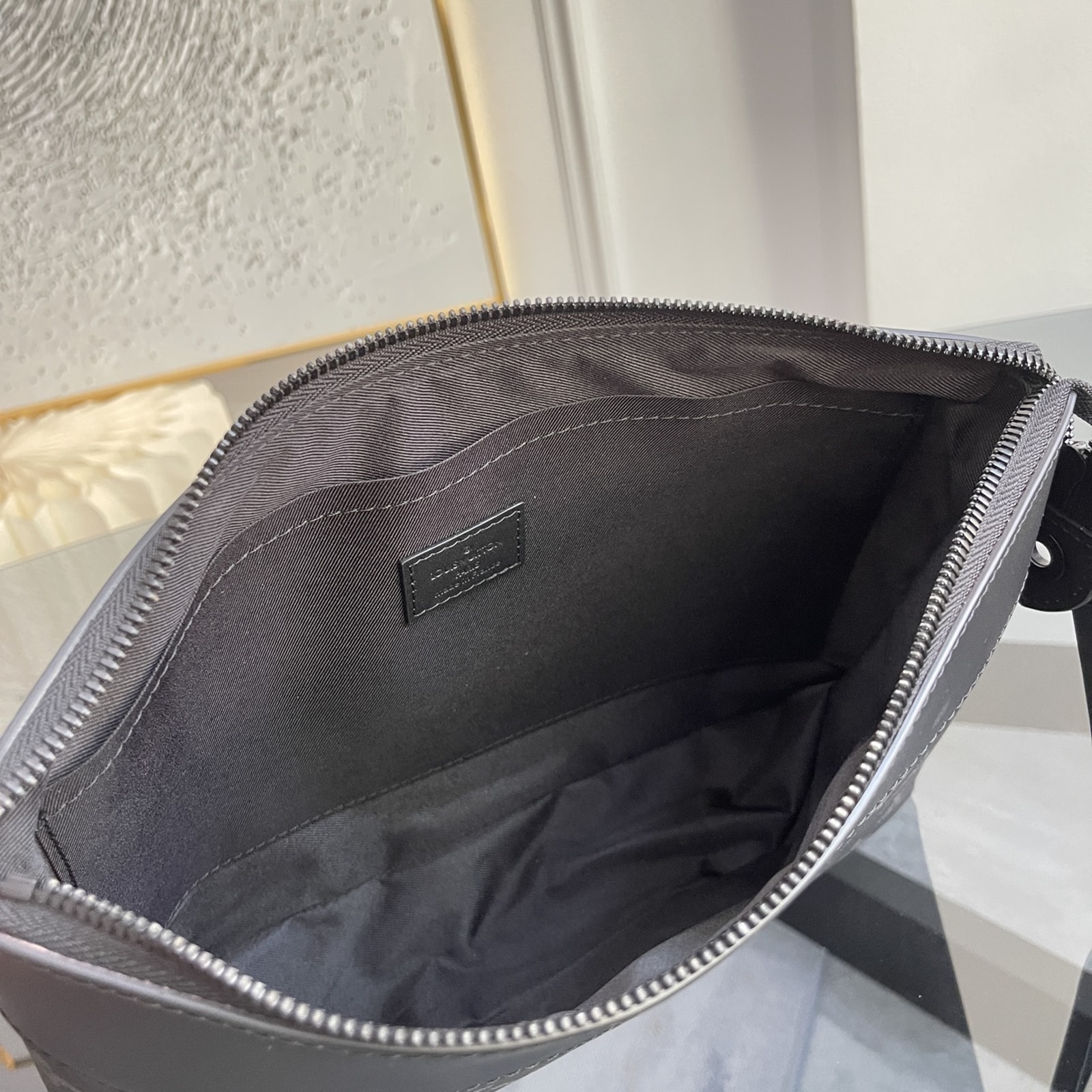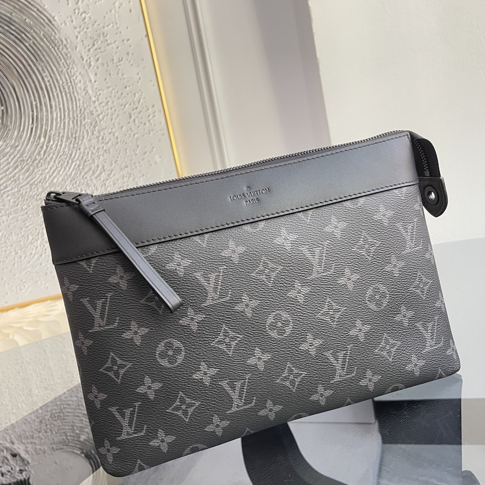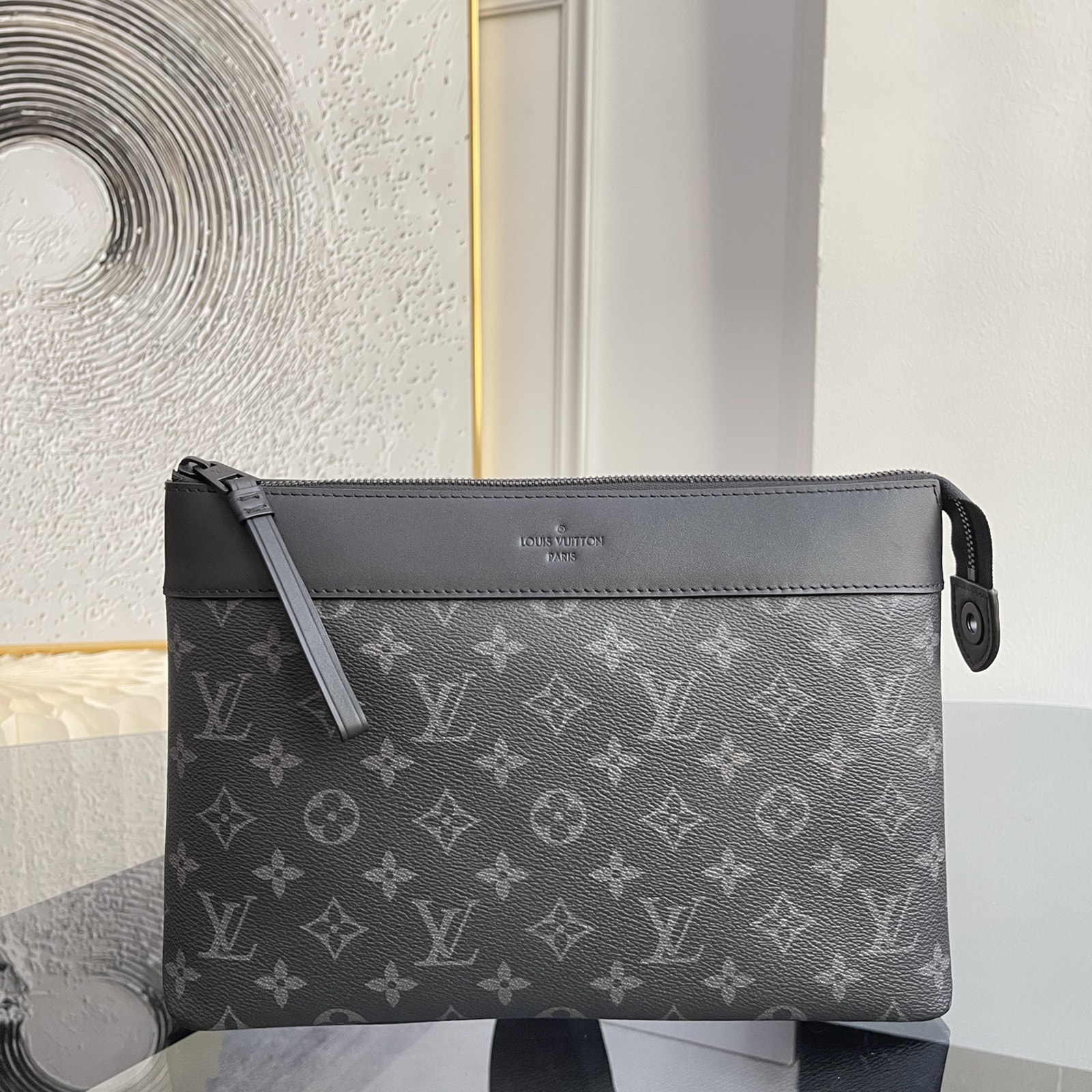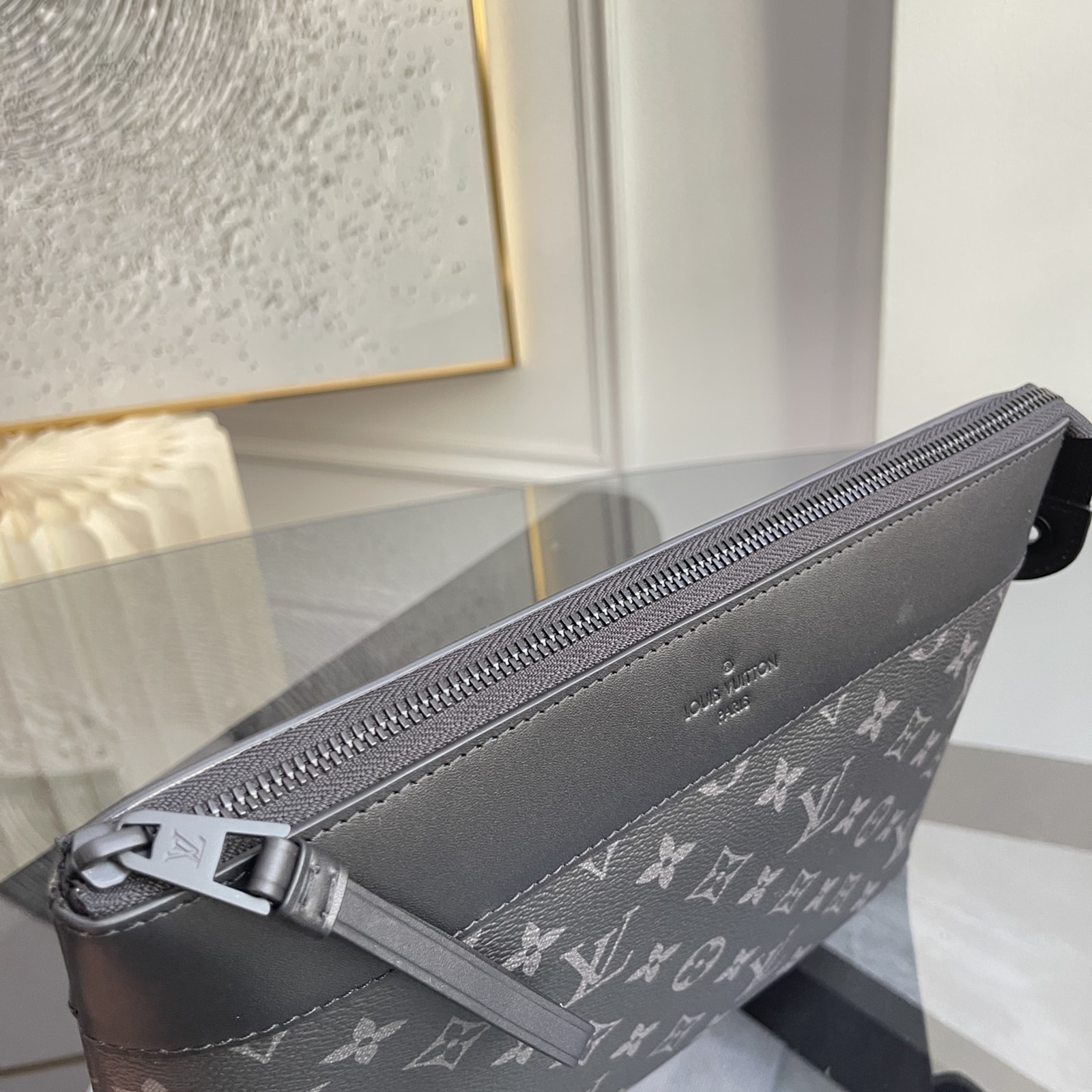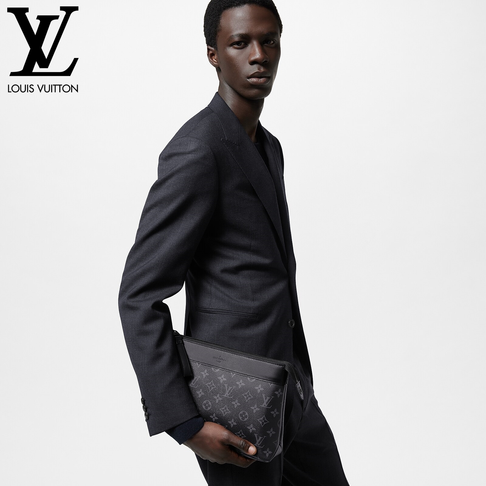モノグラム・エクリプス キャンバスで仕立てた「ポシェット・ヴォワヤージュ スープル」。メゾンの伝統的なポーチ「ポシェット・ヴォワヤージュ」から着想を得て、よりソフトで丸みを帯びたデザインに再解釈しました。快適なハンドキャリーが可能な、スリムでしなやかなアイテムです。ファスナー開閉式のメインコンパートメントに加え、マグネット開閉式のバックポケットがあしらわれています。