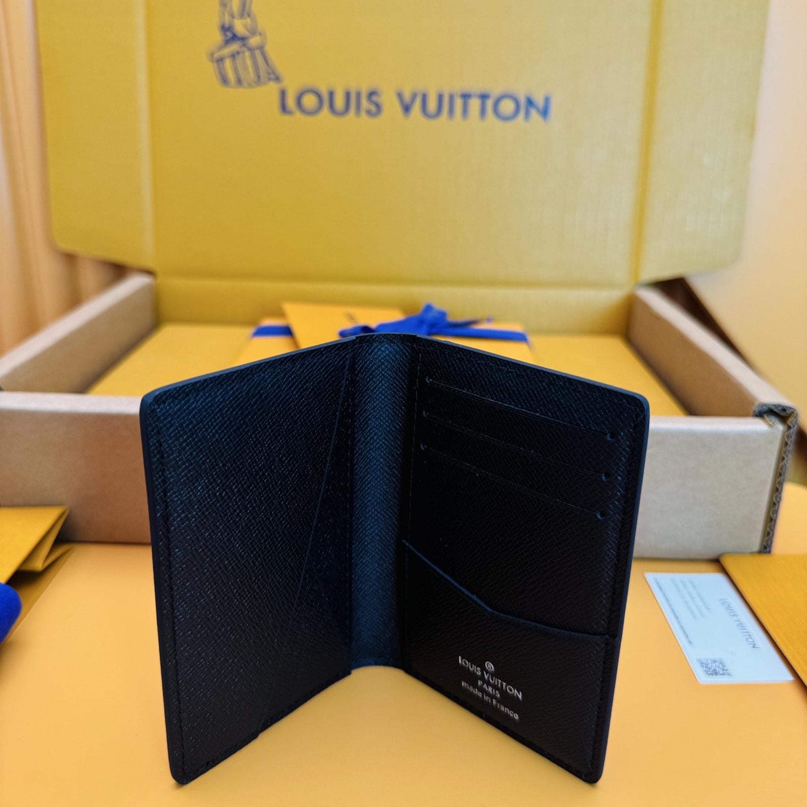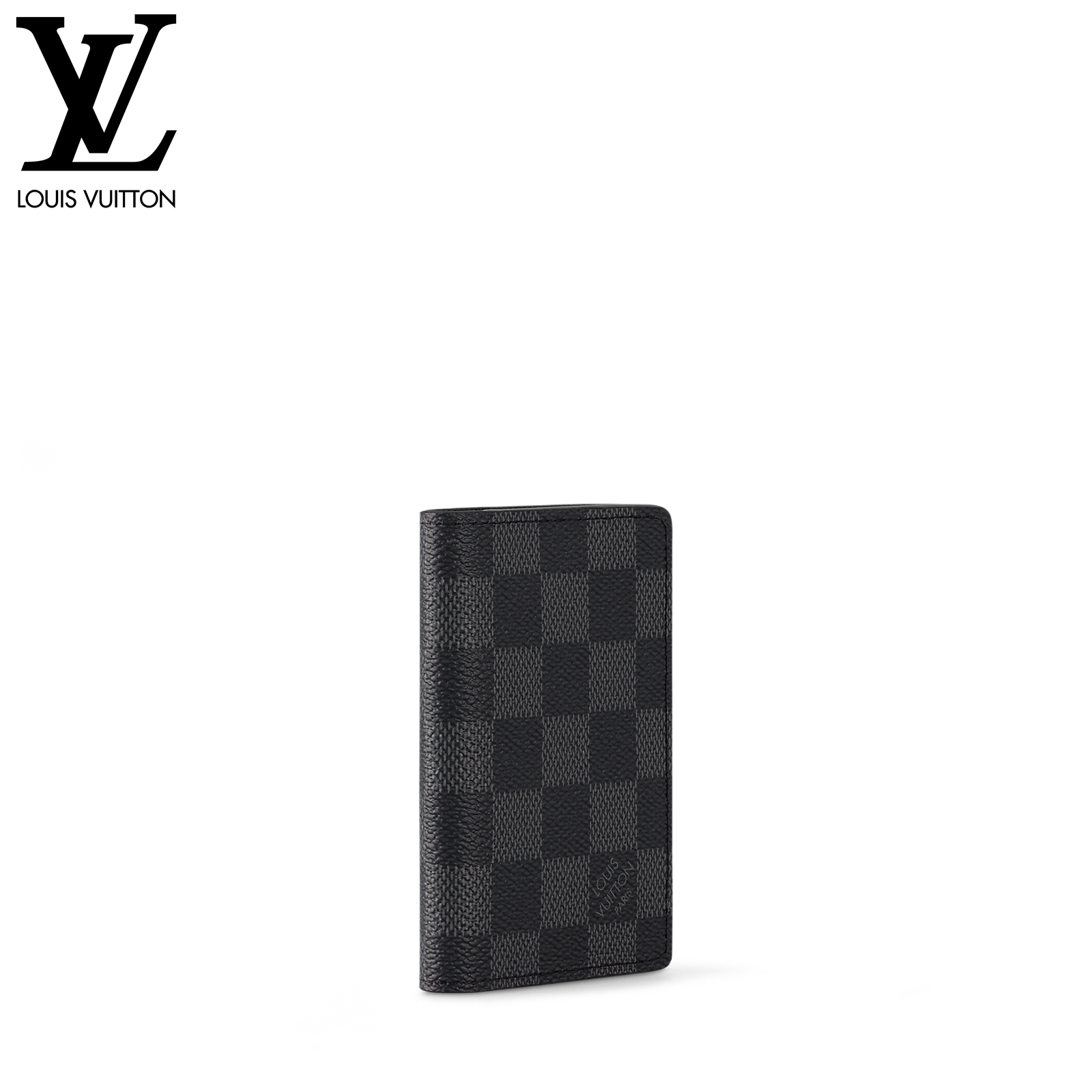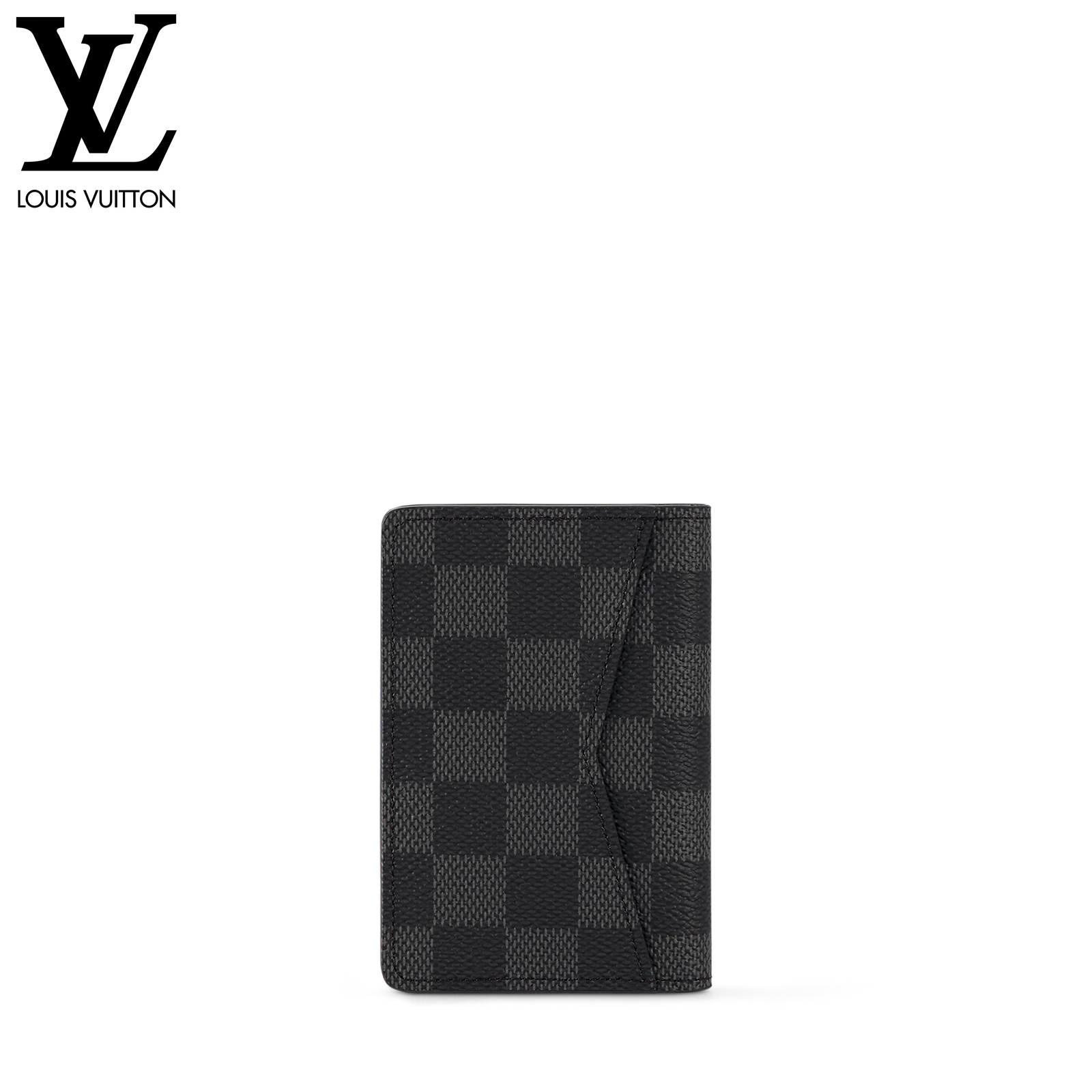 コンパクトなカードケース「オーガナイザー・ドゥ ポッシュ」。カジュアルな装いだけでなくスーツにも合わせやすいダミエ・グラフィットは働く男性の強い味方。ポケットには、クレジットカード、定期、名刺、地下鉄路線図などを収納可能。