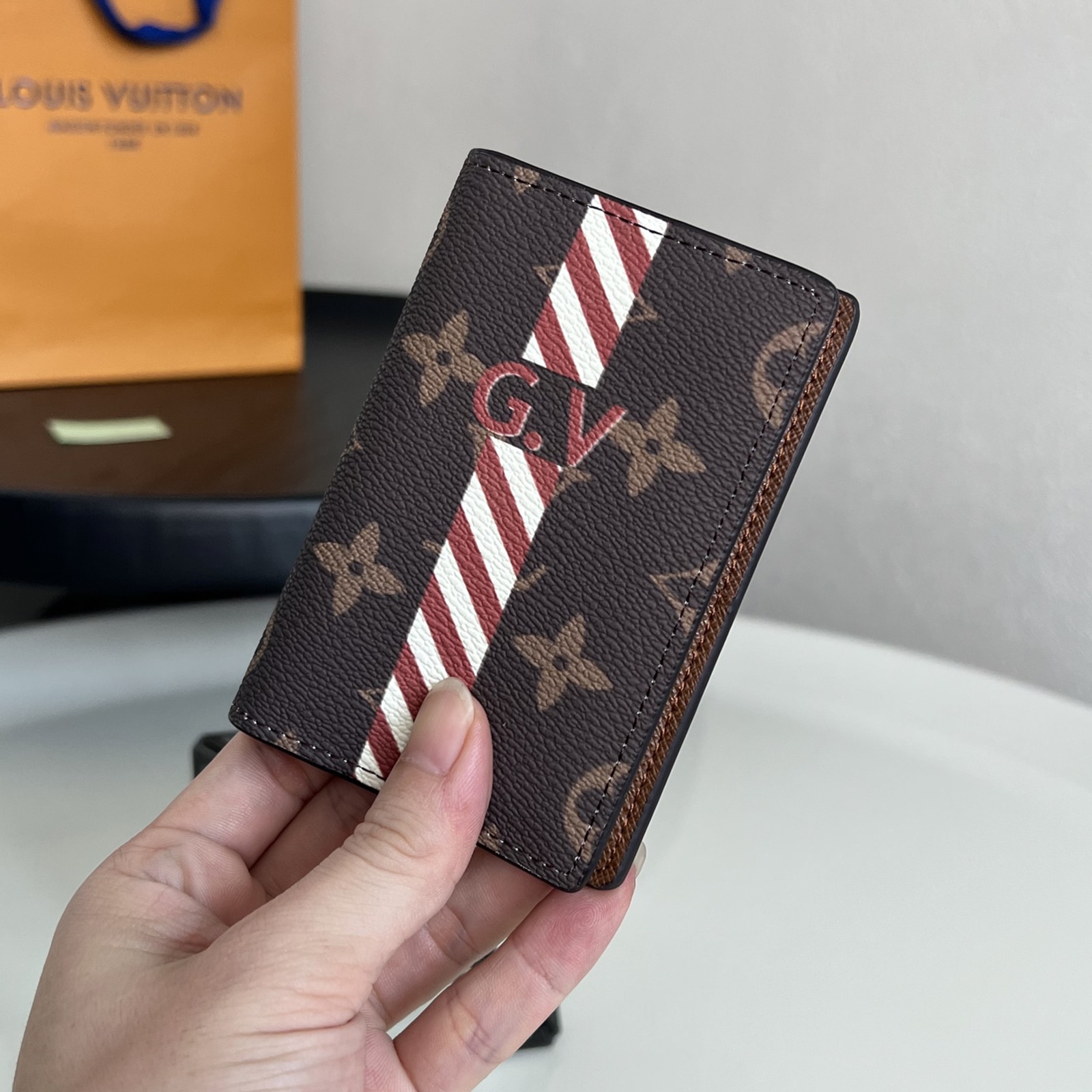 7.5 x 11.1 x 1 cm(幅 x 高さ x マチ)素材:モノグラム・キャンバスライニング:カーフレザー(皮革の種類:牛革)内ポケット × 5外ポケットクレジットカード用スロット × 3ライニング:カウハイドレザー(皮革の種類:牛革)