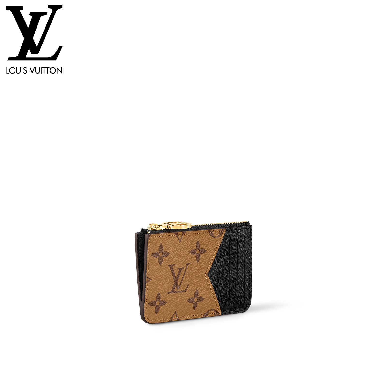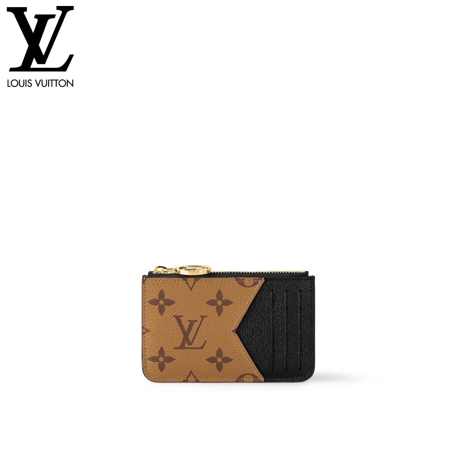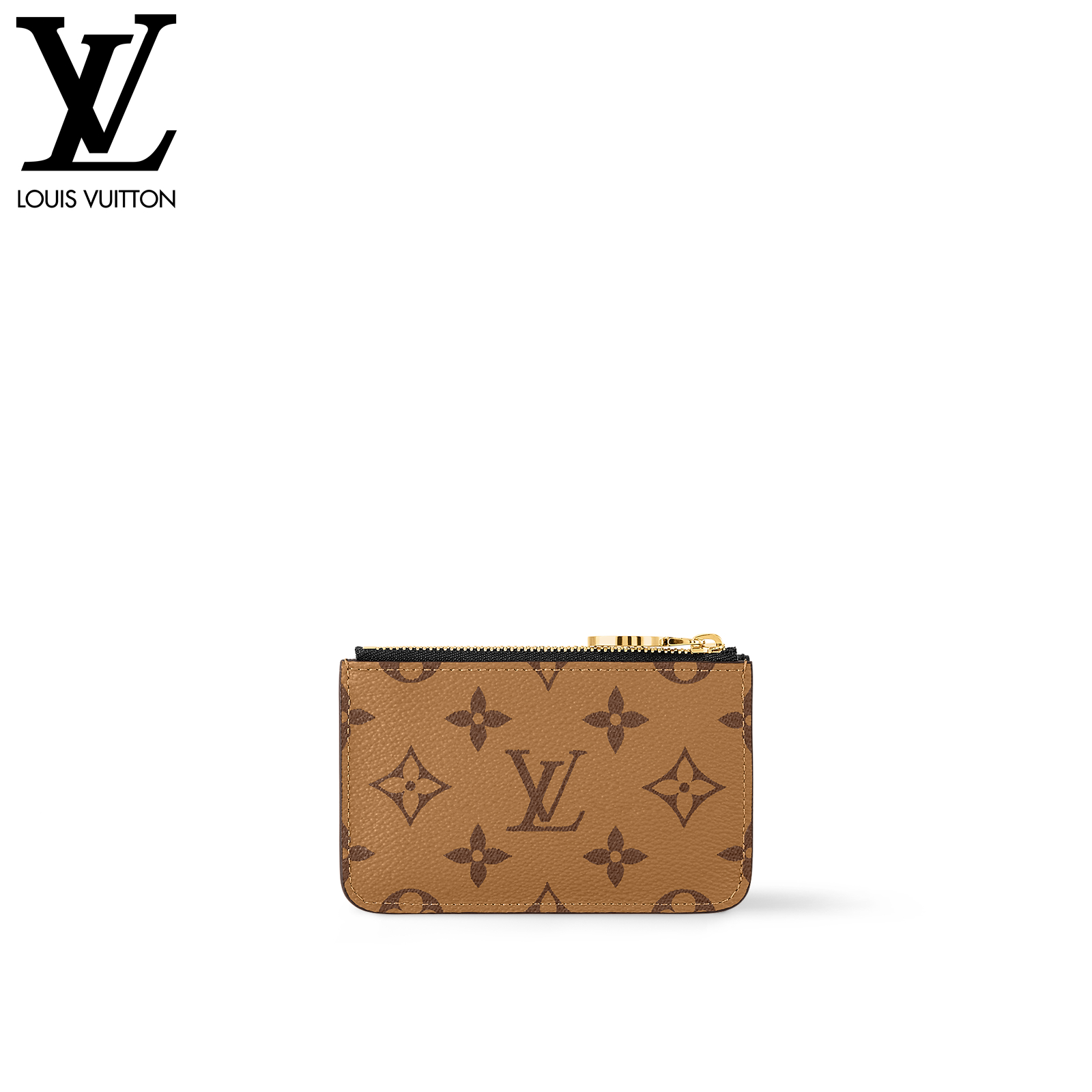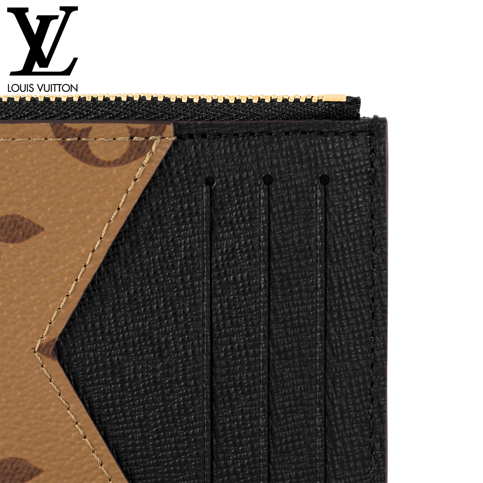 12 x 8 x 0.8 cm(幅 x 高さ x マチ)素材:モノグラム・キャンバス、モノグラム・リバース キャンバスライニング:レザー(皮革の種類:牛革)金具(色:ゴールド)カード用ポケットx3ファスナー式コインポケットフラットポケット
