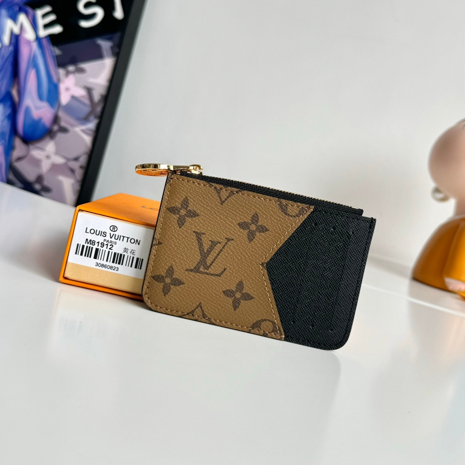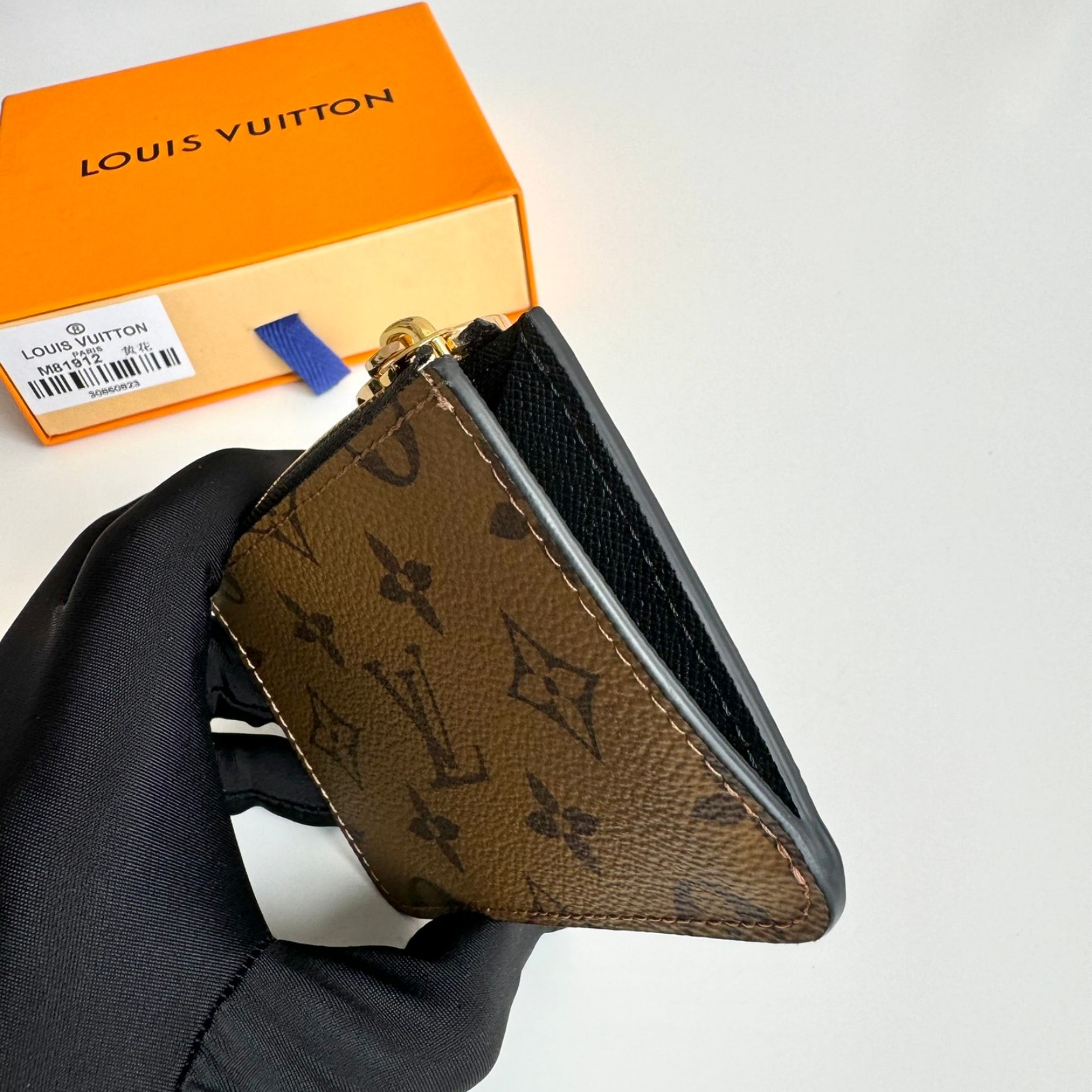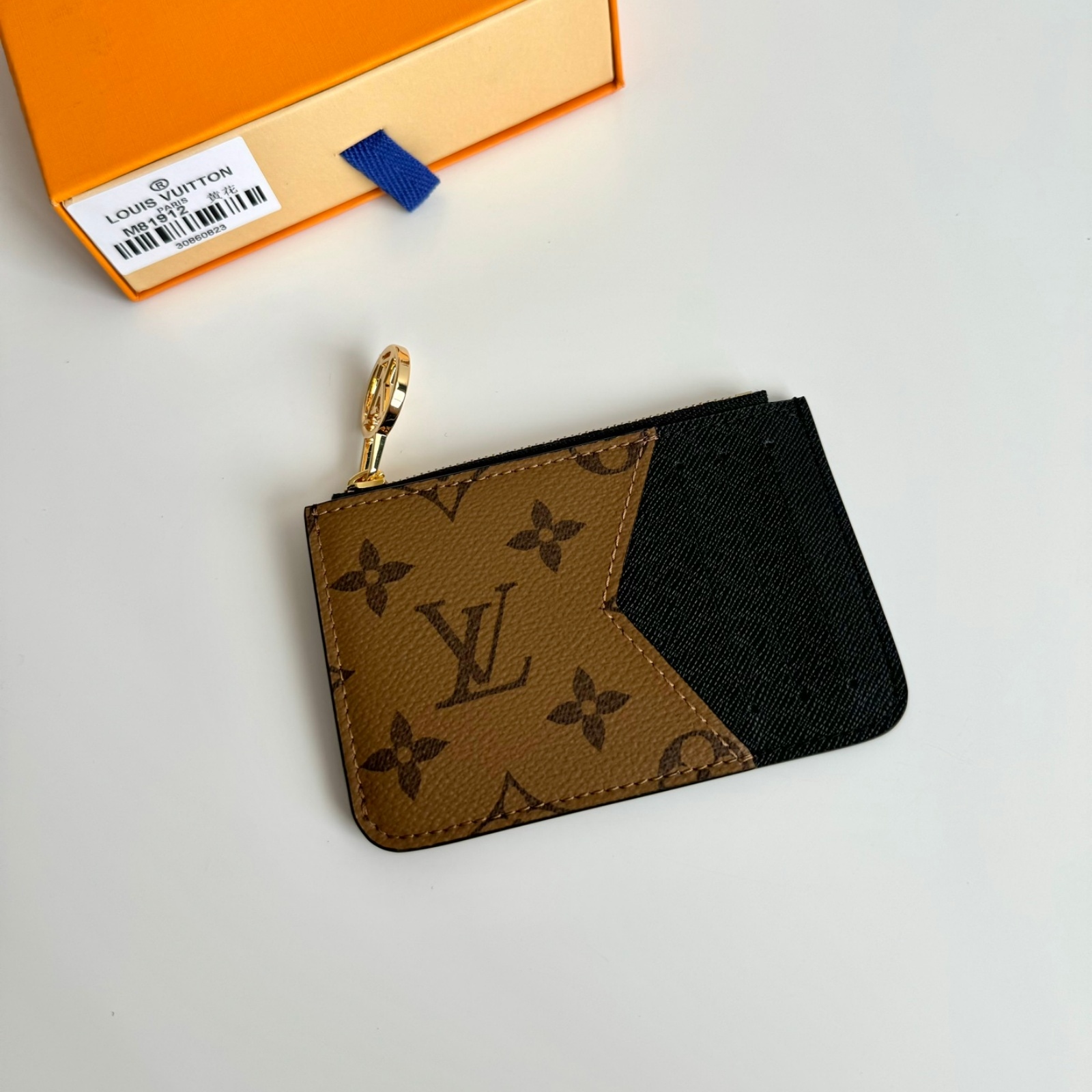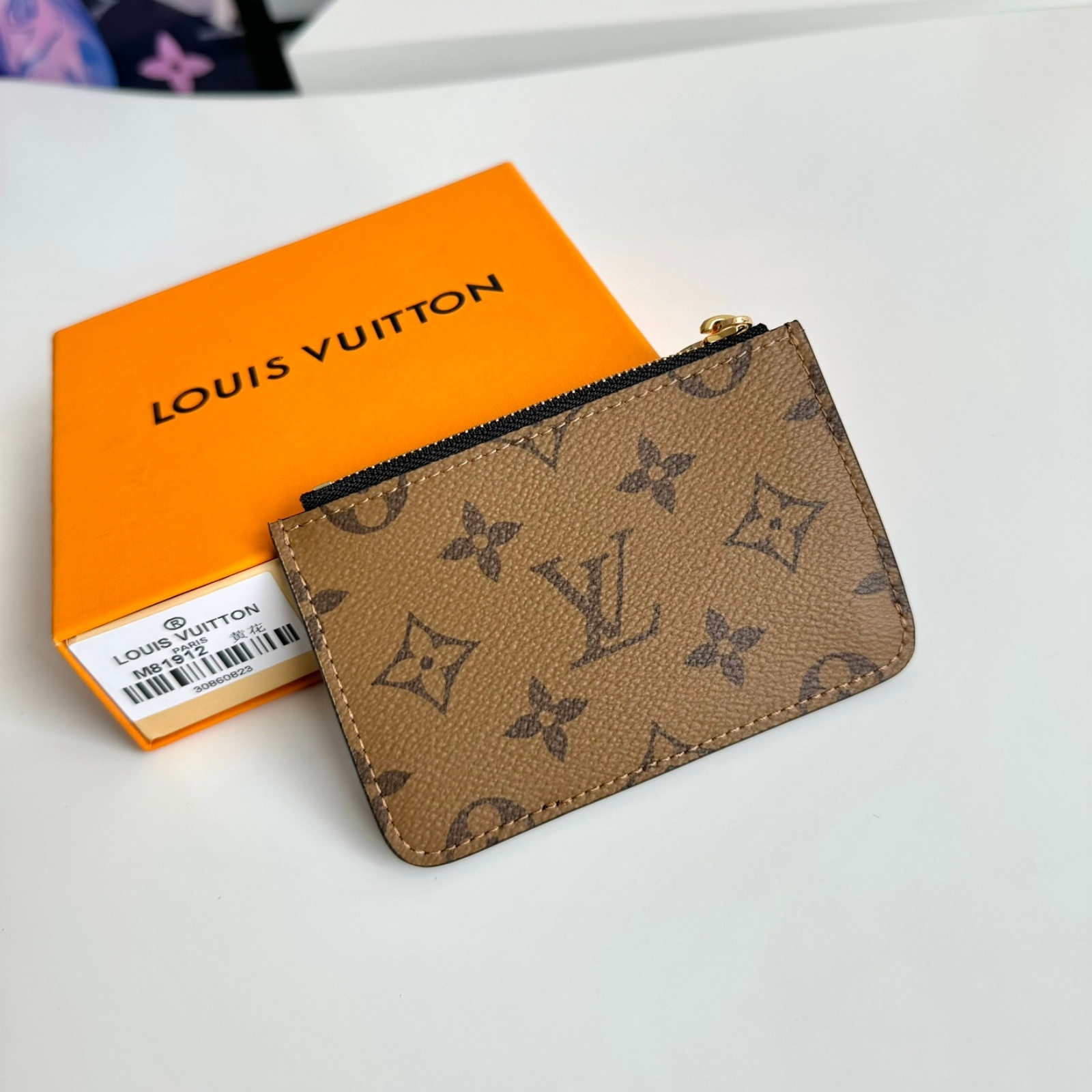 12 x 8 x 0.8 cm(幅 x 高さ x マチ)素材:モノグラム・キャンバス、モノグラム・リバース キャンバスライニング:レザー(皮革の種類:牛革)金具(色:ゴールド)カード用ポケットx3ファスナー式コインポケットフラットポケット