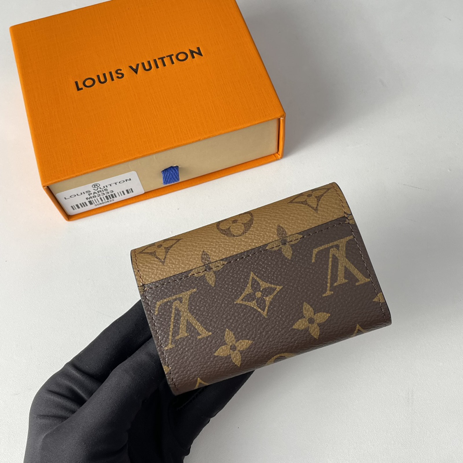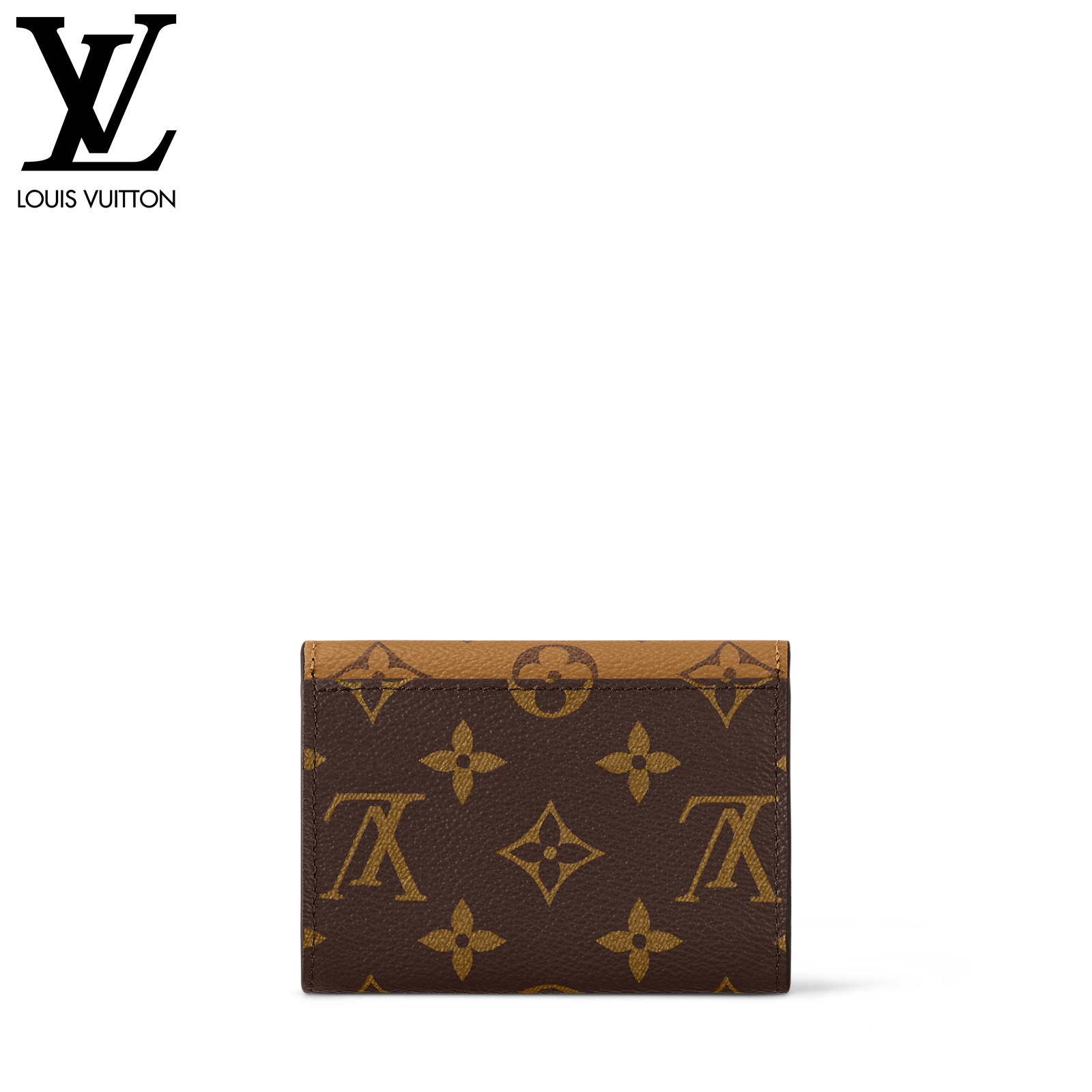11 x 8 x 2.5 cm(幅 x 高さ x マチ)素材:モノグラム・キャンバス、モノグラム・リバース キャンバスライニング:レザー(皮革の種類:牛革)金具(色:ゴールド)スナップボタン開閉式外側背面にポケットマチ付きコンパートメントファスナー式コインポケットフラットポケットカード用ポケットx2