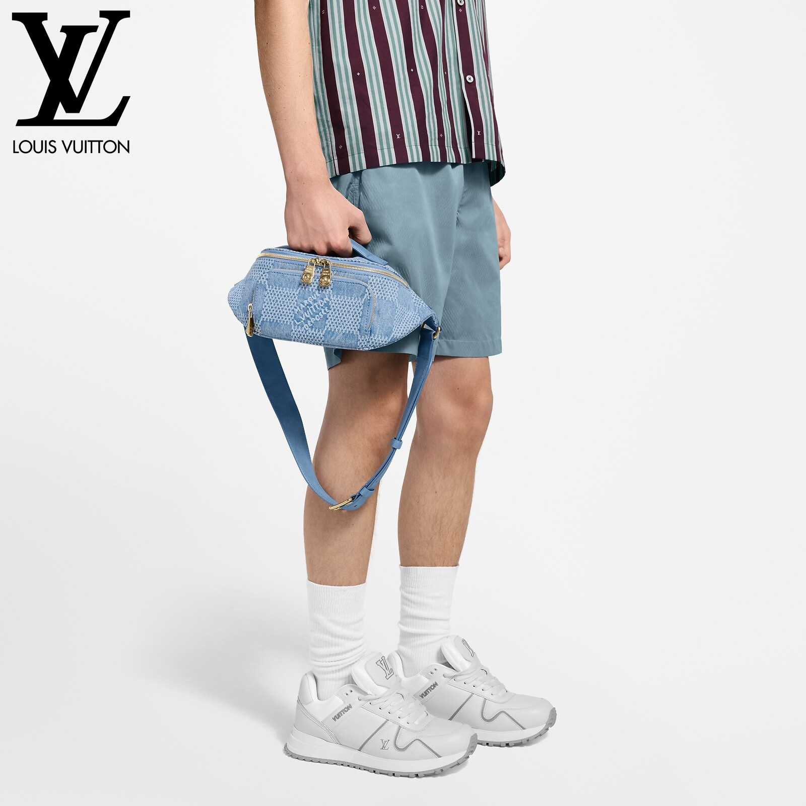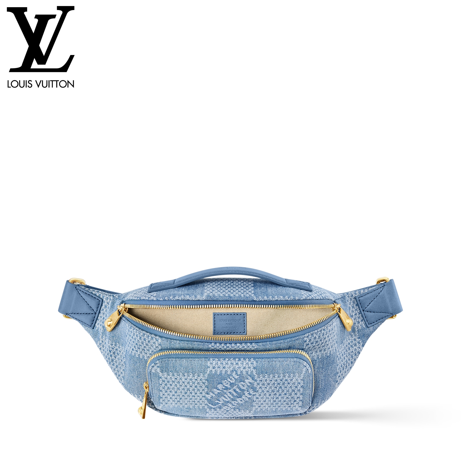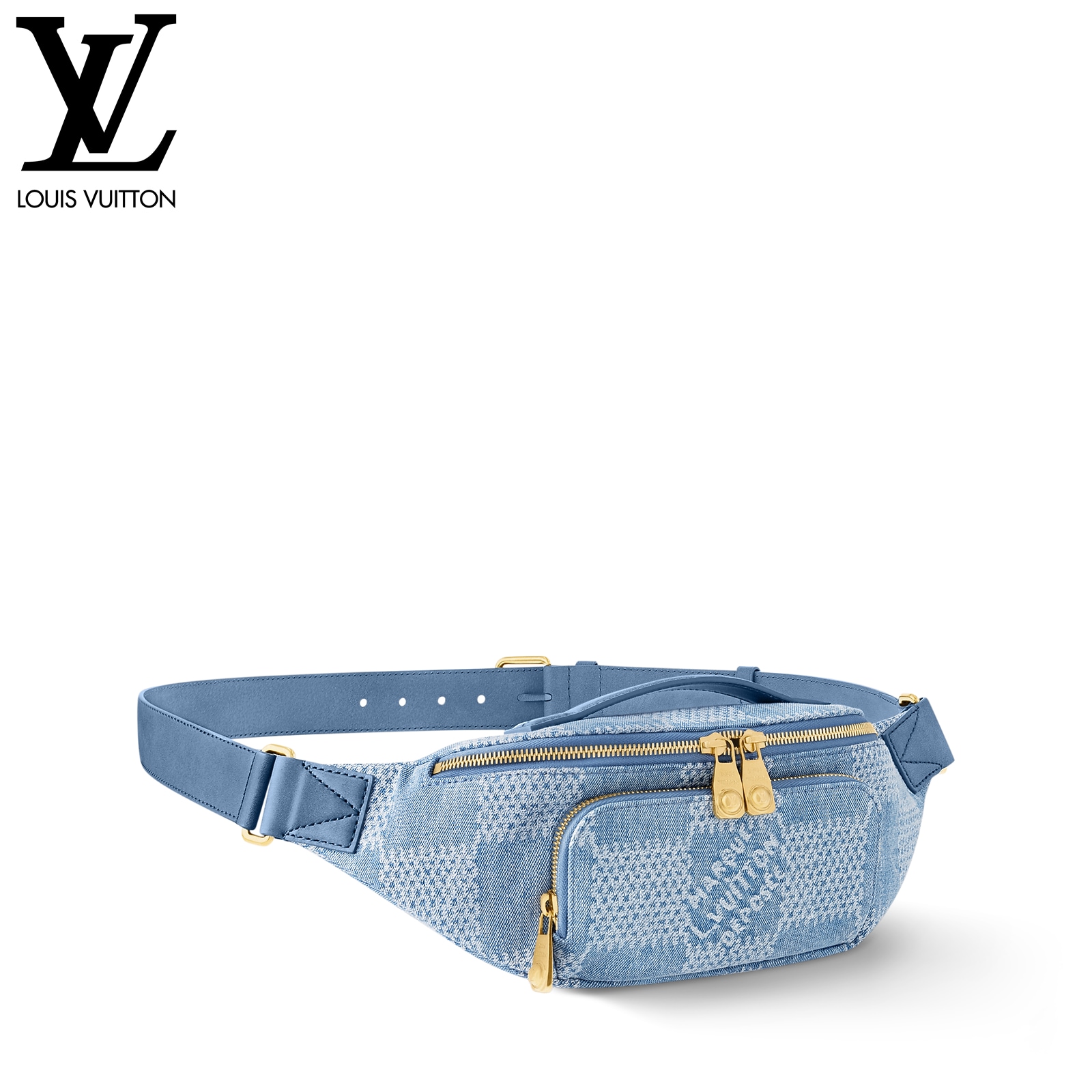 ダミエ・デニム 3D コットンキャンバスにゴールドカラーの金具を合わせた、普段の必需品の収納に最適な「ラッシュ・バムバッグ」。ファレル・ウィリアムスならではのパール風インサート付きのファスナー引き手をはじめとしたディテールが、メゾンを象徴するダミエ・モチーフから着想を得たオーバーサイズのチェック・パターンを引き立てます。調節可能なストラップで、ウエストキャリーやショルダーキャリー、クロスボディキャリーとしても快適に使えるアイテム。