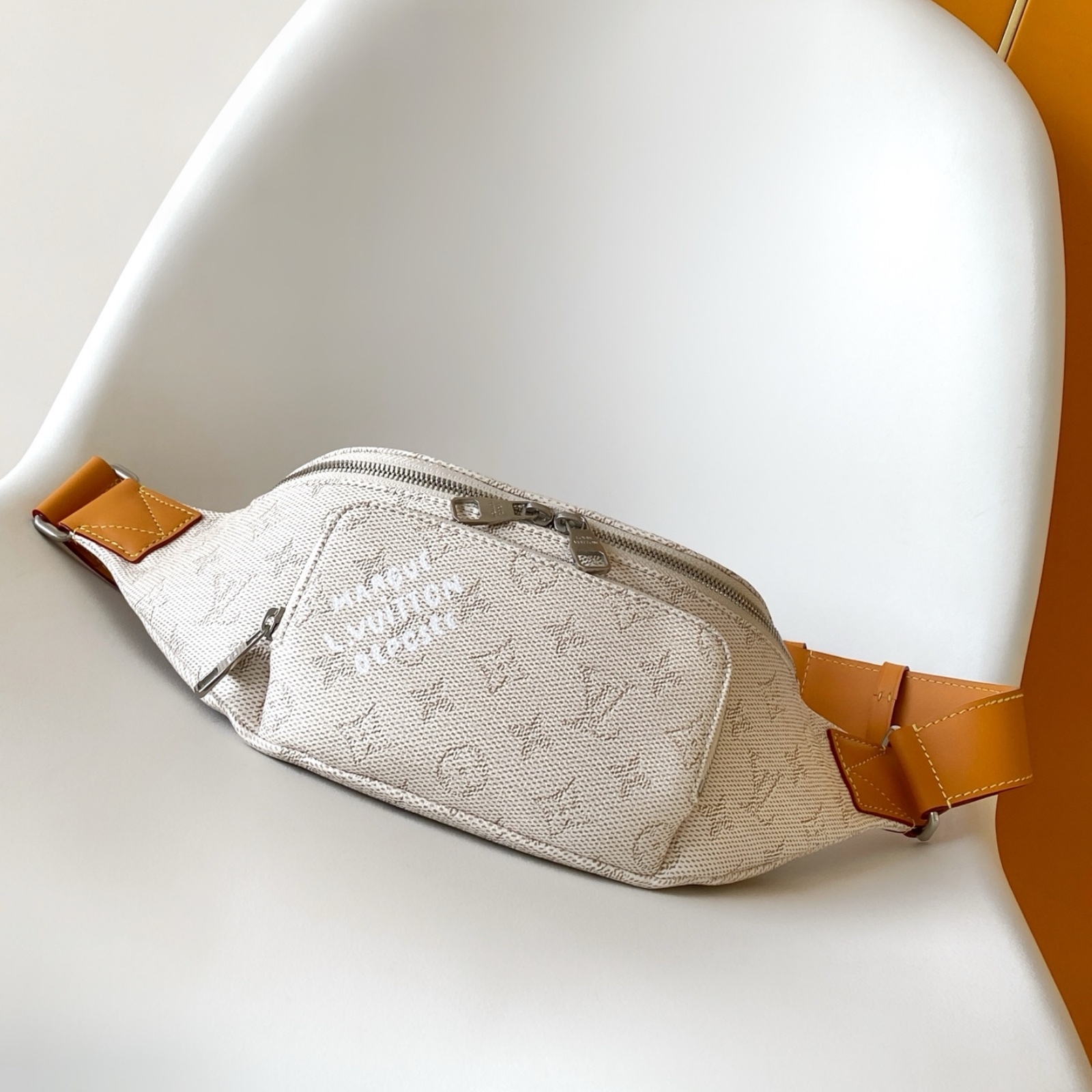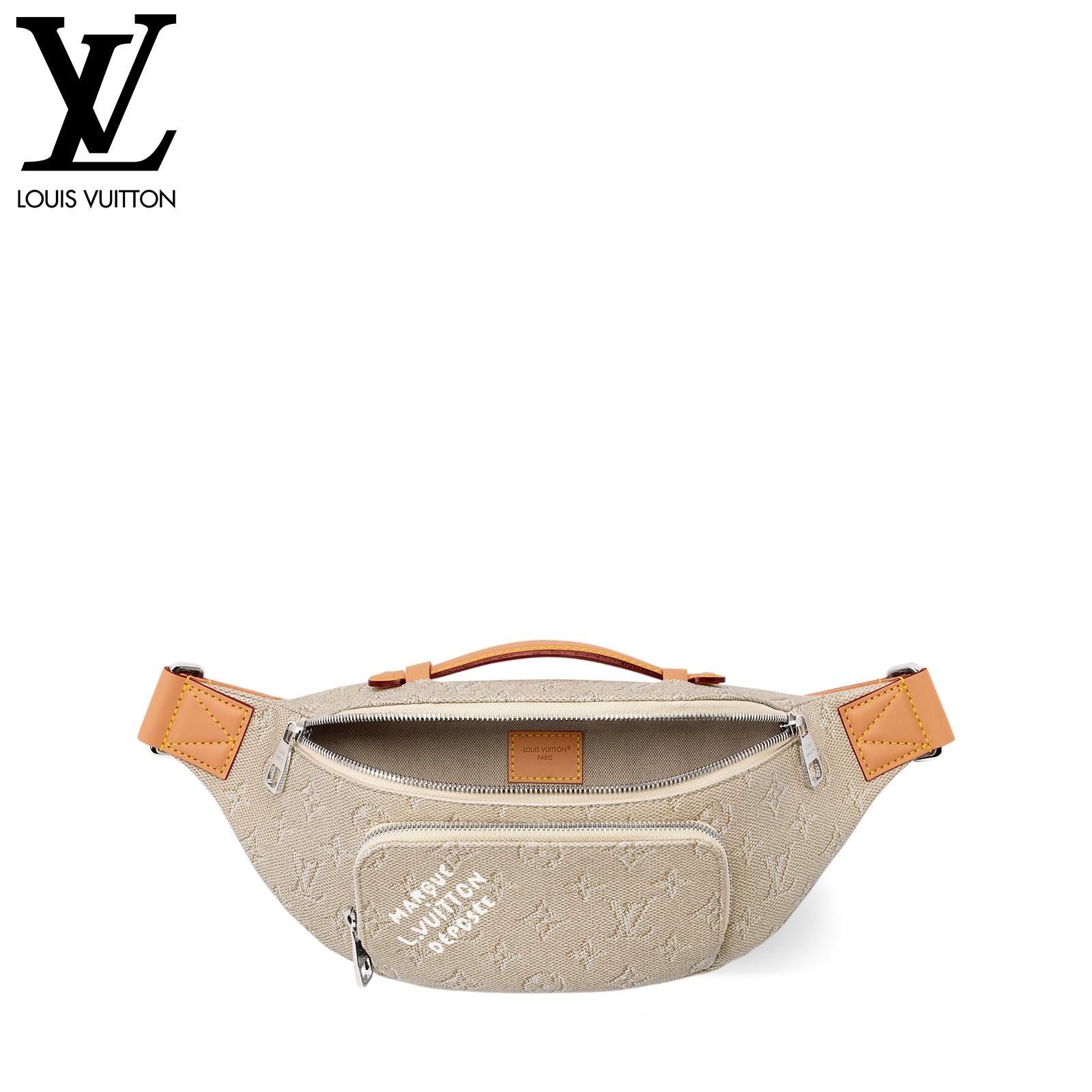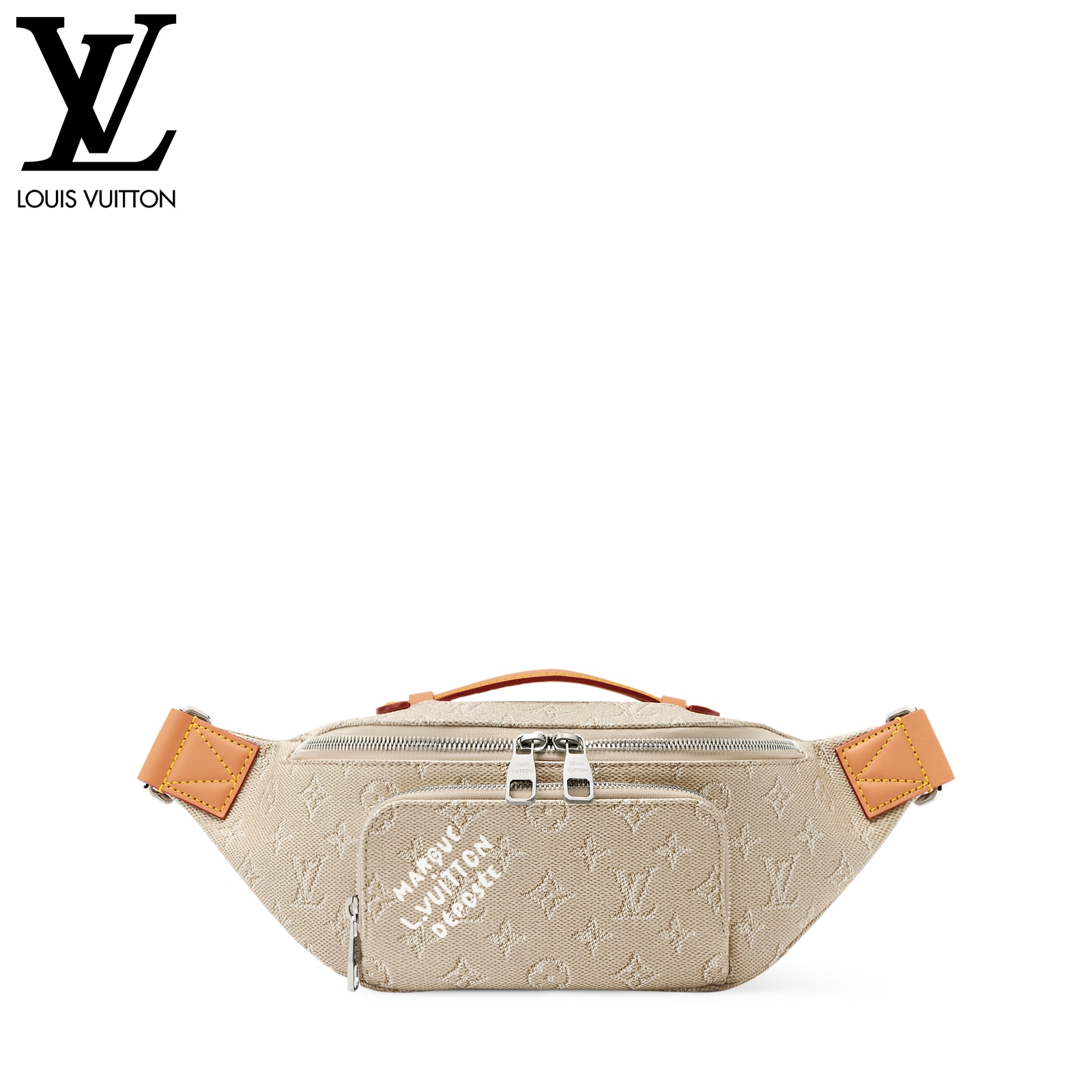 モノグラム・ヘリテージ キャンバスを使用した、「ラッシュ・バムバッグ」。ファレル・ウィリアムスによって再解釈された「Marque L.Vuitton Déposée」シグネチャーが際立つアイテムです。フロントのファスナー式ポケットとメインコンパートメントにより、毎日の必需品がスムーズに取出せるデザイン。調節可能なストラップで、ウエストポーチ、または肩掛けや斜め掛けバッグとしても楽しめます。