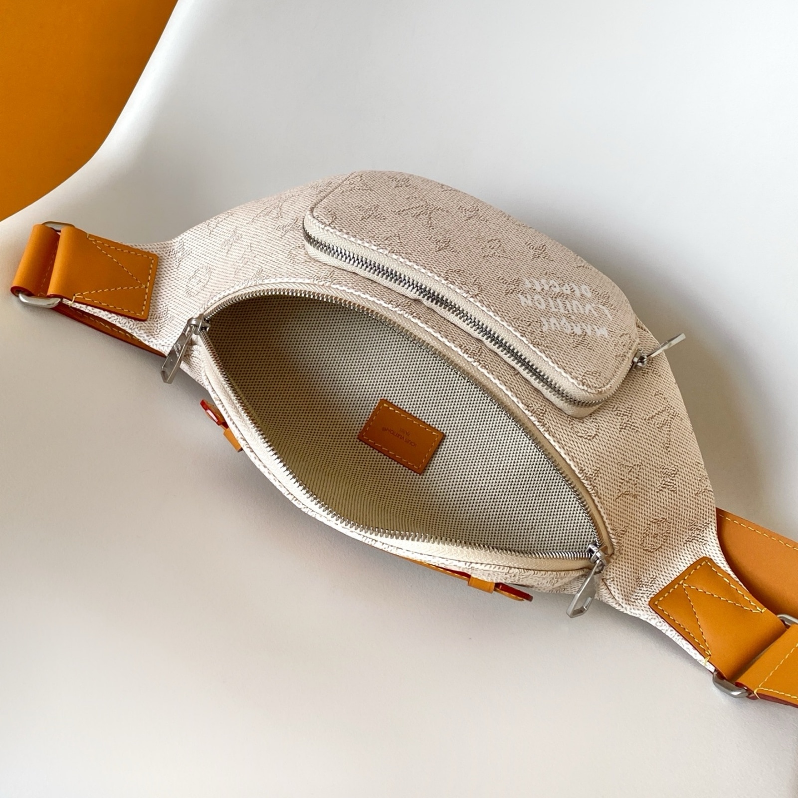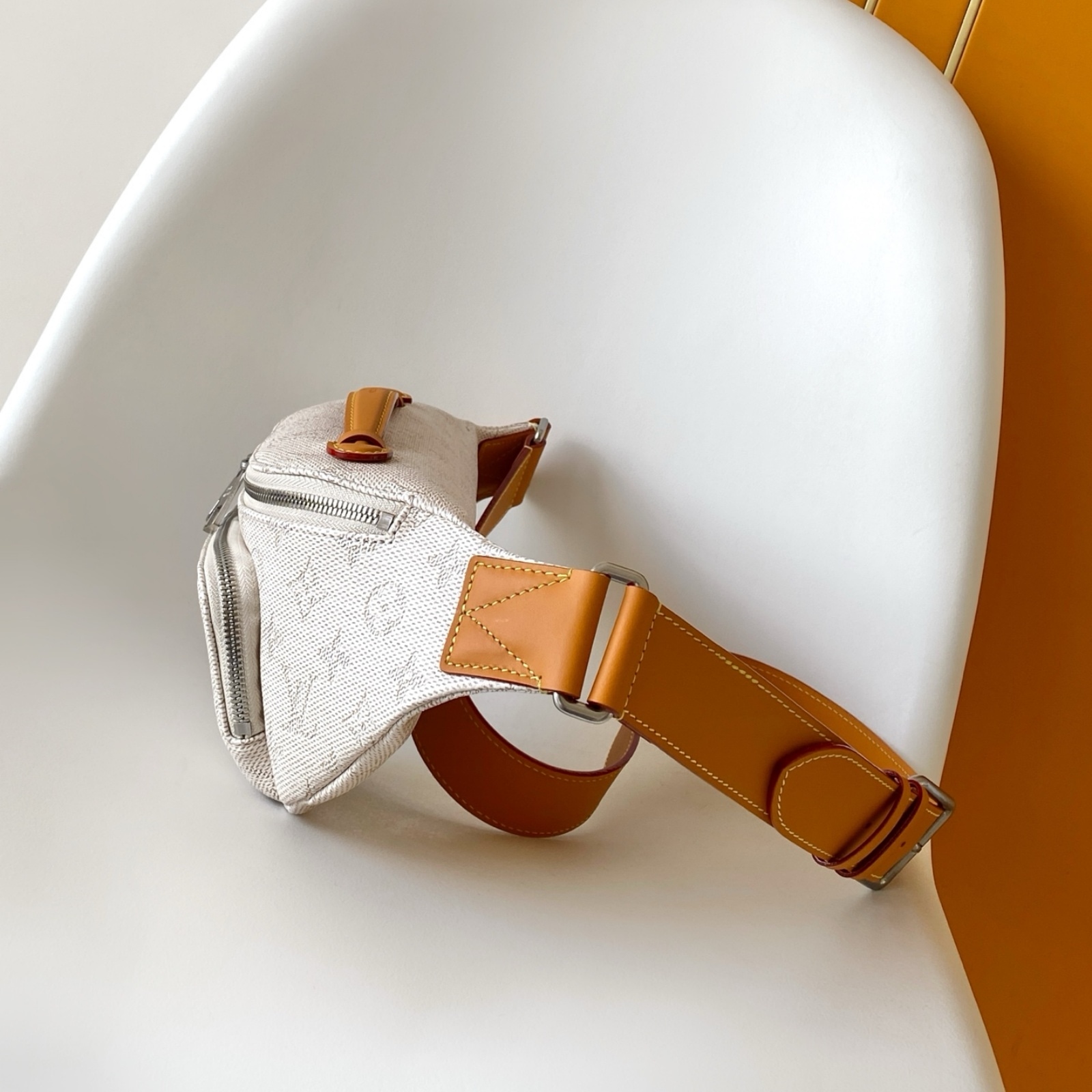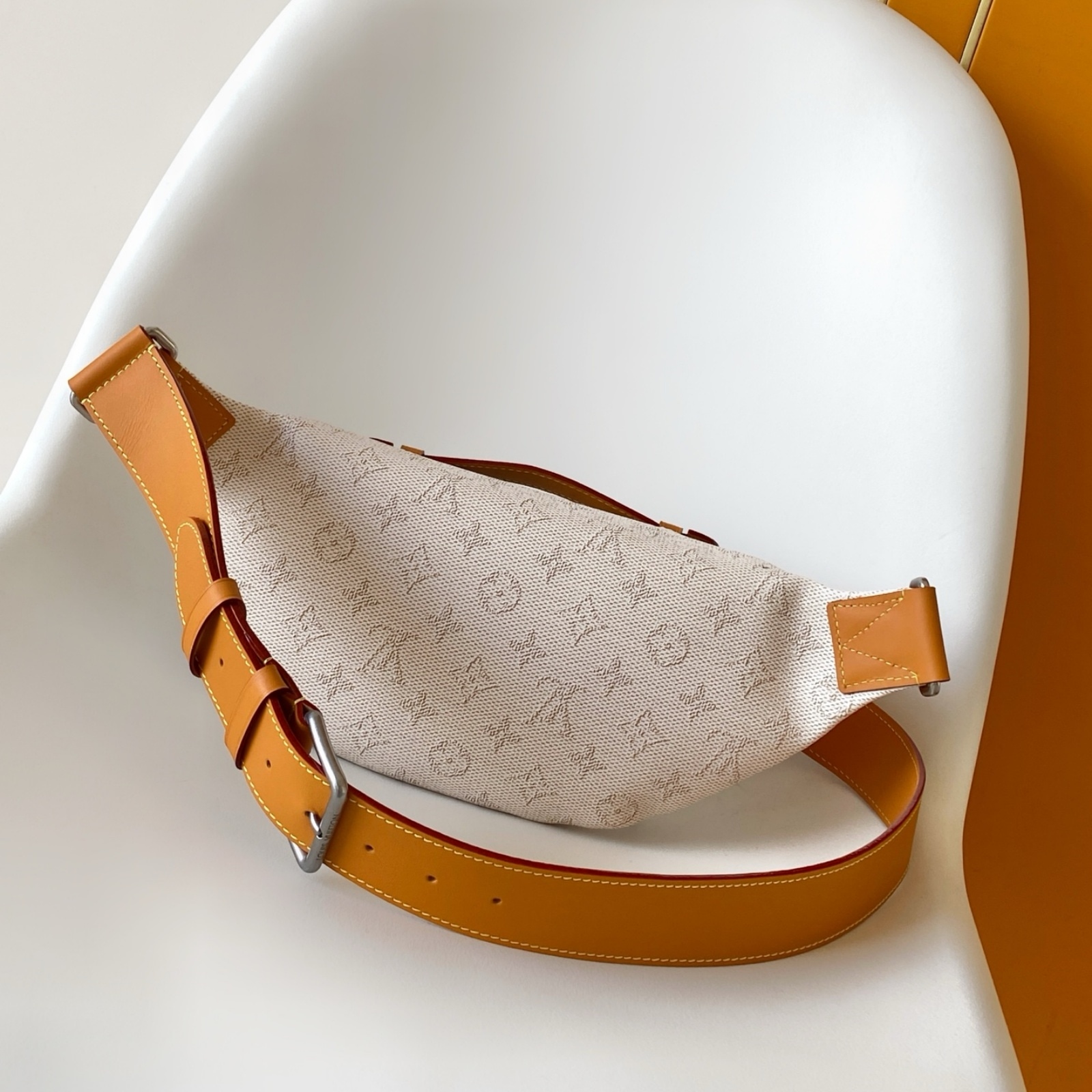 モノグラム・ヘリテージ キャンバスを使用した、「ラッシュ・バムバッグ」。ファレル・ウィリアムスによって再解釈された「Marque L.Vuitton Déposée」シグネチャーが際立つアイテムです。フロントのファスナー式ポケットとメインコンパートメントにより、毎日の必需品がスムーズに取出せるデザイン。調節可能なストラップで、ウエストポーチ、または肩掛けや斜め掛けバッグとしても楽しめます。