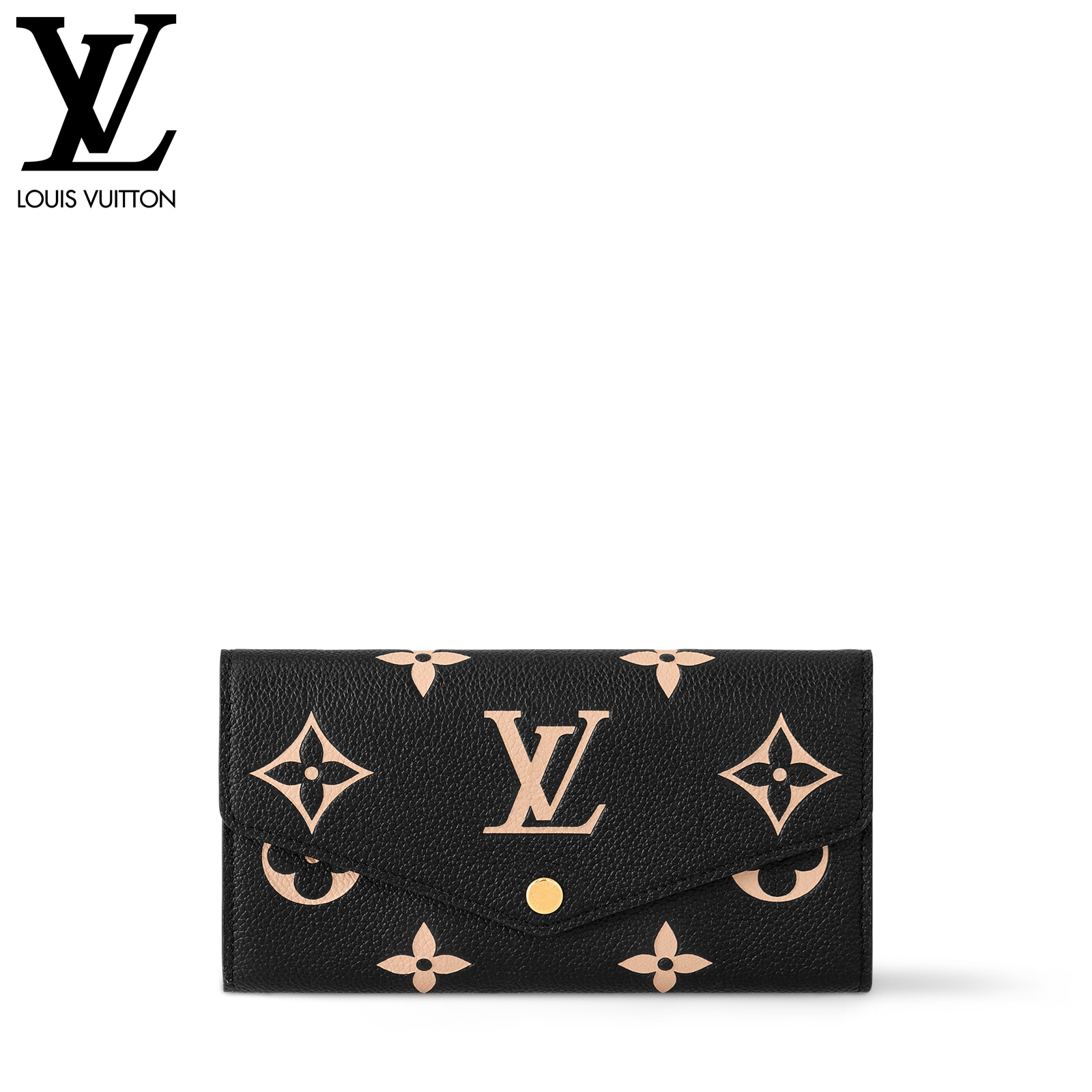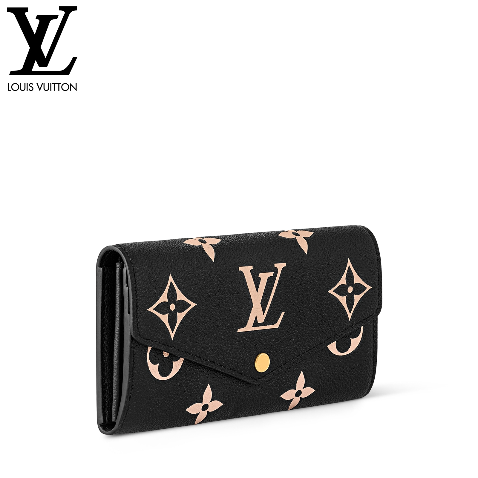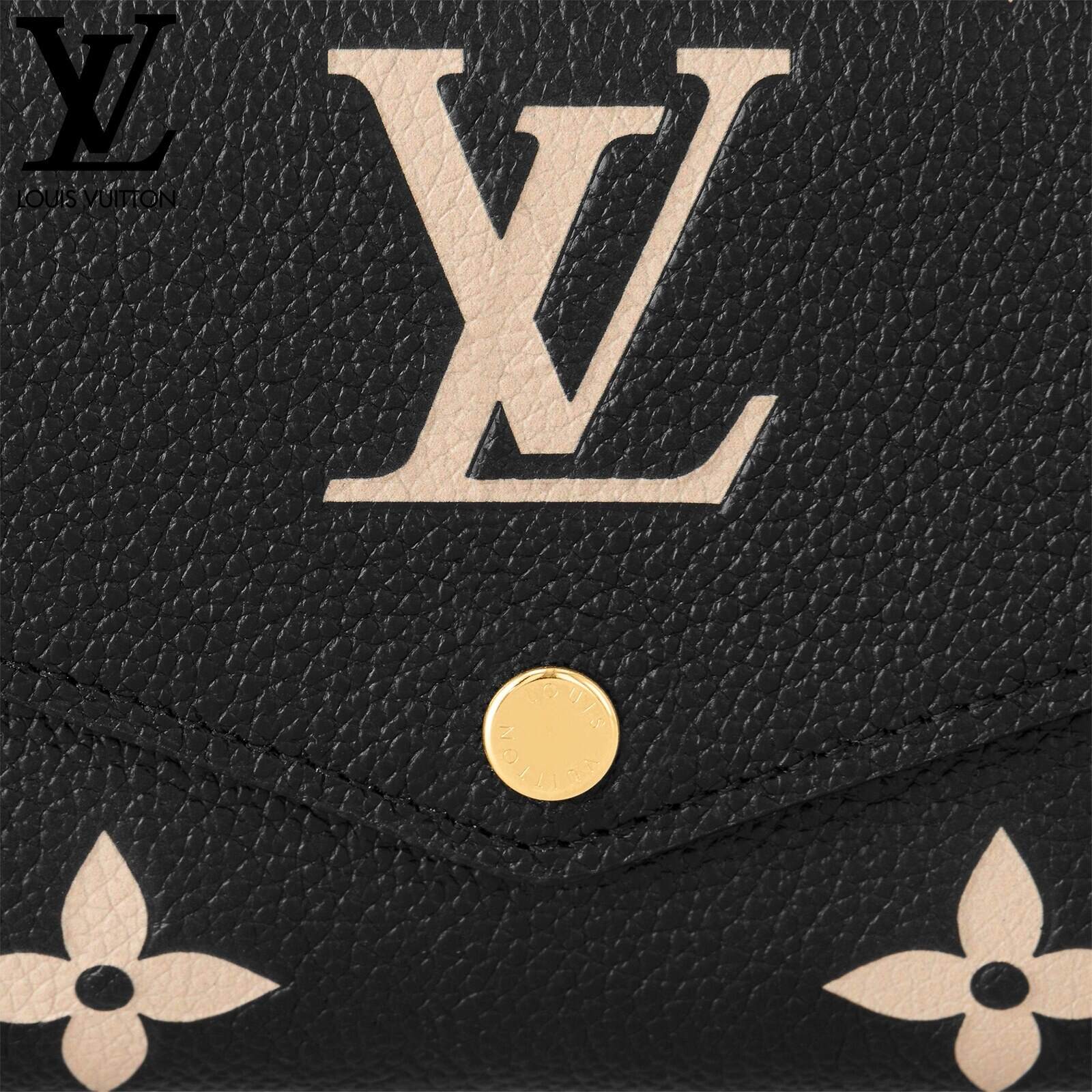 ルイ・ヴィトンの定番アイテムを、モノグラム・パターンのエンボス加工が美しいバイカラーのモノグラム・アンプラント レザーでエレガントに仕上げた「ポルトフォイユ・サラ」。ゴールドカラーのスナップボタンで開閉するエンヴェロップ型のフラップを開くと現れる、整理しやすい内装も魅力です。2つの大ぶりのコンパートメントに加え、16枚のカードを収納できるカードスロットや複数のポケットを備えています。