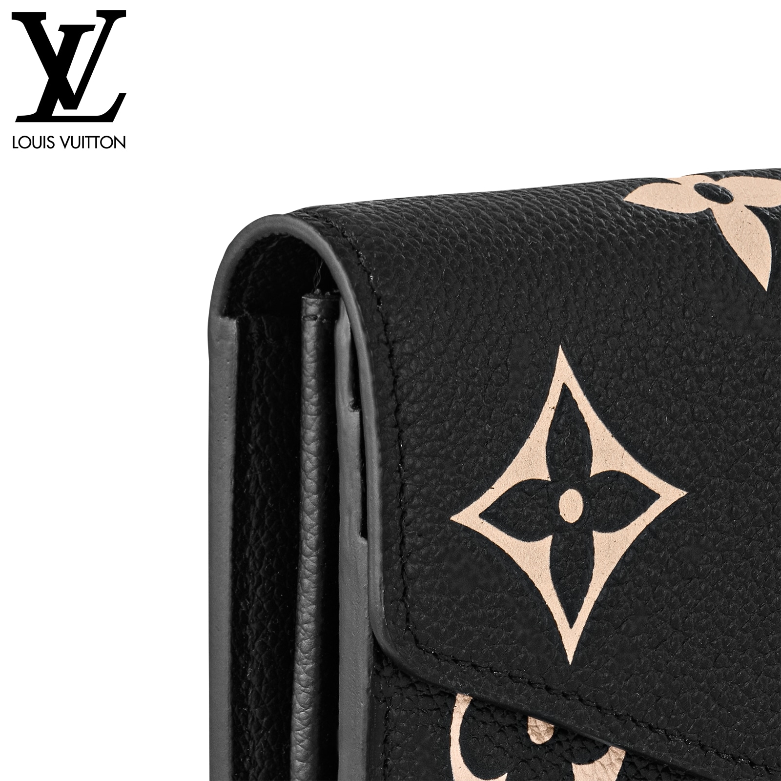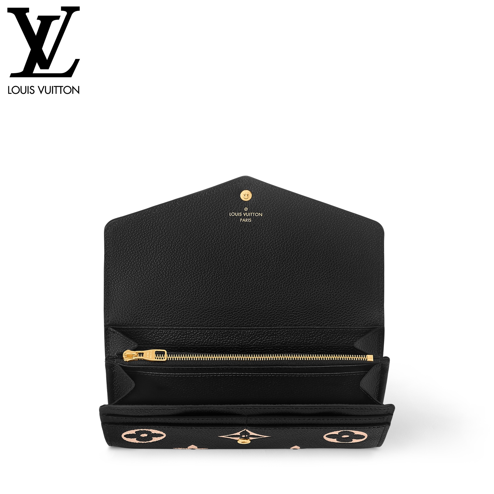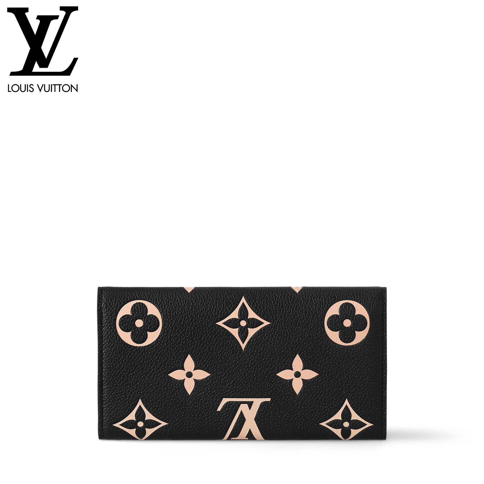 ルイ・ヴィトンの定番アイテムを、モノグラム・パターンのエンボス加工が美しいバイカラーのモノグラム・アンプラント レザーでエレガントに仕上げた「ポルトフォイユ・サラ」。ゴールドカラーのスナップボタンで開閉するエンヴェロップ型のフラップを開くと現れる、整理しやすい内装も魅力です。2つの大ぶりのコンパートメントに加え、16枚のカードを収納できるカードスロットや複数のポケットを備えています。