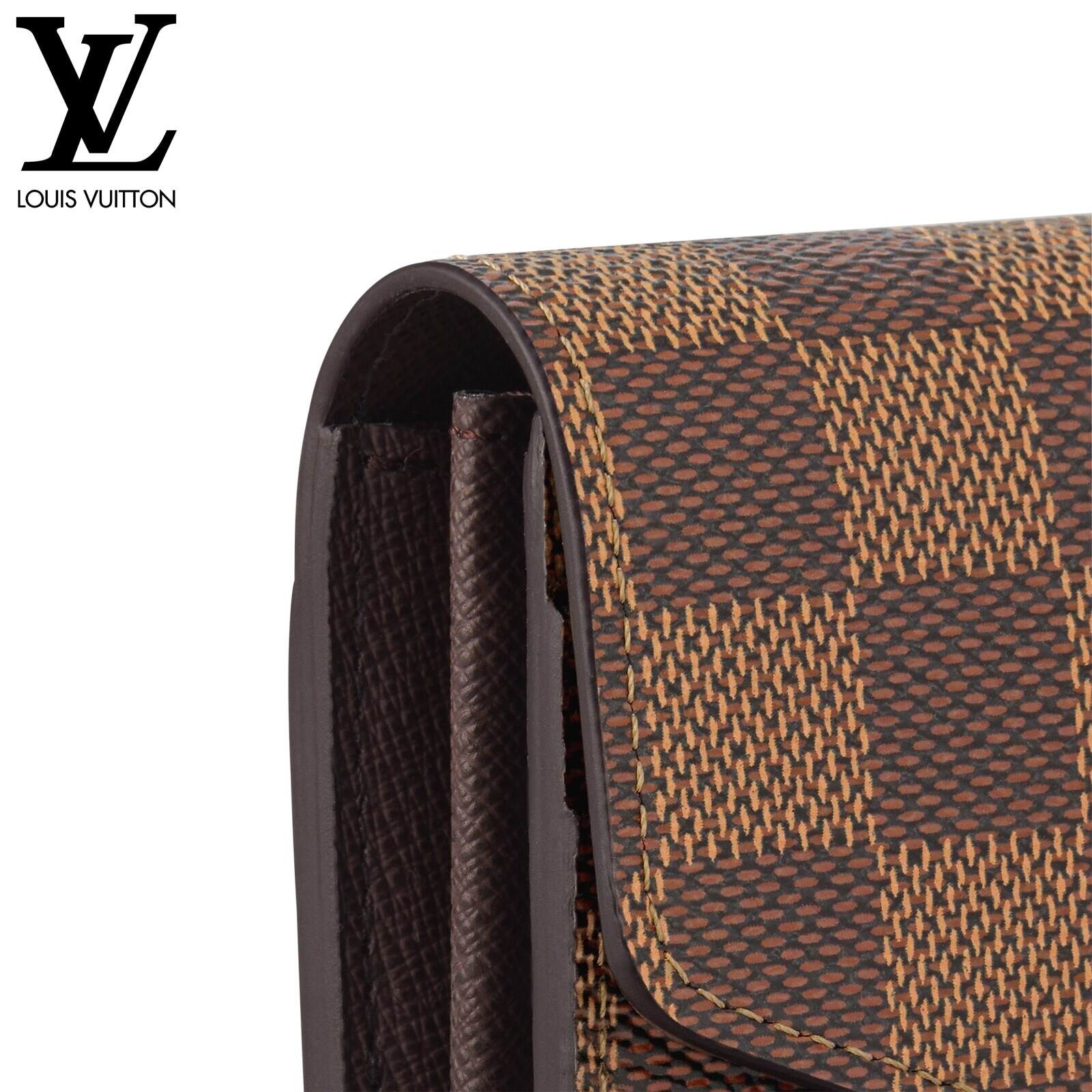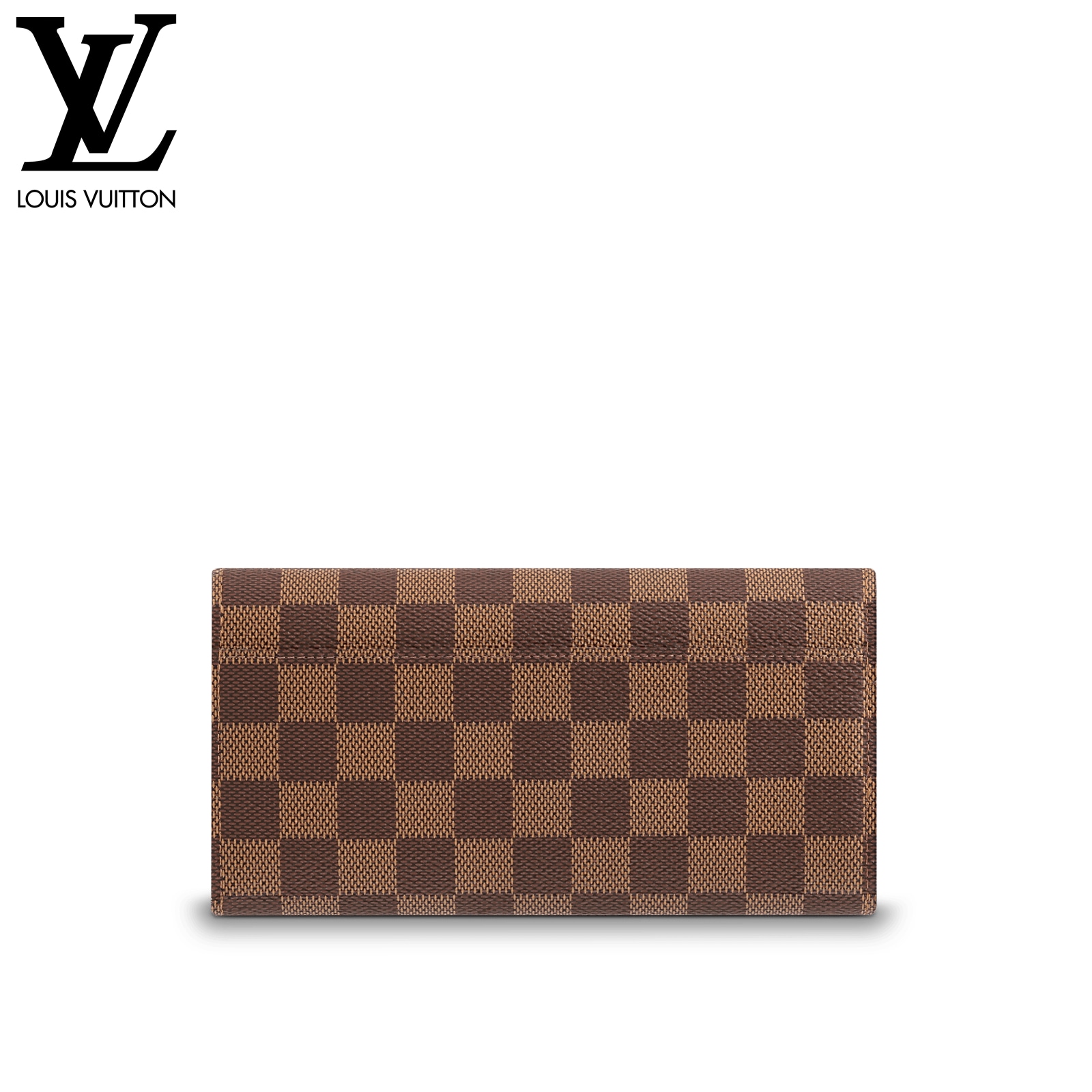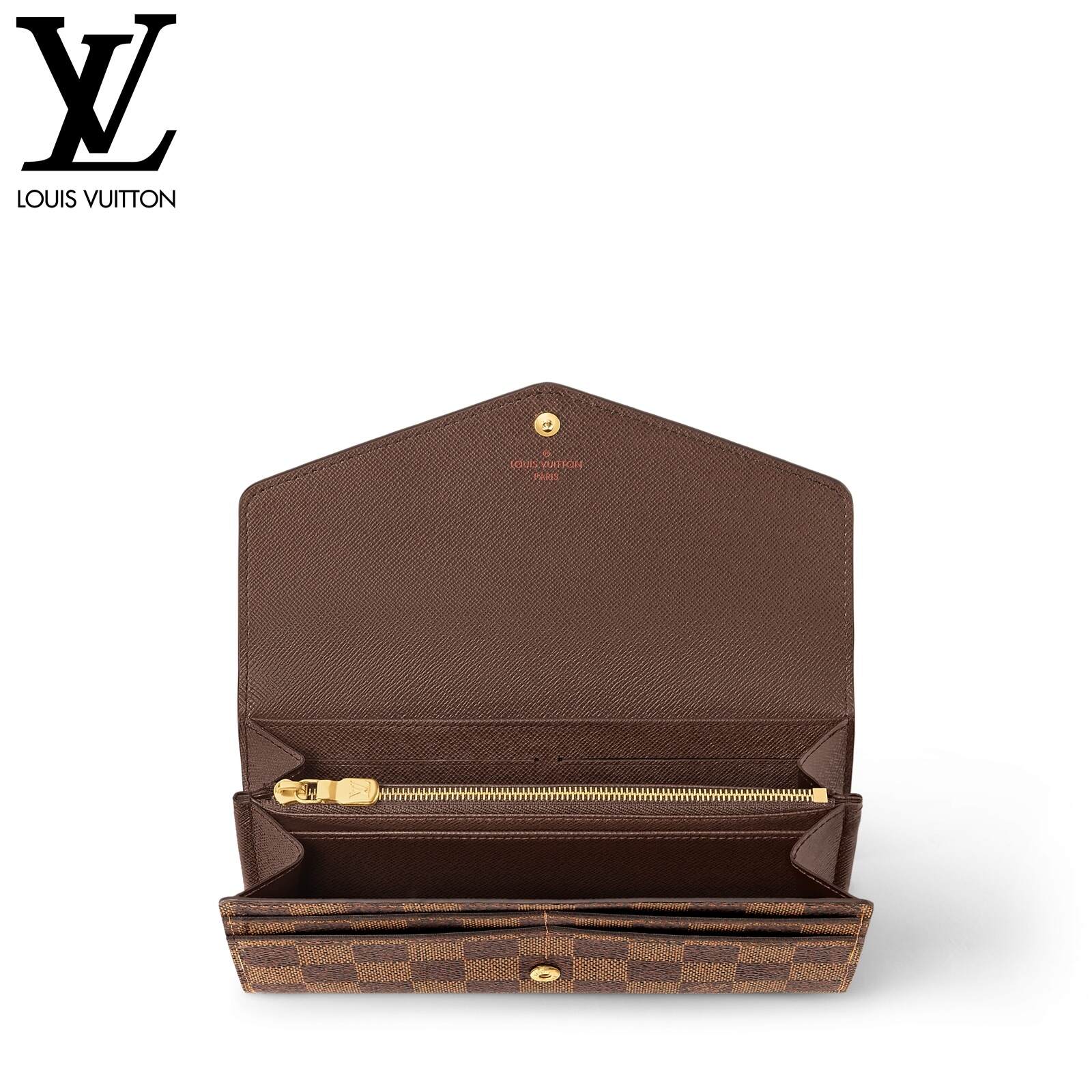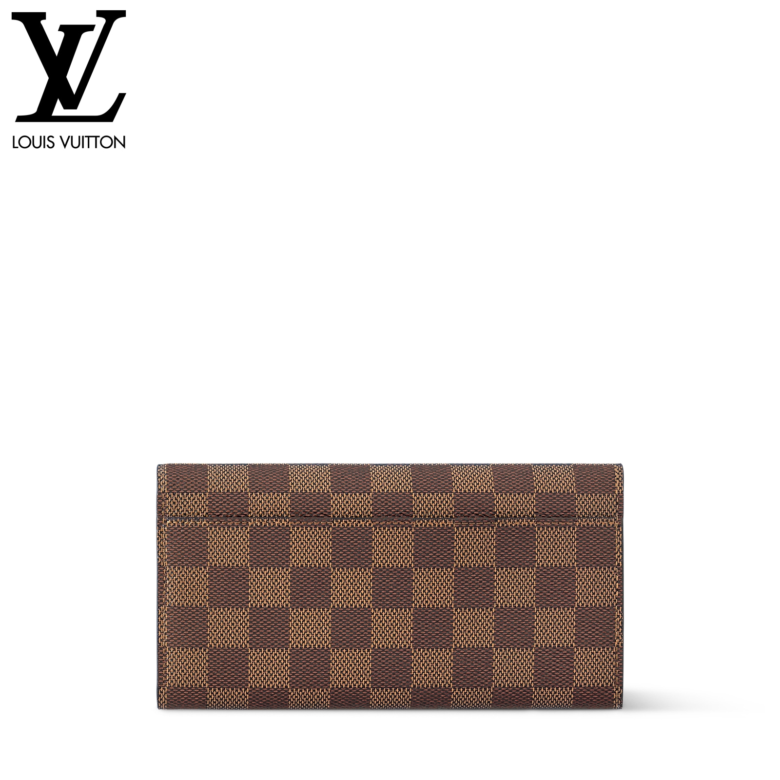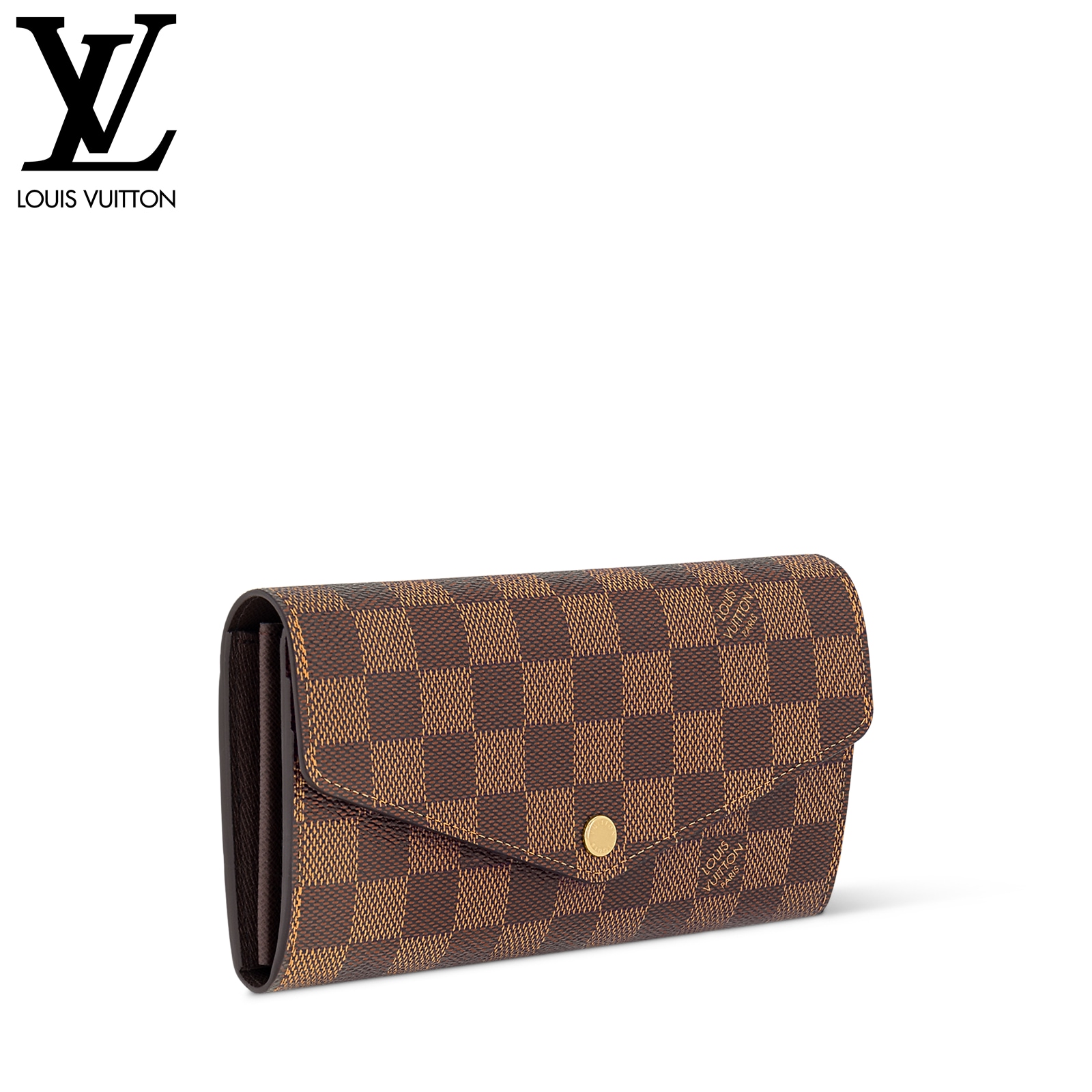 ルイ・ヴィトンの伝統的なダミエ・キャンバスにグレインレザーのライニングを合わせたポルトフォイユ・サラ」。2つの充分な容量のコンパートメント、ファスナー付きコインポケット、複数のカードスロットを備えた機能性と、フェミニンな印象を併せ持つ定番アイテムです。エンヴェロップ型のフラップには、刻印を施したゴールドカラーのスナップをあしらいました。