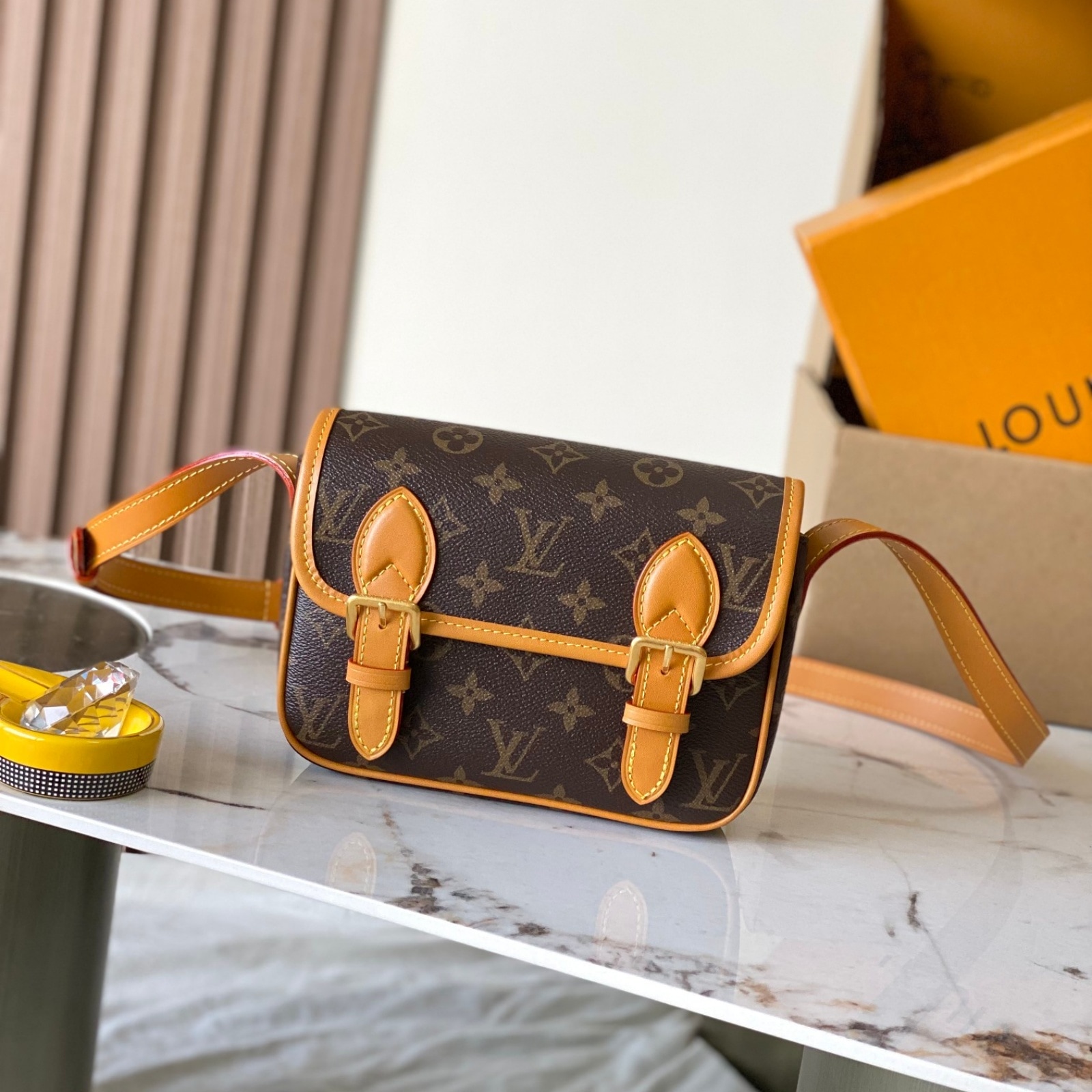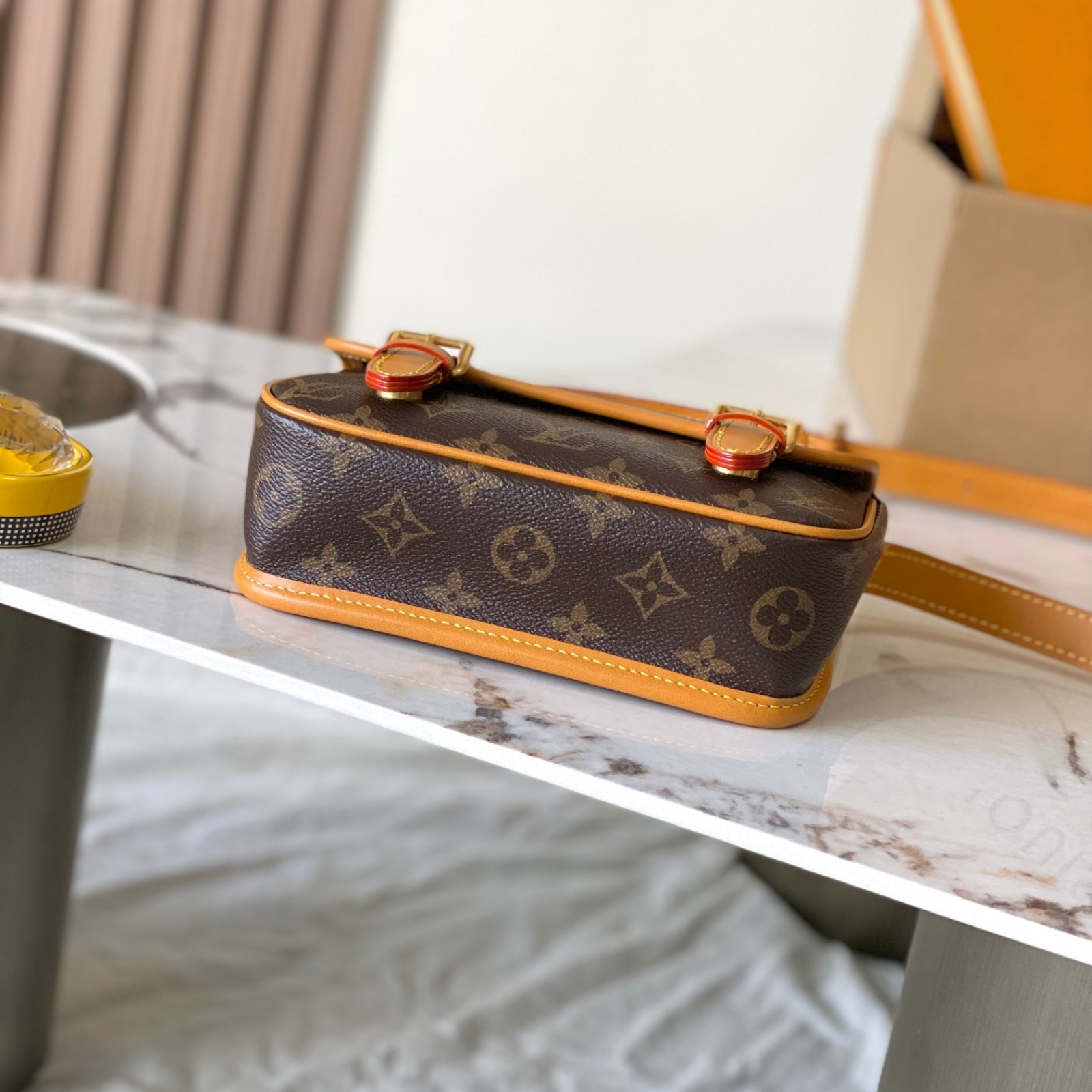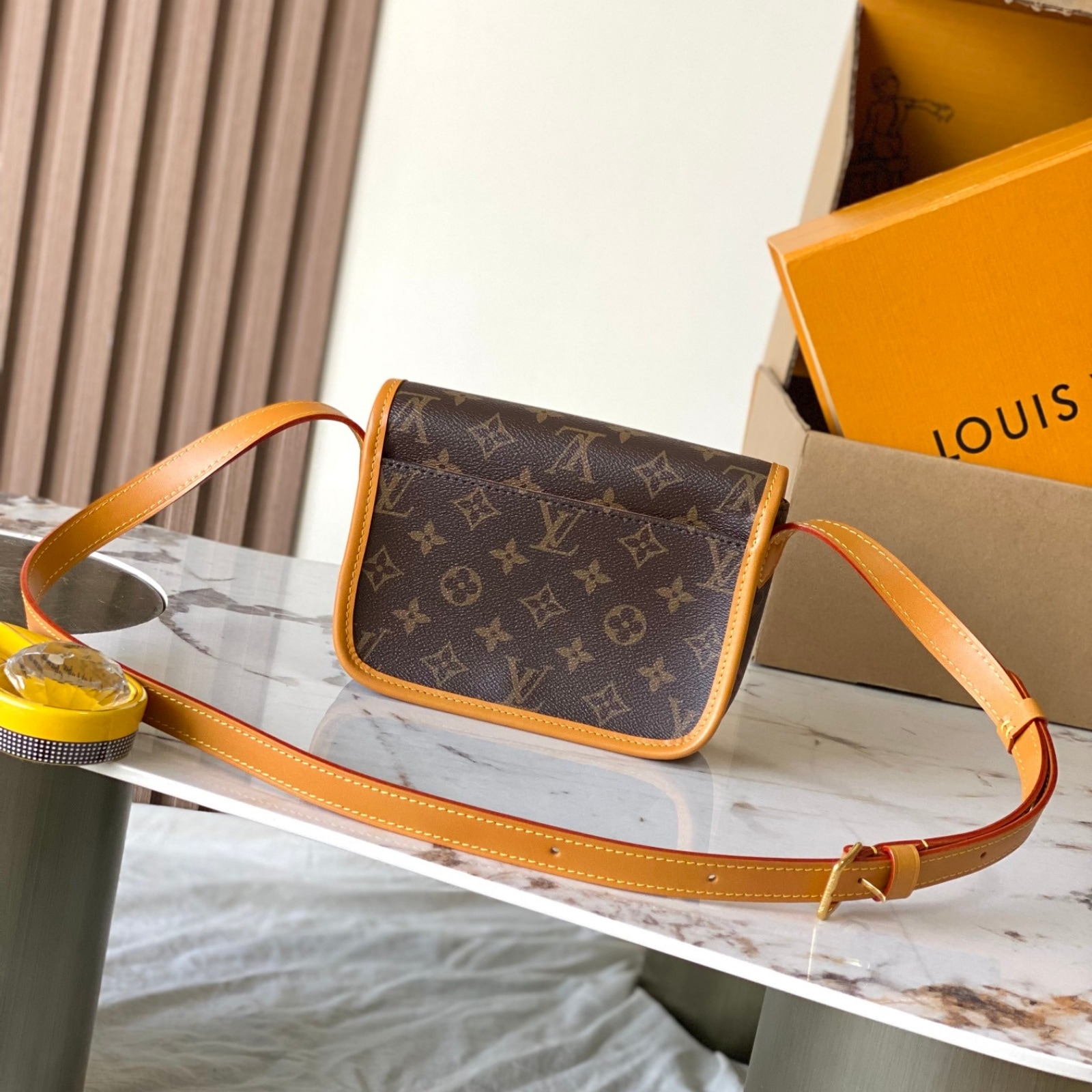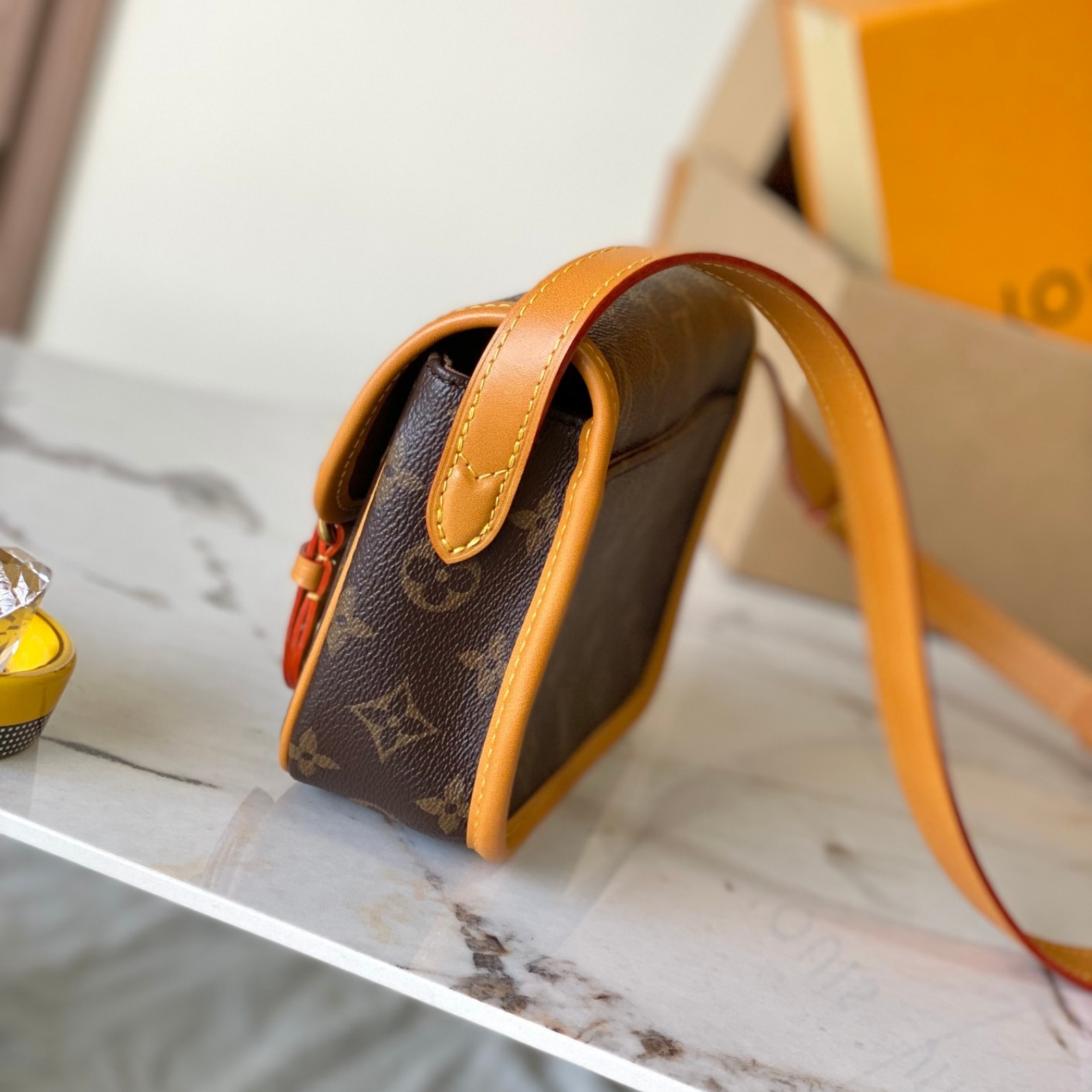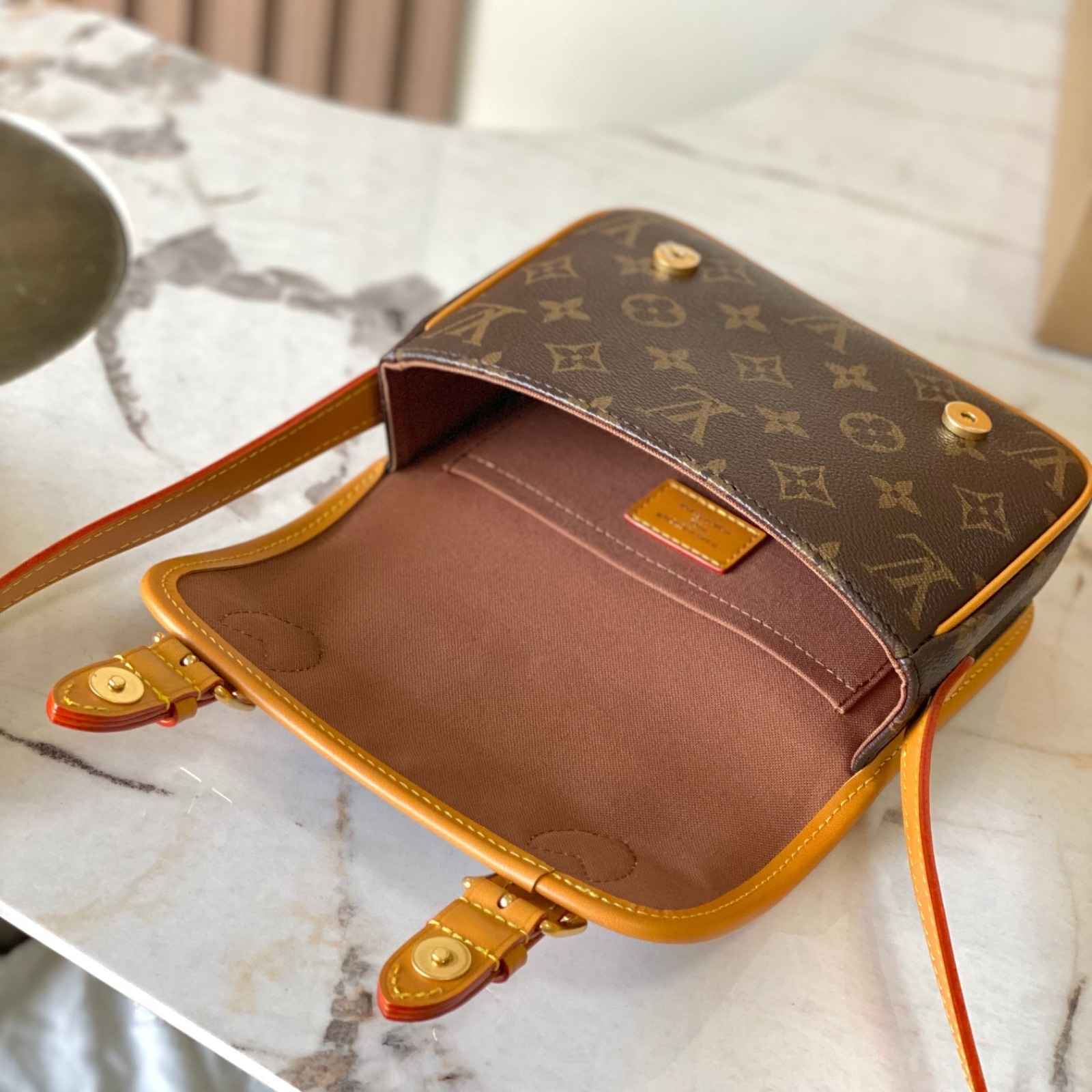 19.5 x 15 x 6 cm(幅 x 高さ x マチ)素材:モノグラム・キャンバストリミング:カウハイドレザー(皮革の種類:牛革)ライニング:テキスタイル金具(色:ゴールド)マグネットバックル開閉式ストラップ:取り外し不可, 調整可能ストラップの頂点からバッグ上部までの長さ(最短):38.5 cmストラップの頂点からバッグ上部までの長さ(最長):51.0 cm