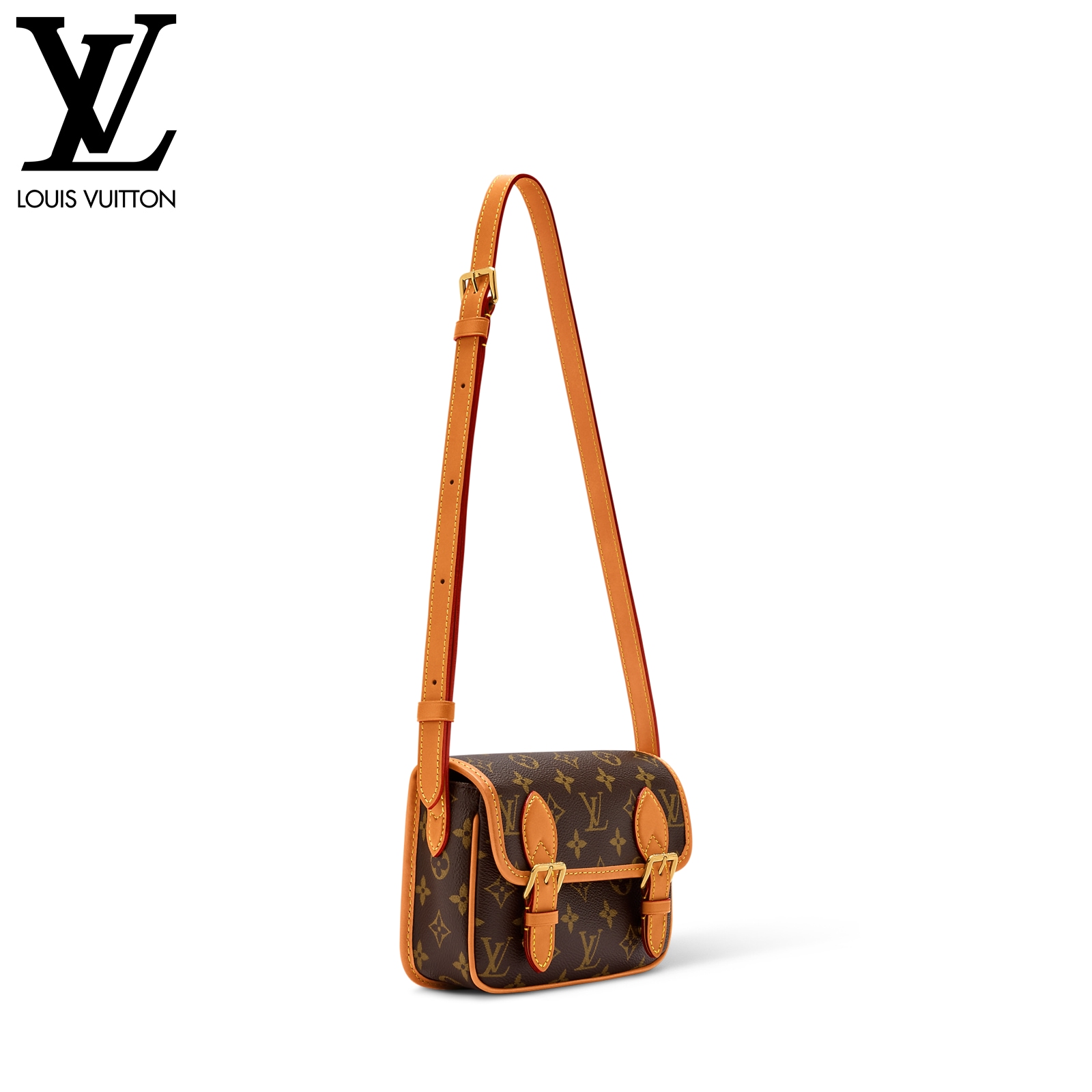 「モノグラム・アーカイヴ」コレクションの一部として登場した「サッチェル・ウェアラブル ウォレット」。しなやかなモノグラム・キャンバスに、アンティーク調のヌメ革のトリミングとゴールドカラーの金具を組み合わせました。ミニメッセンジャーバッグを想わせるサイズで、スマートフォンや財布などの普段の必需品を収納できるデザイン。調節可能なストラップ付きで、肩掛けや斜め掛けとしても快適に着用できます。