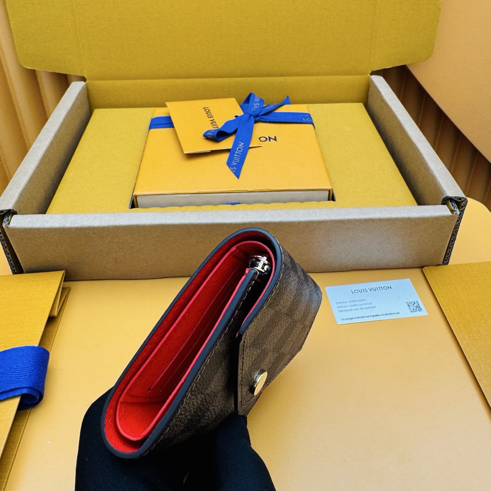 ※本製品は製造時期によりスナップボタンの素材・カラーが異なります。また、製品によりスナップボタンの凸凹が画像とは反対の場合がございます。ご了承ください。12 x 9.5 x 2.5 cm(幅 x 高さ x マチ)素材:ダミエ・エベヌ キャンバストリミング:グレインレザー(皮革の種類:牛革)ライニング:グレインレザー金具(色:ゴールド)スナップボタン開閉式ファスナー式コインケース札用コンパートメントフラットポケットx2カード用ポケットx6