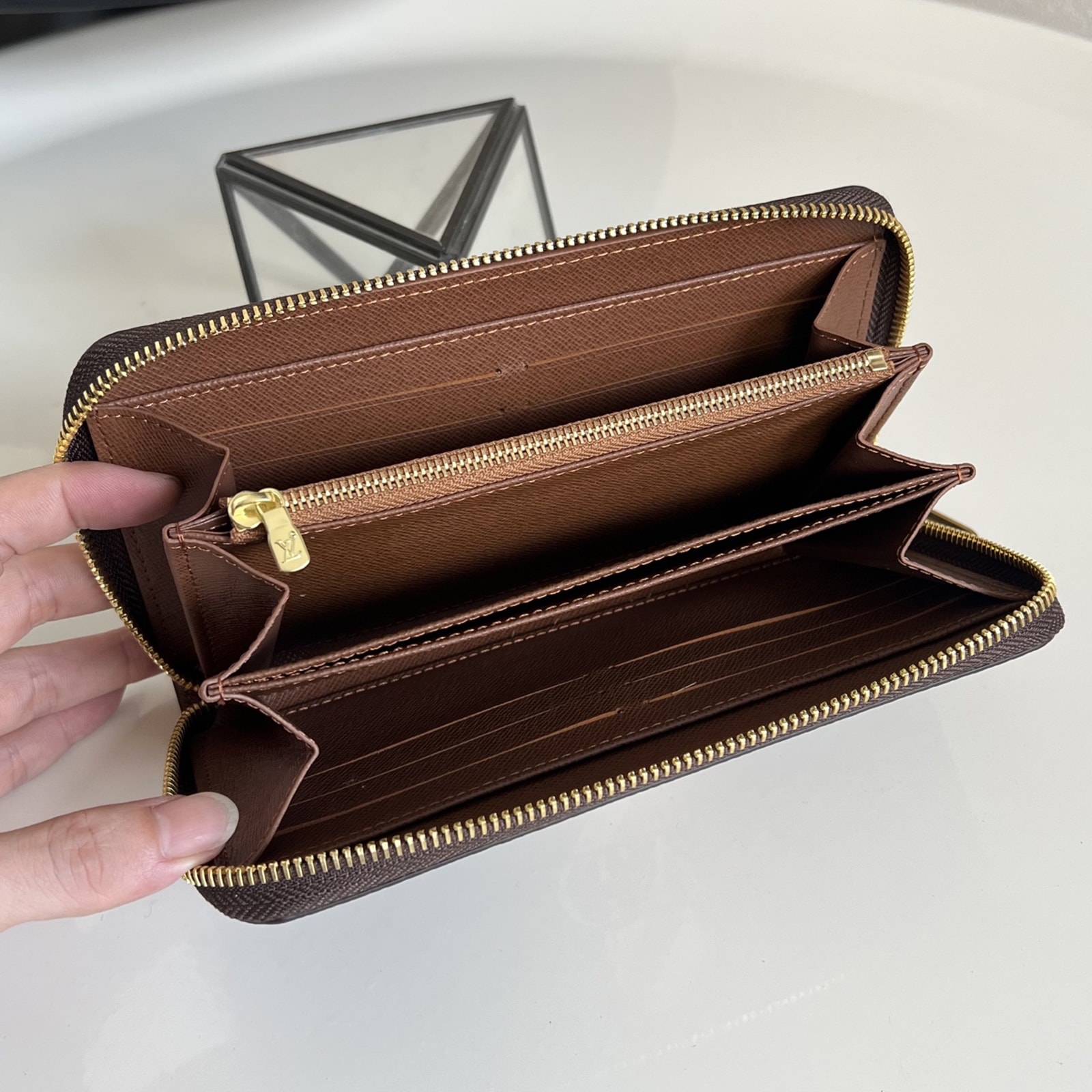 ※「ジッピー・ウォレット モン・モノグラム」のライニングカラーはブラウンです。19.5 x 10.5 x 2.5 cm(幅 x 高さ x マチ)素材:モノグラム・キャンバスライニング:グレインカウハイドレザー(皮革の種類:牛革)金具(色:ゴールド)ファスナー開閉式大きなマチ付きコンパートメント × 3紙幣用オープンコンパートメントファスナー式コインポケット内フラットポケット × 2カードスロット × 12
